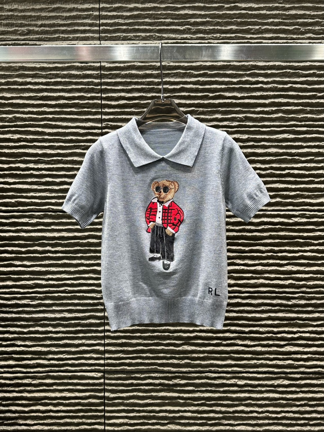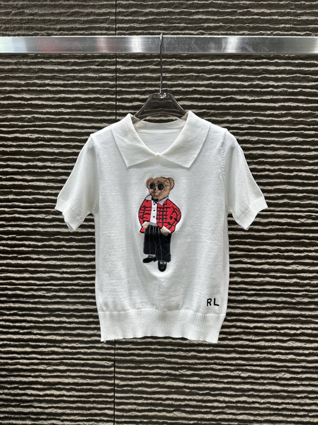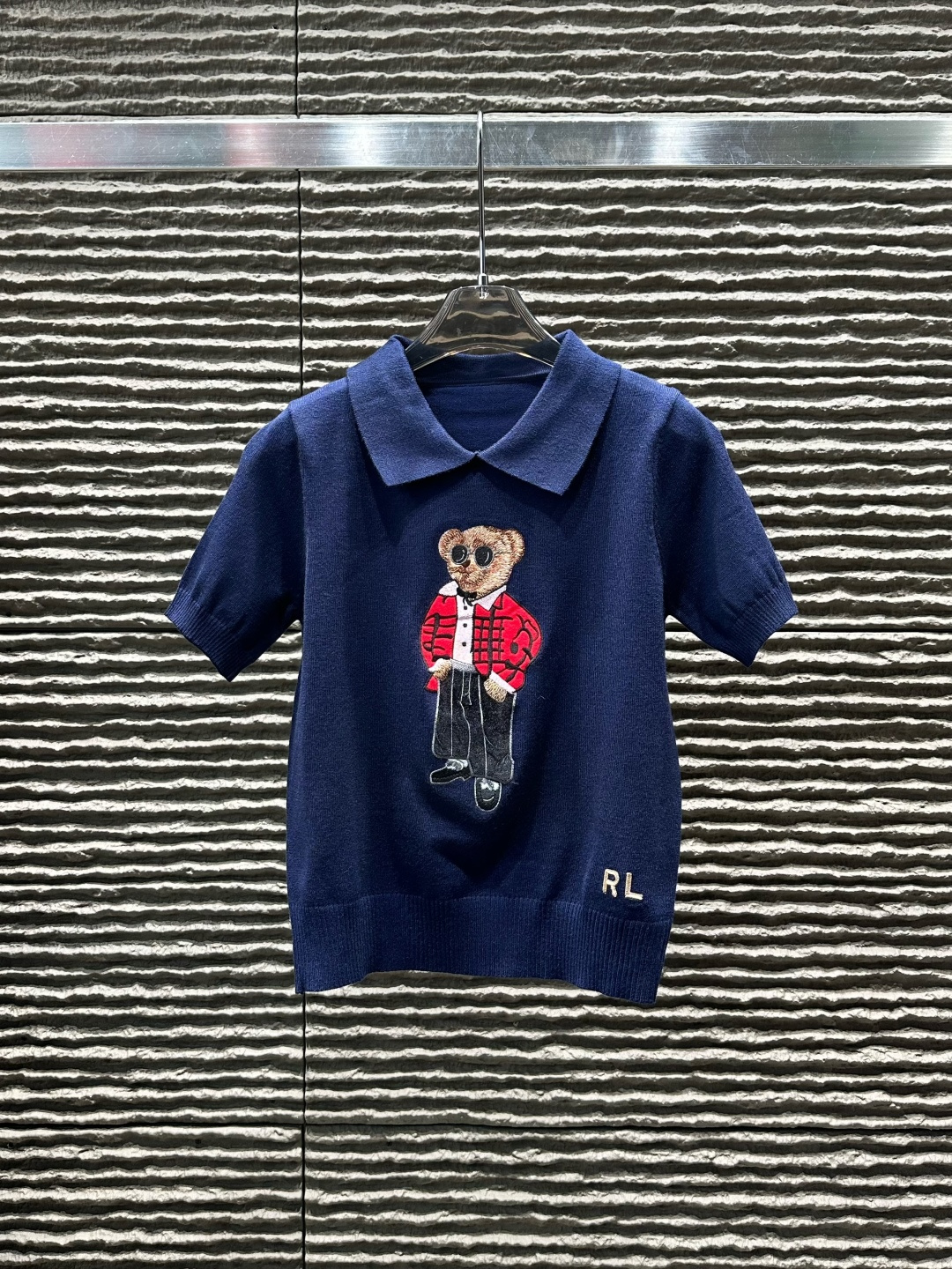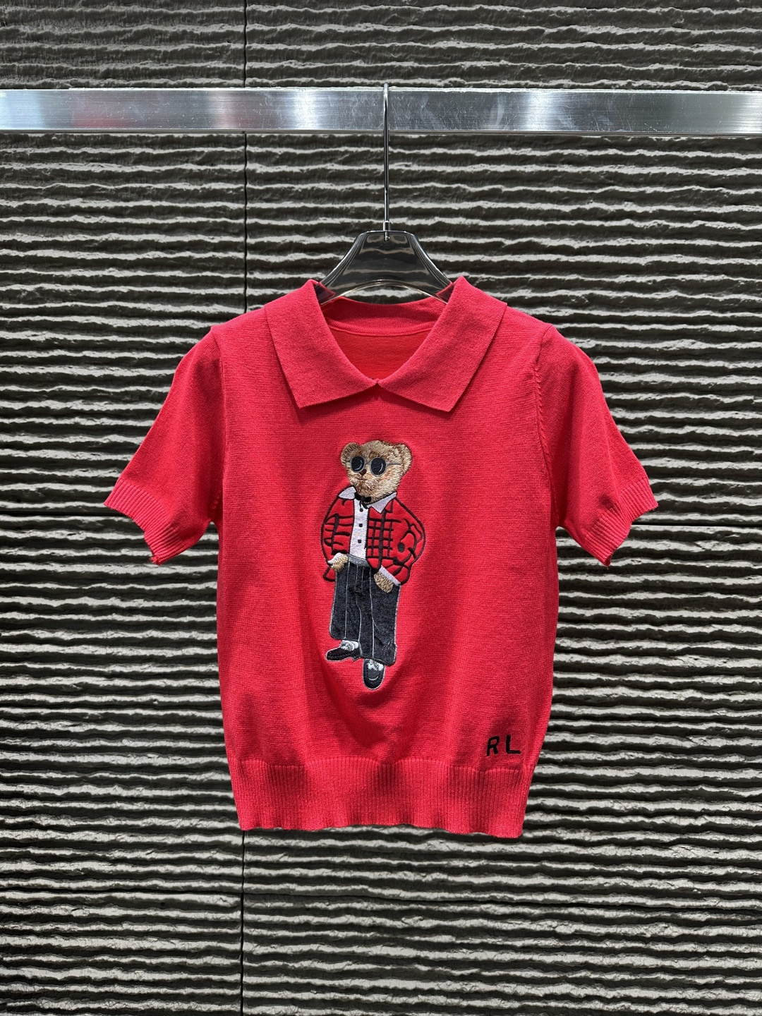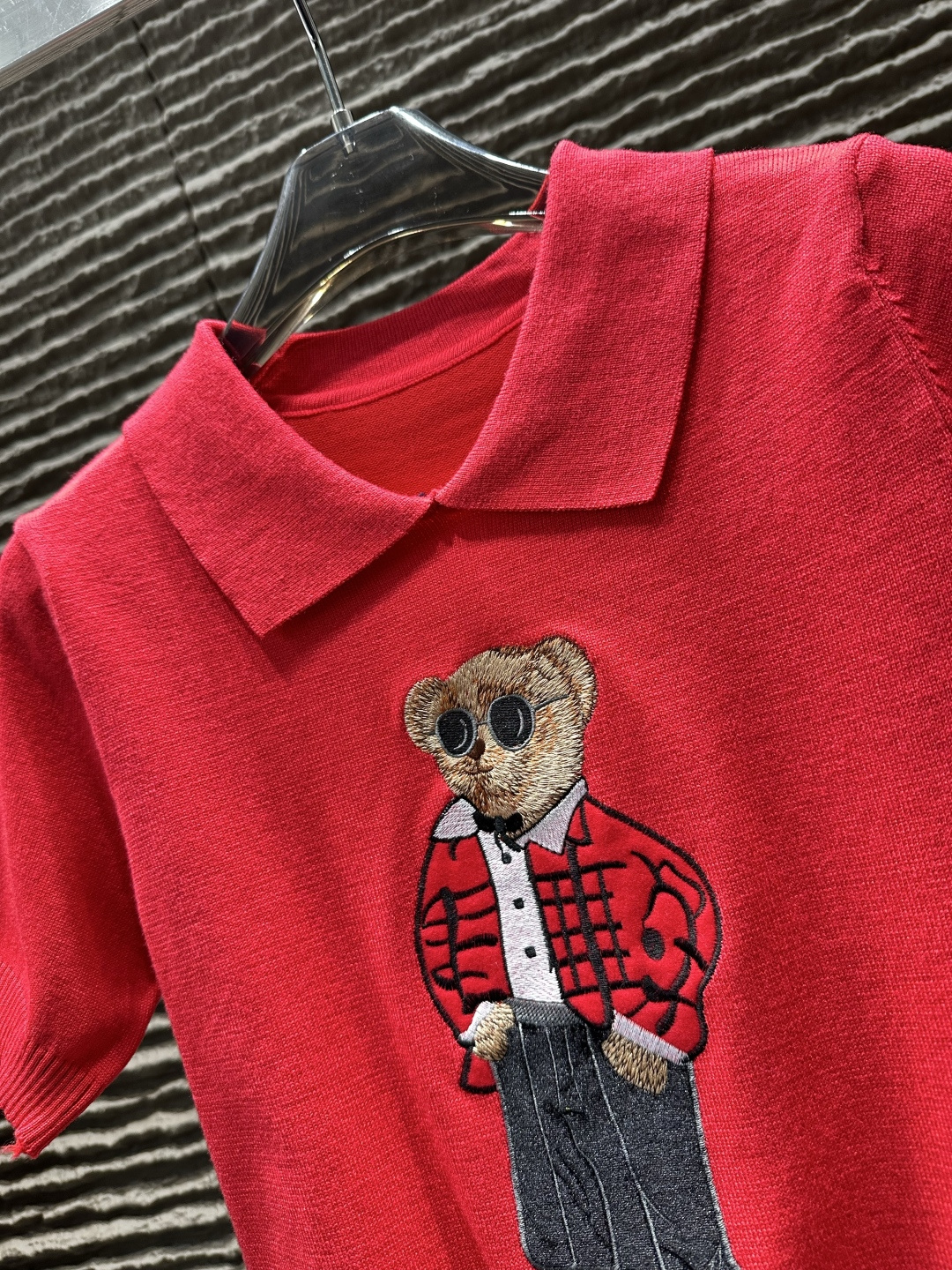 Details: New embroidered cartoon round-neck knitted short-sleeved top