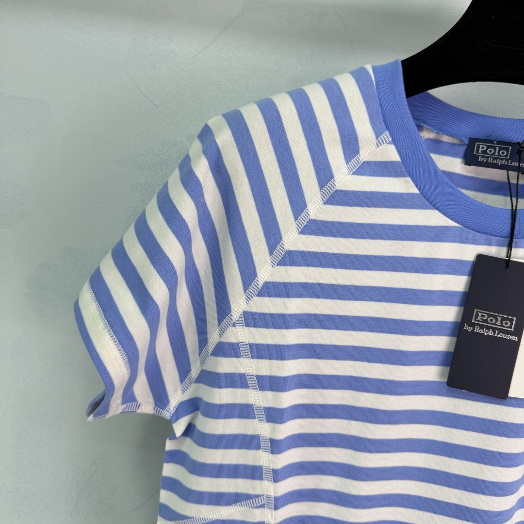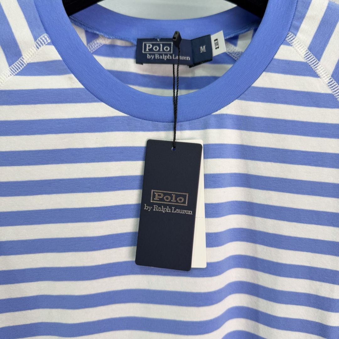 Polo Ralph Lauren Classic Blue and White Striped Cotton T-Shirt