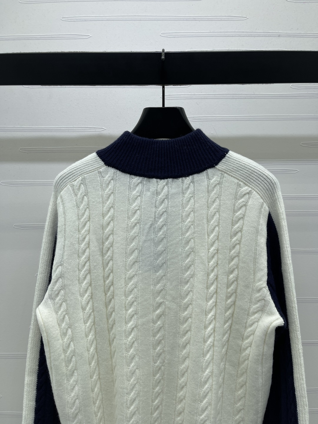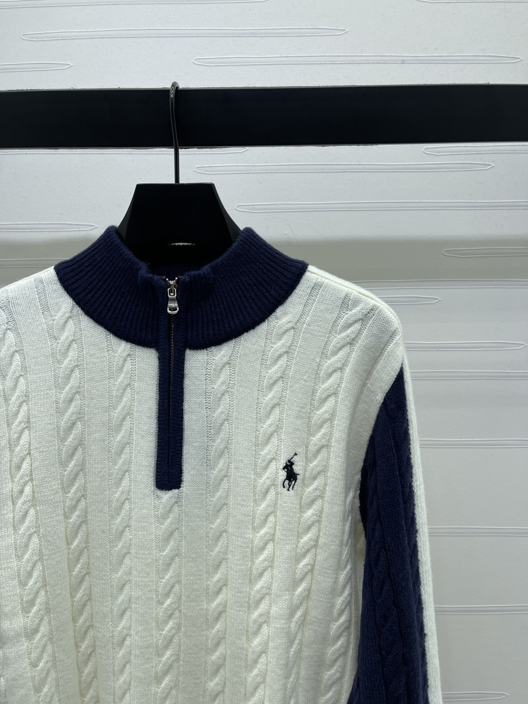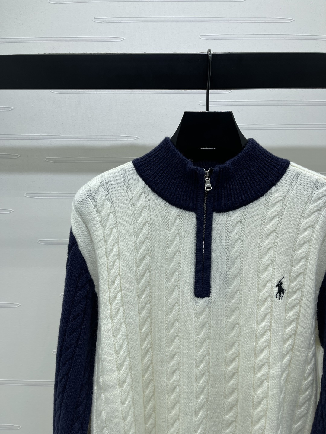 Details: Autumn/Winter Contrast Collar Half-Zip Pullover Sweater, Custom Wool Blend Yarn, Soft and Cozy, Embroidered Horse Logo, Classic Fit.