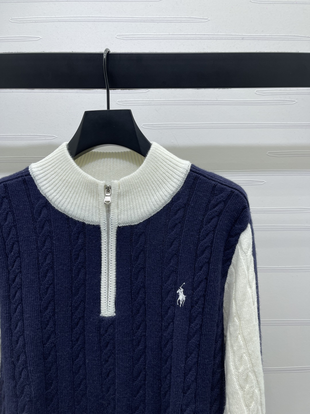 here:home > WOMENS > Polo Ralph Lauren > Pullover Ralph-L (W) > Polo Ralph Lauren Contrast Color Stand-up Collar Half-zip Sweater, Soft, Comfortable and Stylish Design