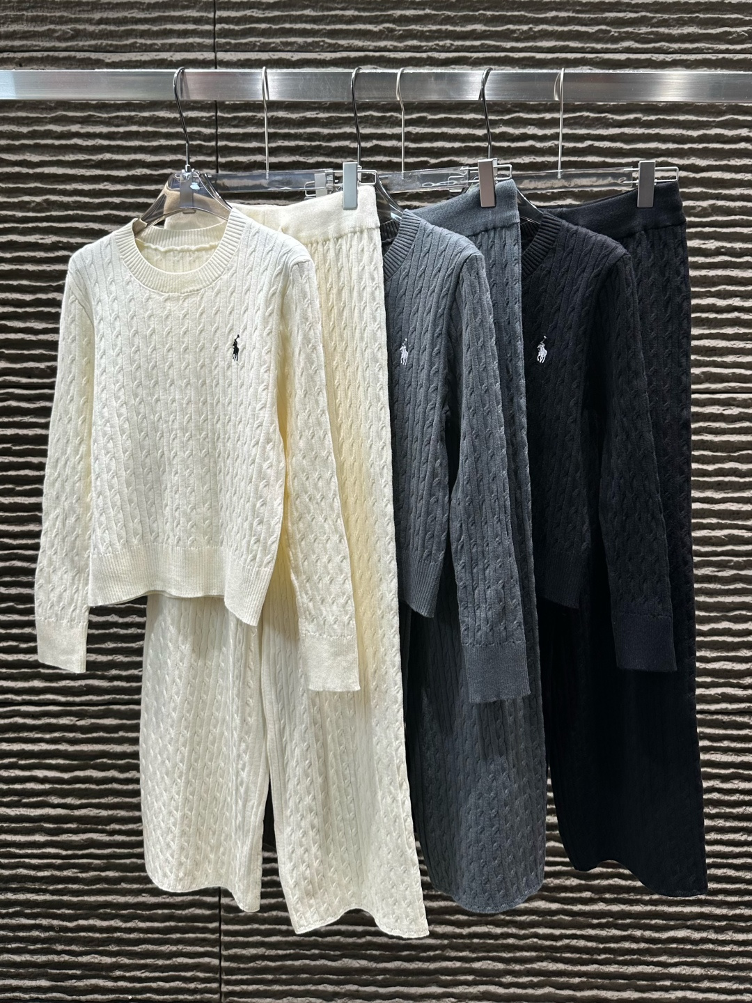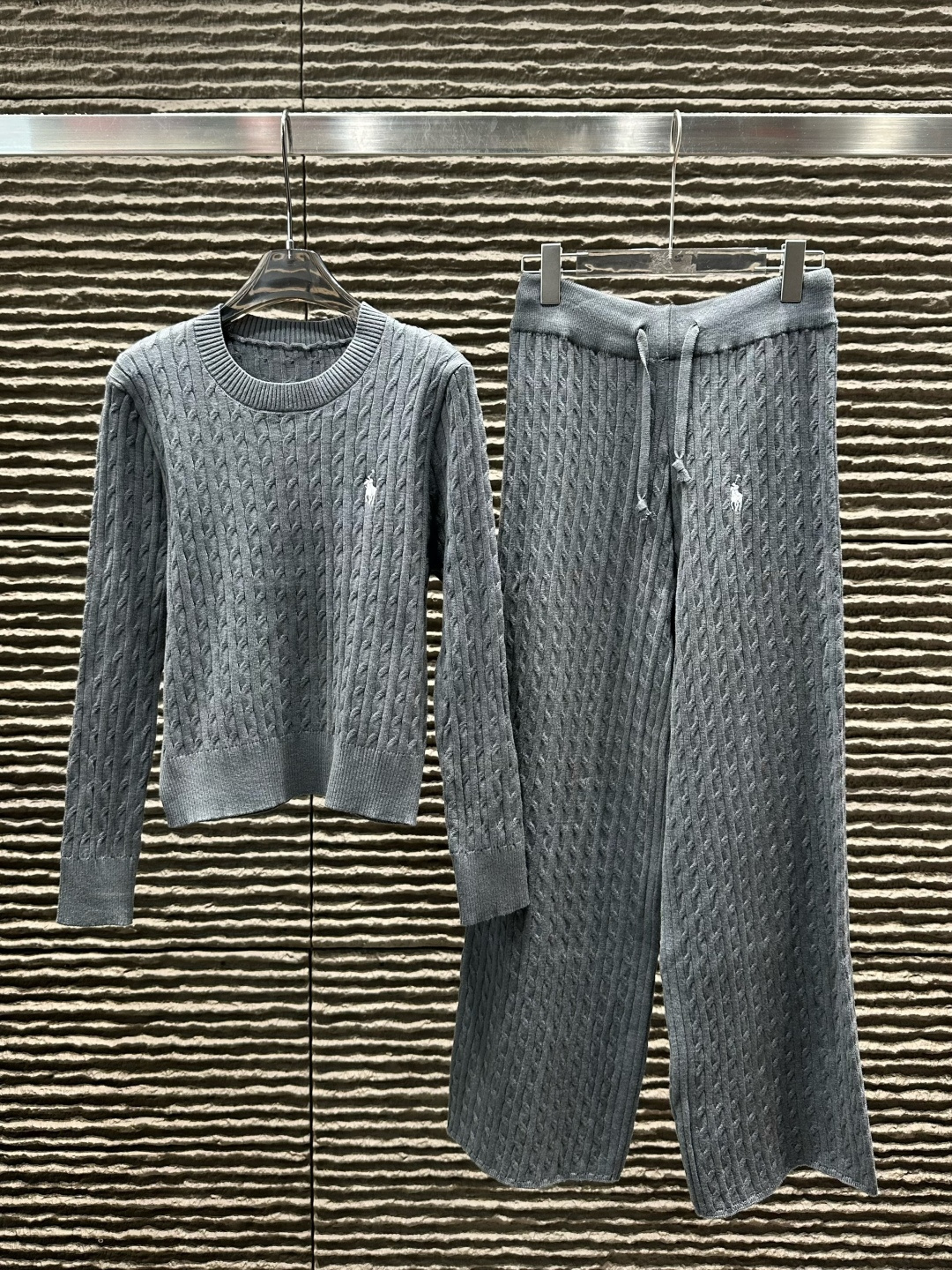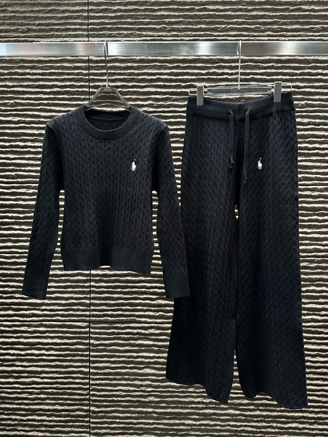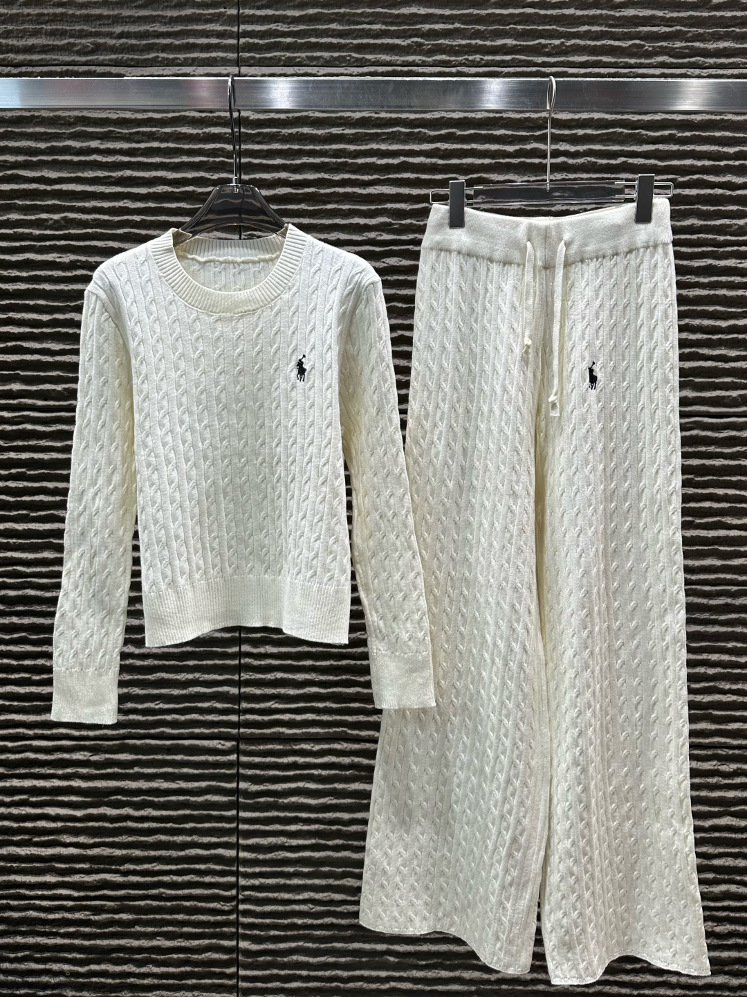 Details: Ralph Lauren-inspired round-neck knit two-piece set, cozy and chic for everyday wear.