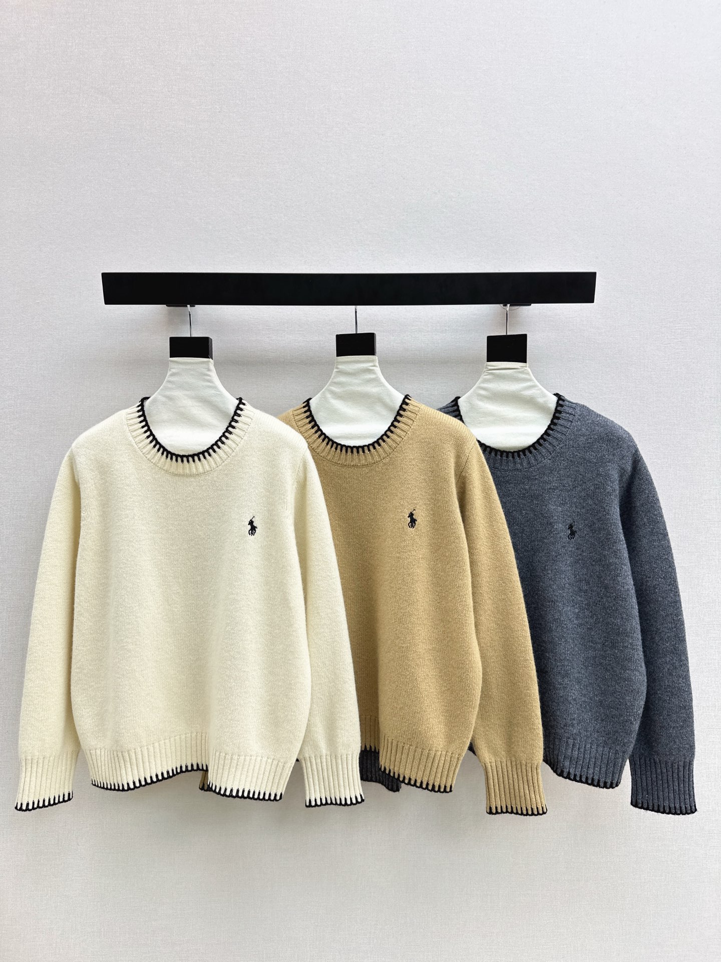 Details: Exclusive spring round-neck sweater with color-block design, made of imported wool, three colors available