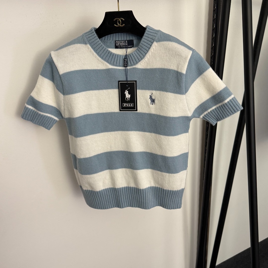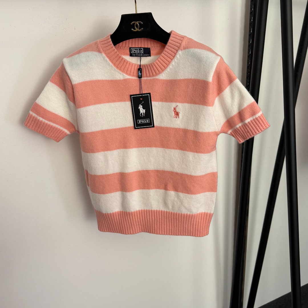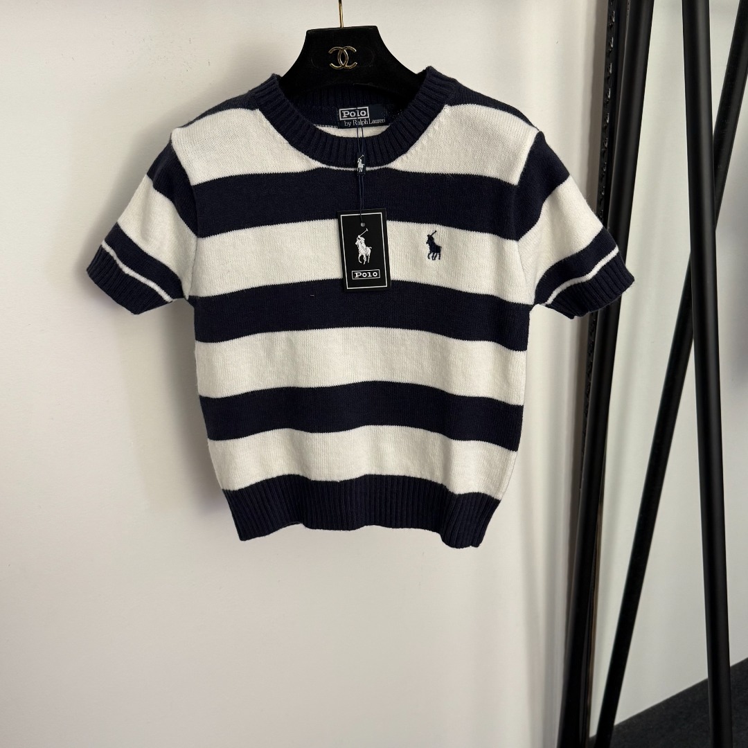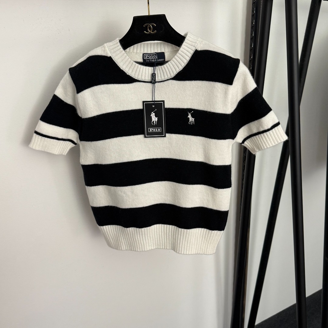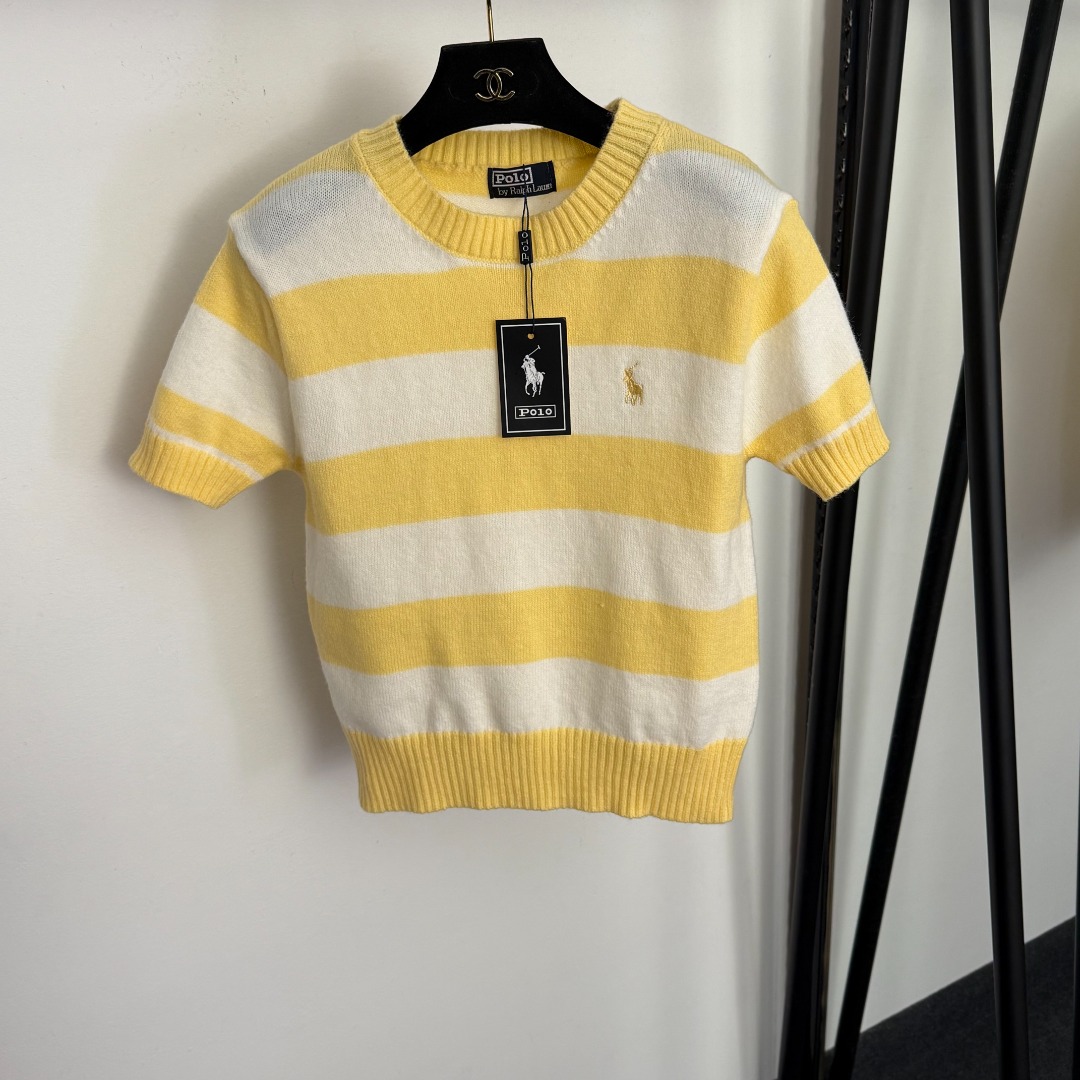 Details: New polo embroidered color-blocked striped short-sleeved knitted top in black, yellow, pink, red, blue and navy, one size.