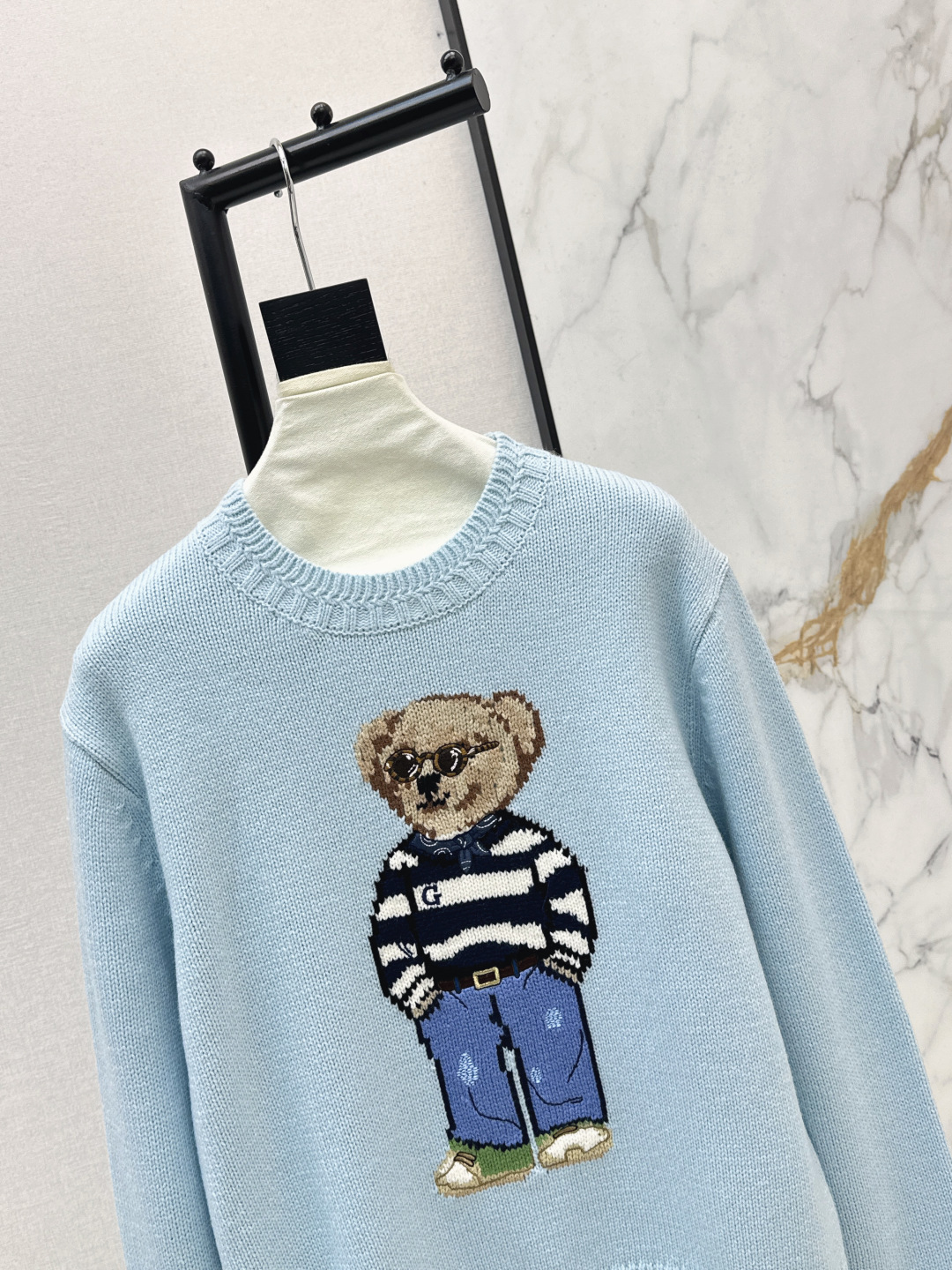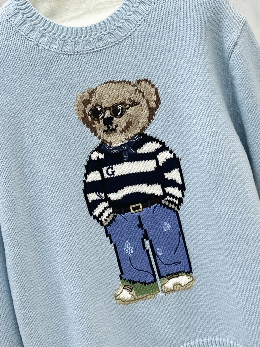Details: Early spring striped bear hand-hooked crewneck sweater, loose fit, pure cotton, available in three colors. Premium custom, fine workmanship, original quality