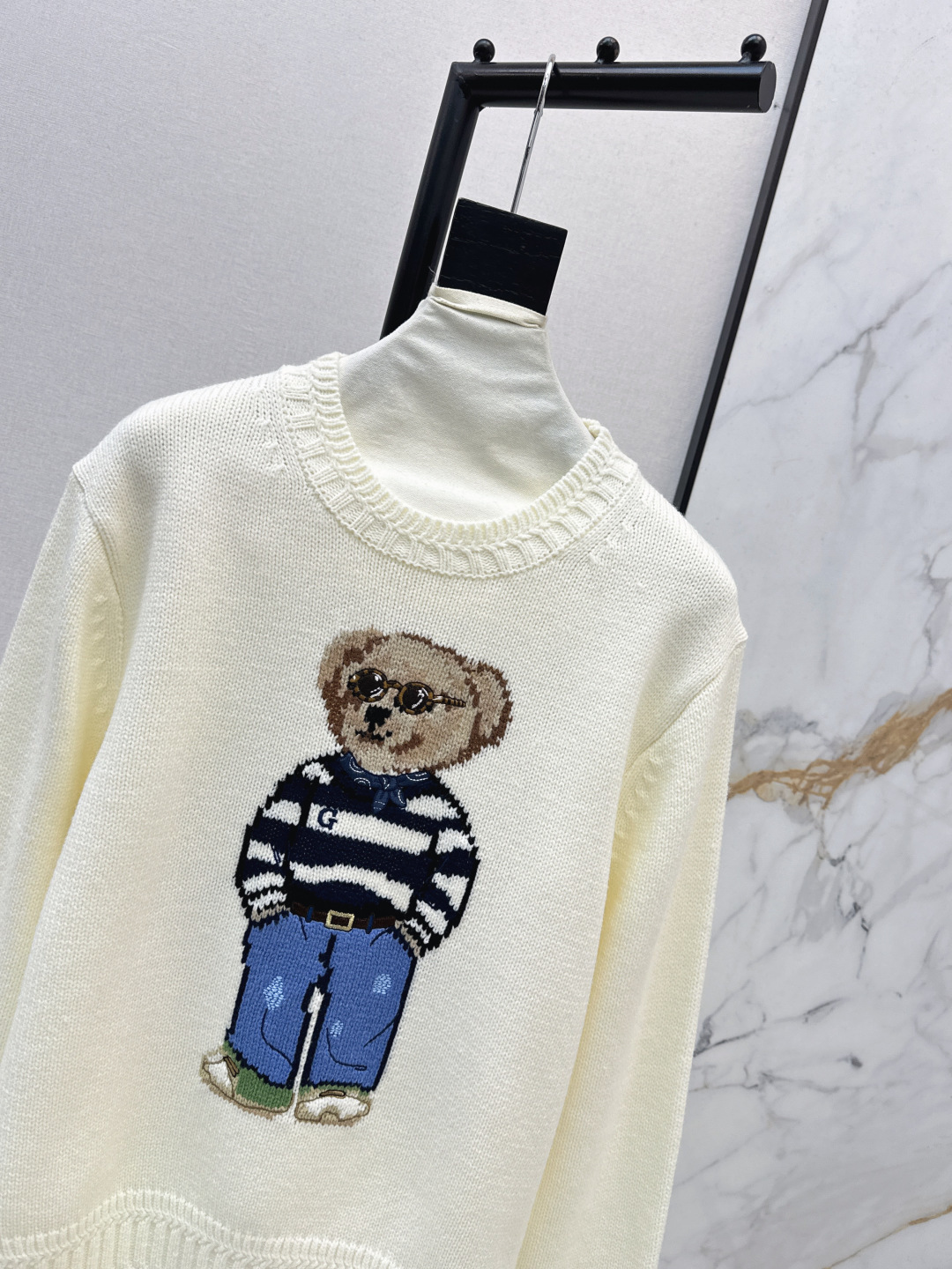 Details: Classic H-style short round-neck sweater with embroidered bear, made of imported cotton, available in 3 colors