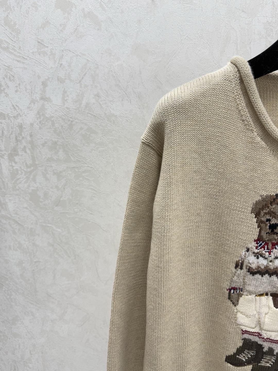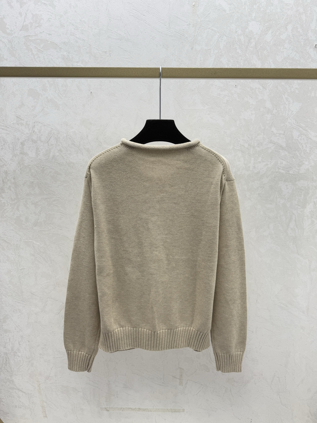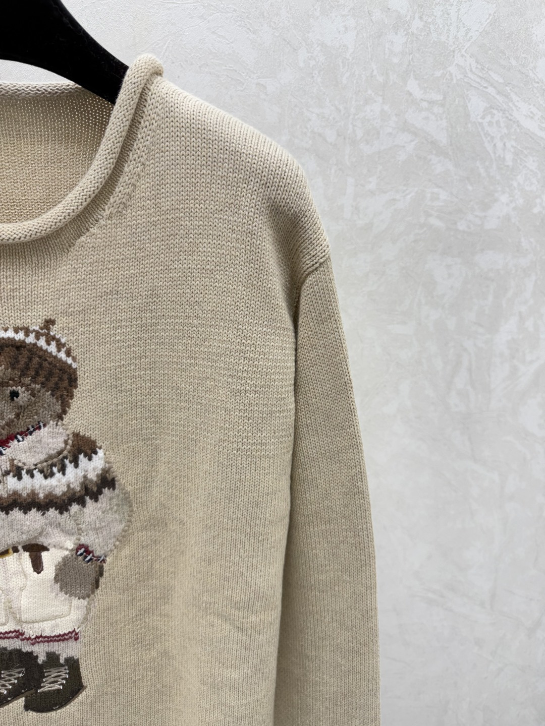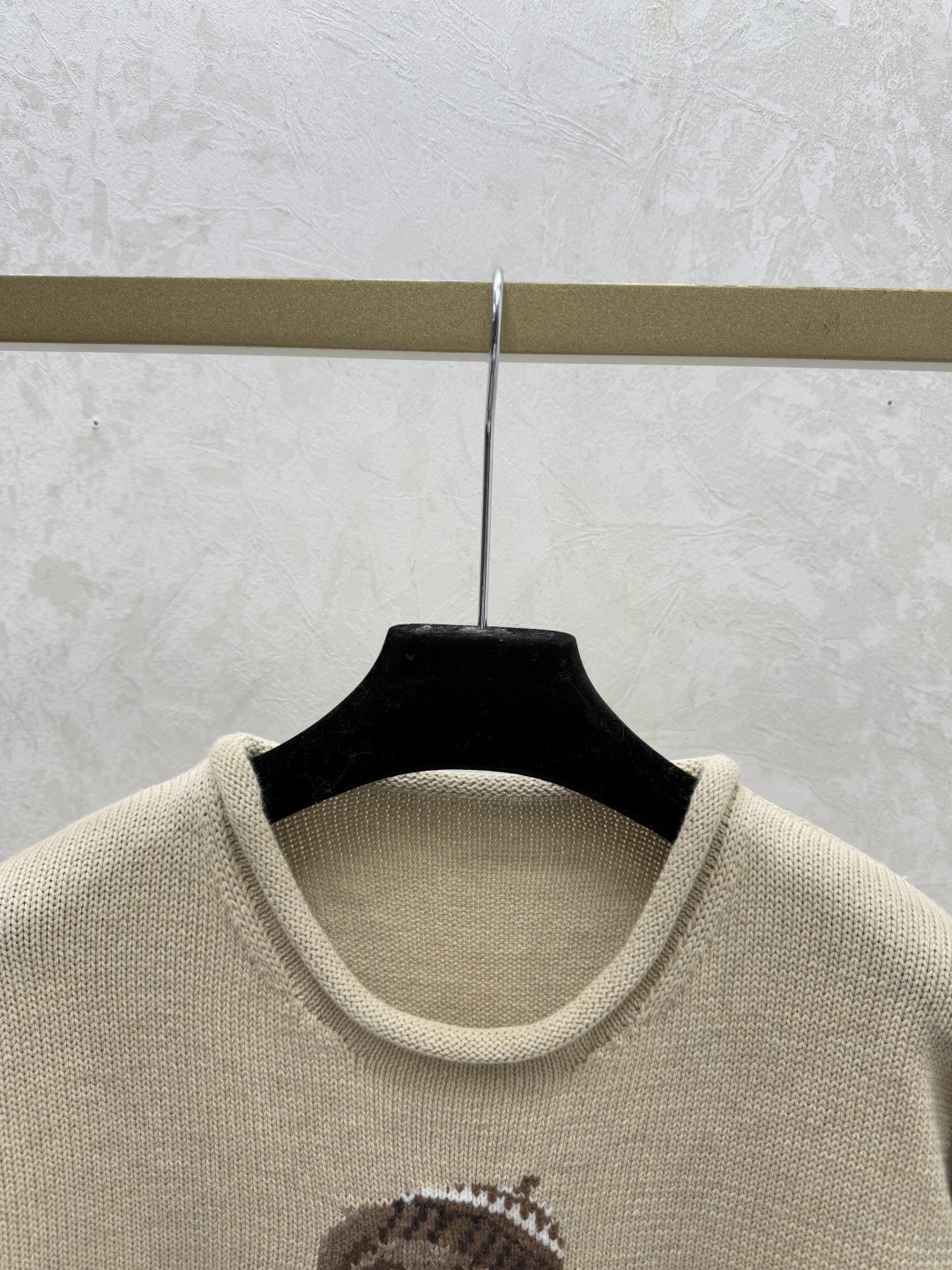 Details: Early autumn new style color-blocked bear jacquard round neck knitted long-sleeved tops in khaki, available in sizes 36, 38, 40.