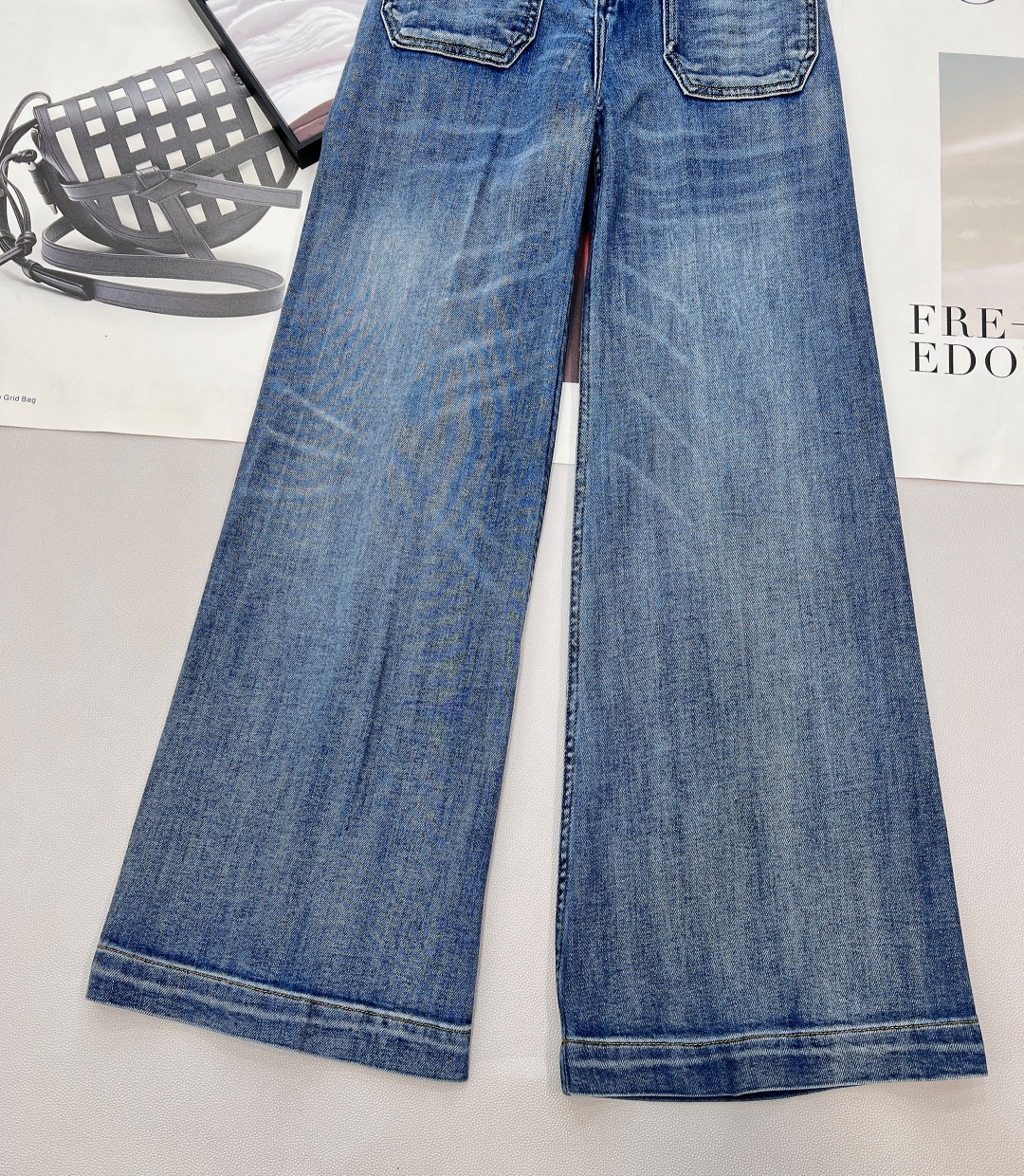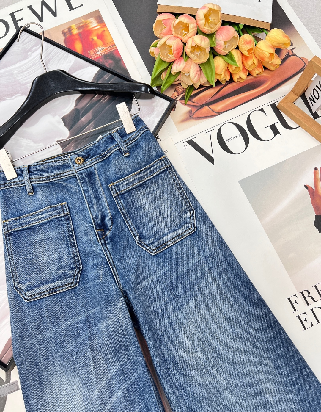 Details: New Spring Straight-leg Flare Jeans with Pockets, Soft Denim, Good Drape, Suitable for Three Seasons