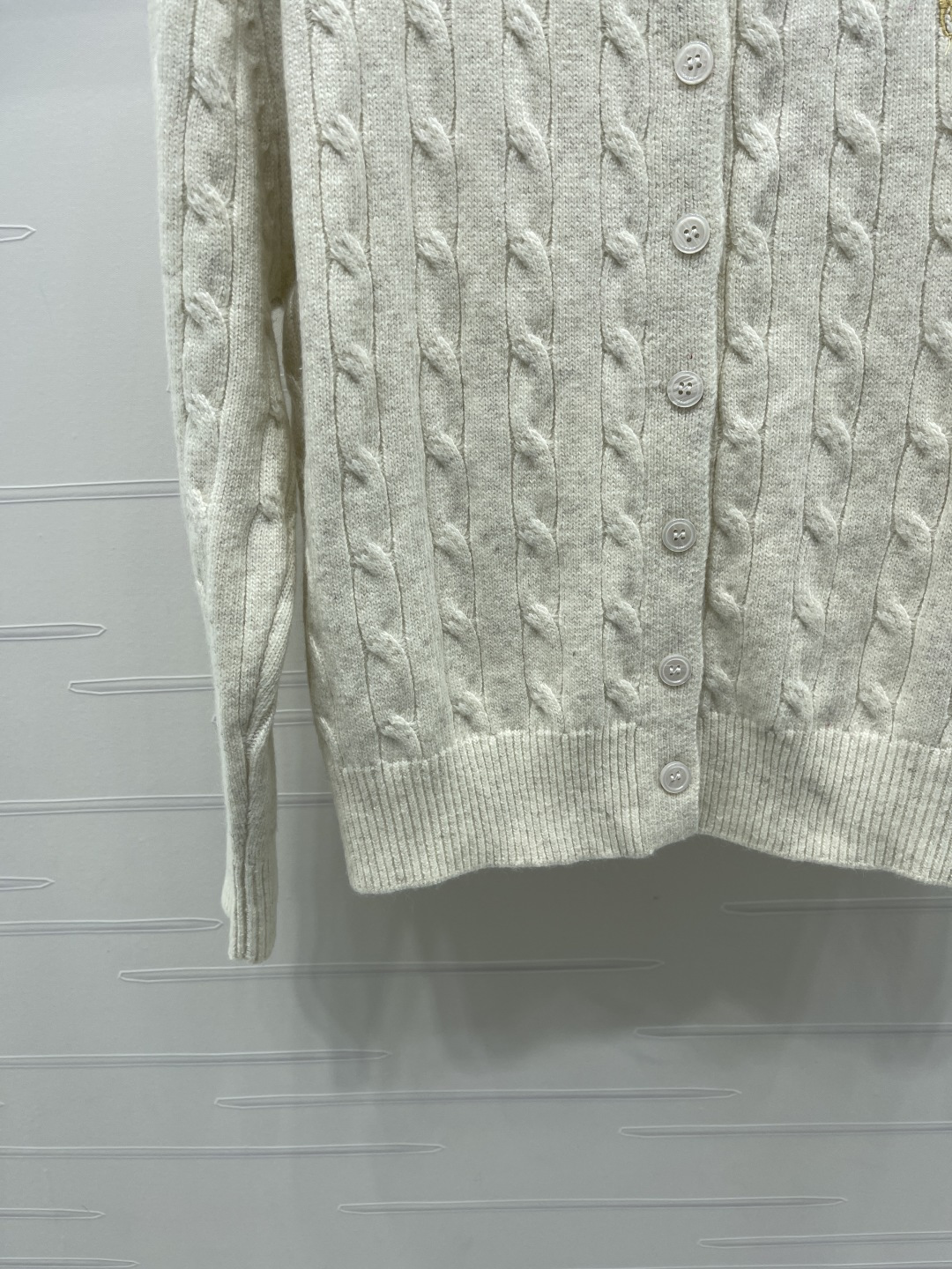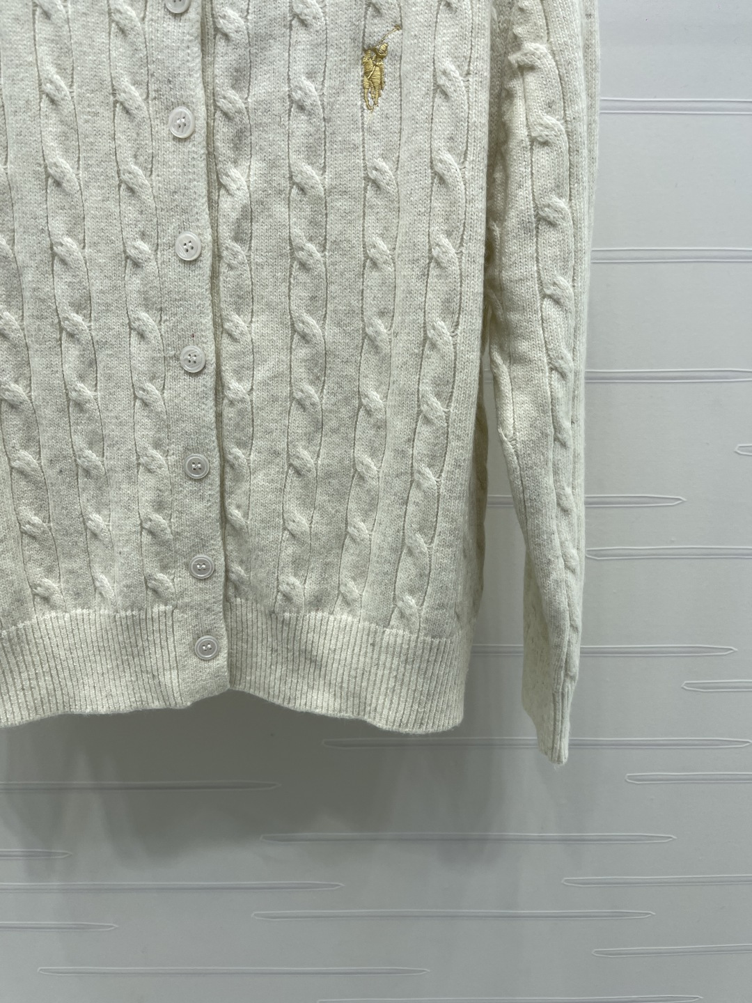 Details: Early Spring Cable Knit Cardigan, Premium Wool, Classic Horse Logo Embroidery, Timeless Style, High-end Custom, Fine Workmanship