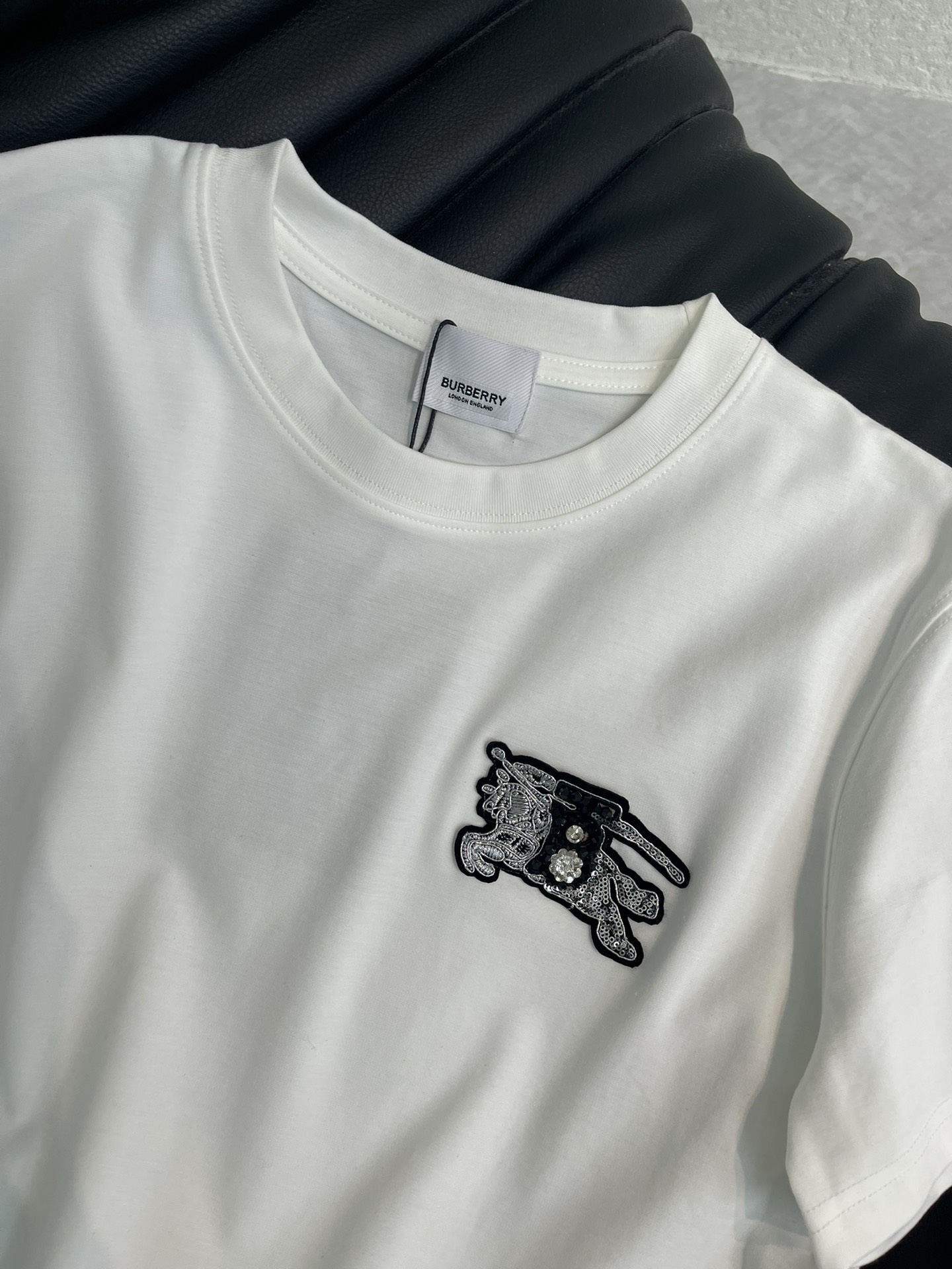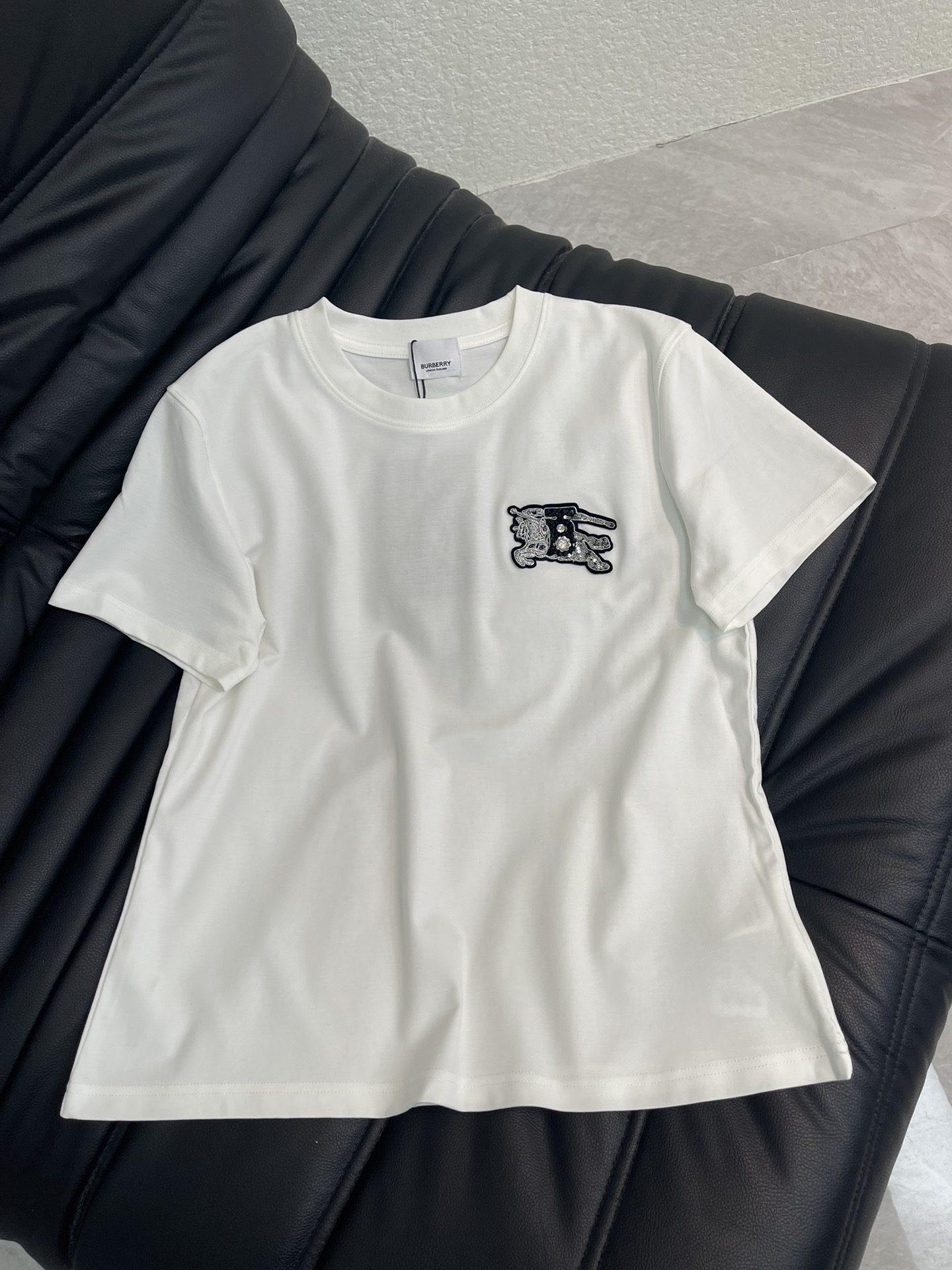 Details: Spring-Summer New Satin Short-Sleeve T-Shirt with War Horse Embroidery, Slim Fit, SML Sizes