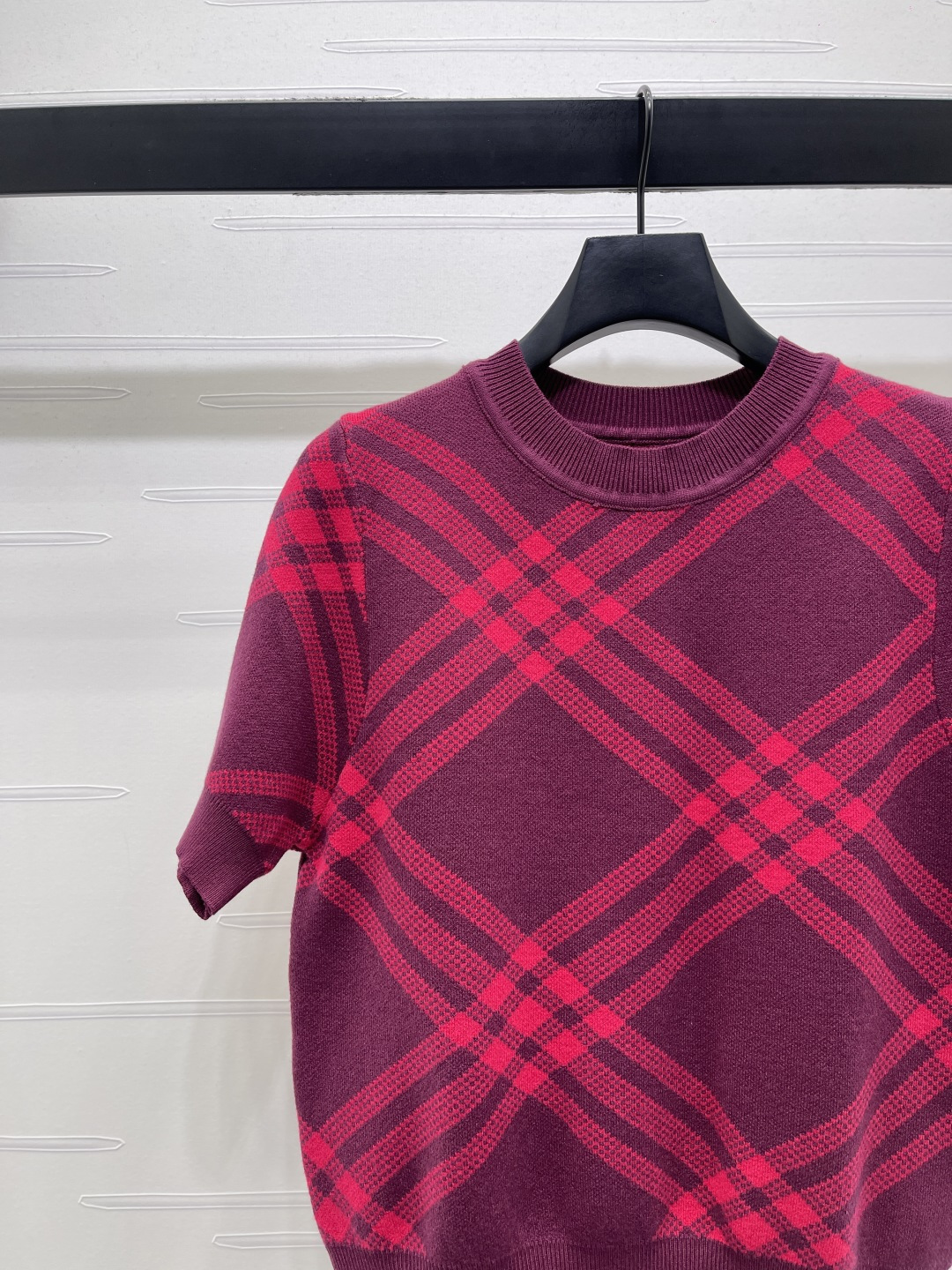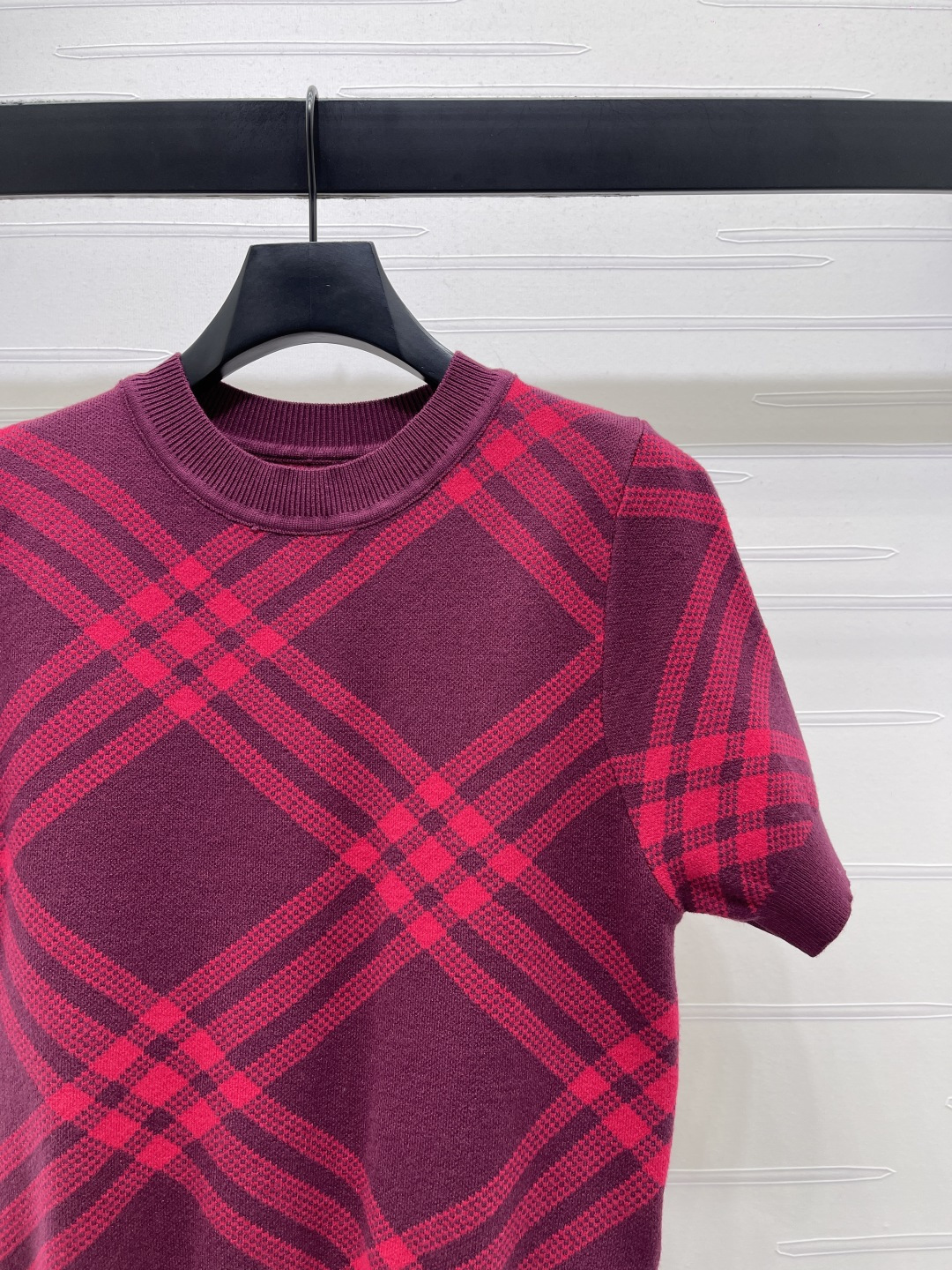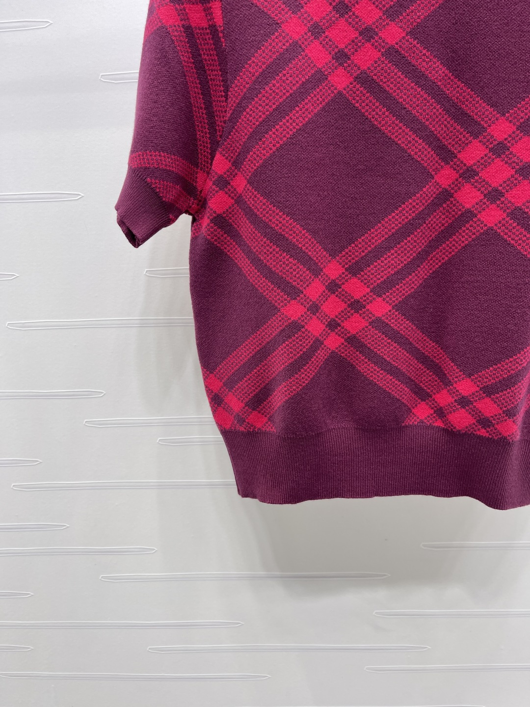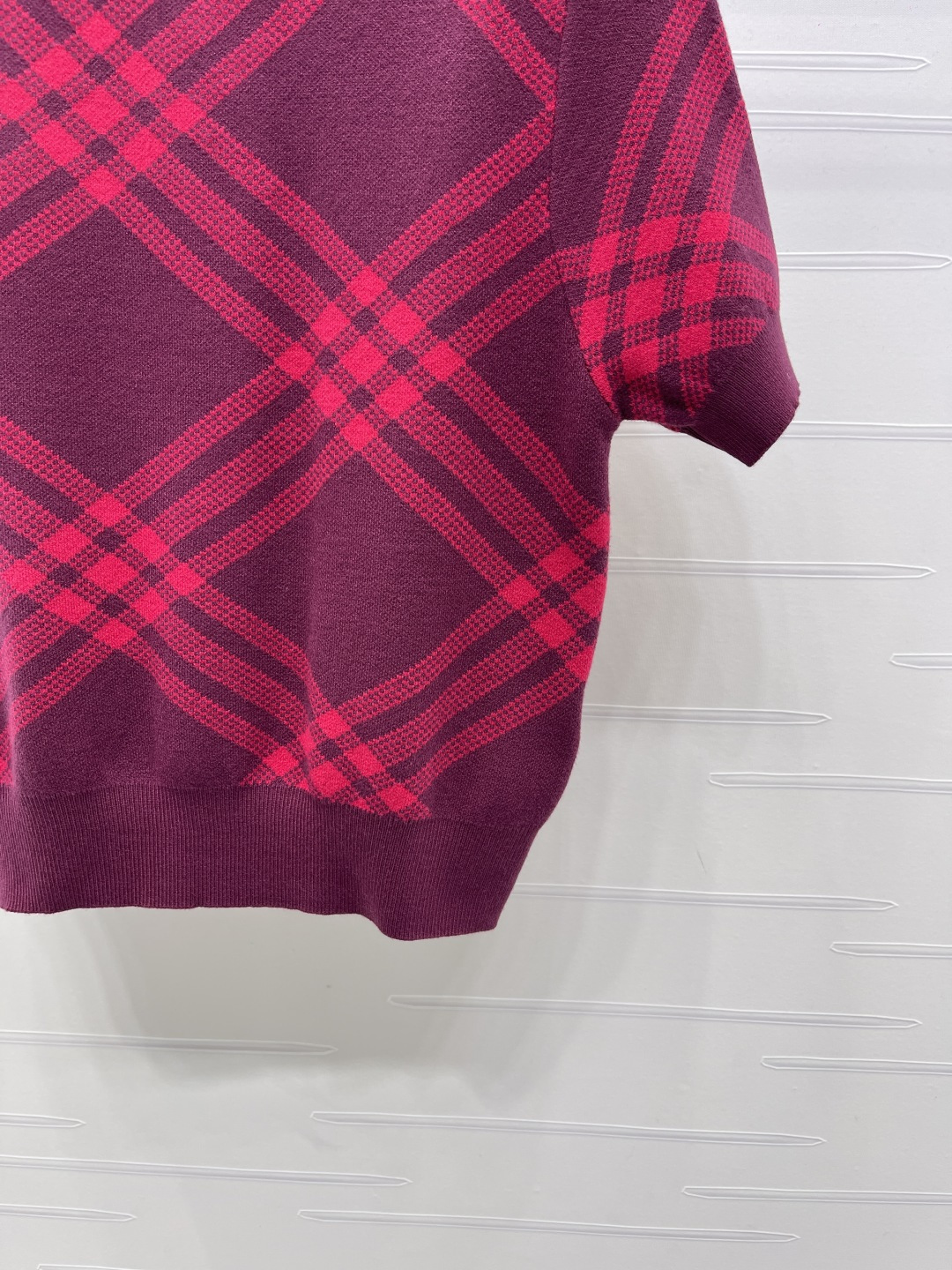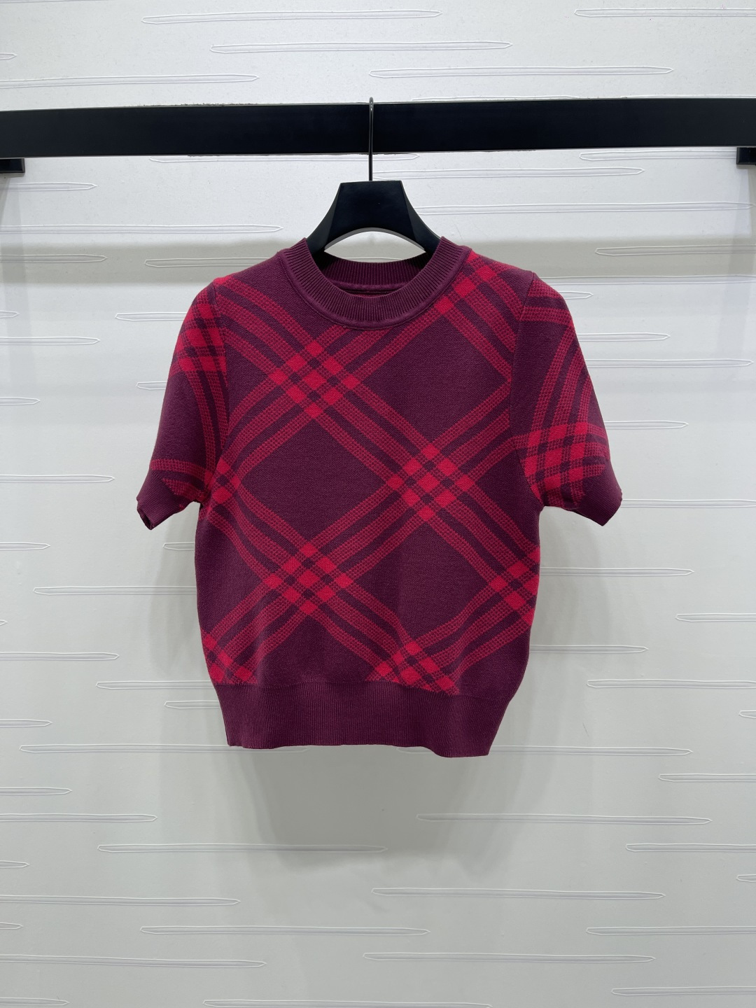 Details: Spring Knitted Short Sleeve with Plaid, 3 Colors, 3 Sizes. High-end Custom, Fine Workmanship