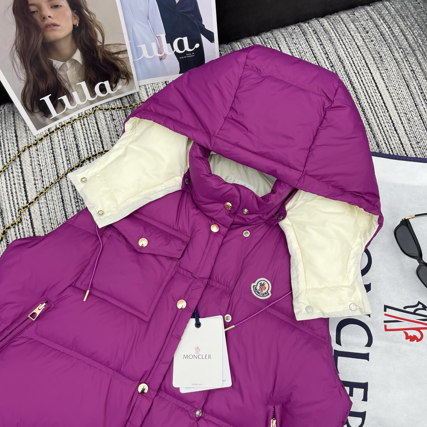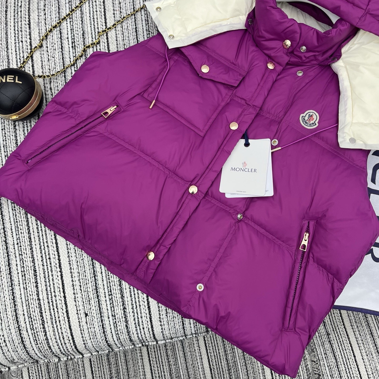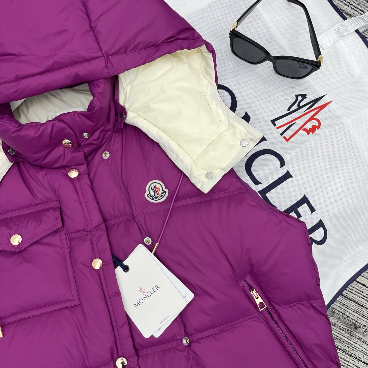 Details: Early autumn detachable hooded down vest, white goose down filled, lightweight and warm, great for layering