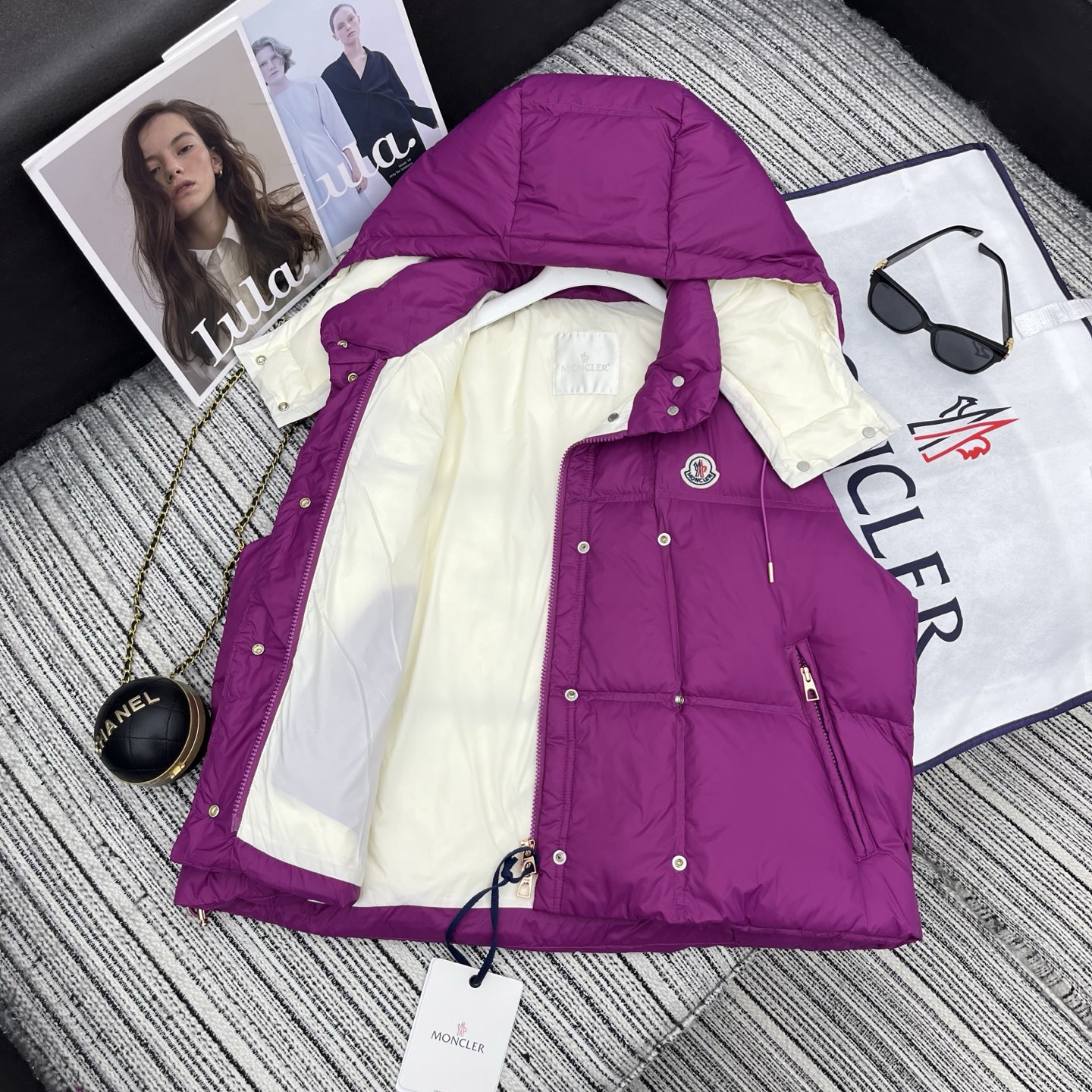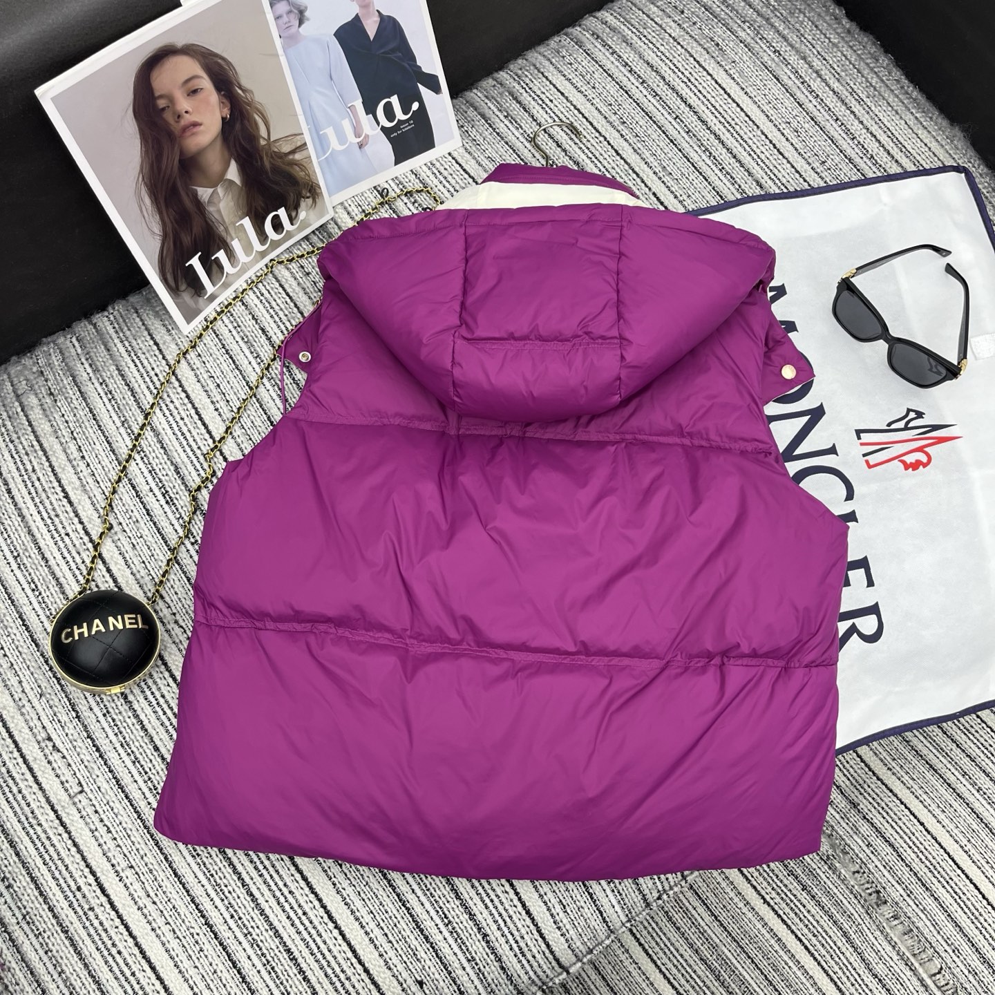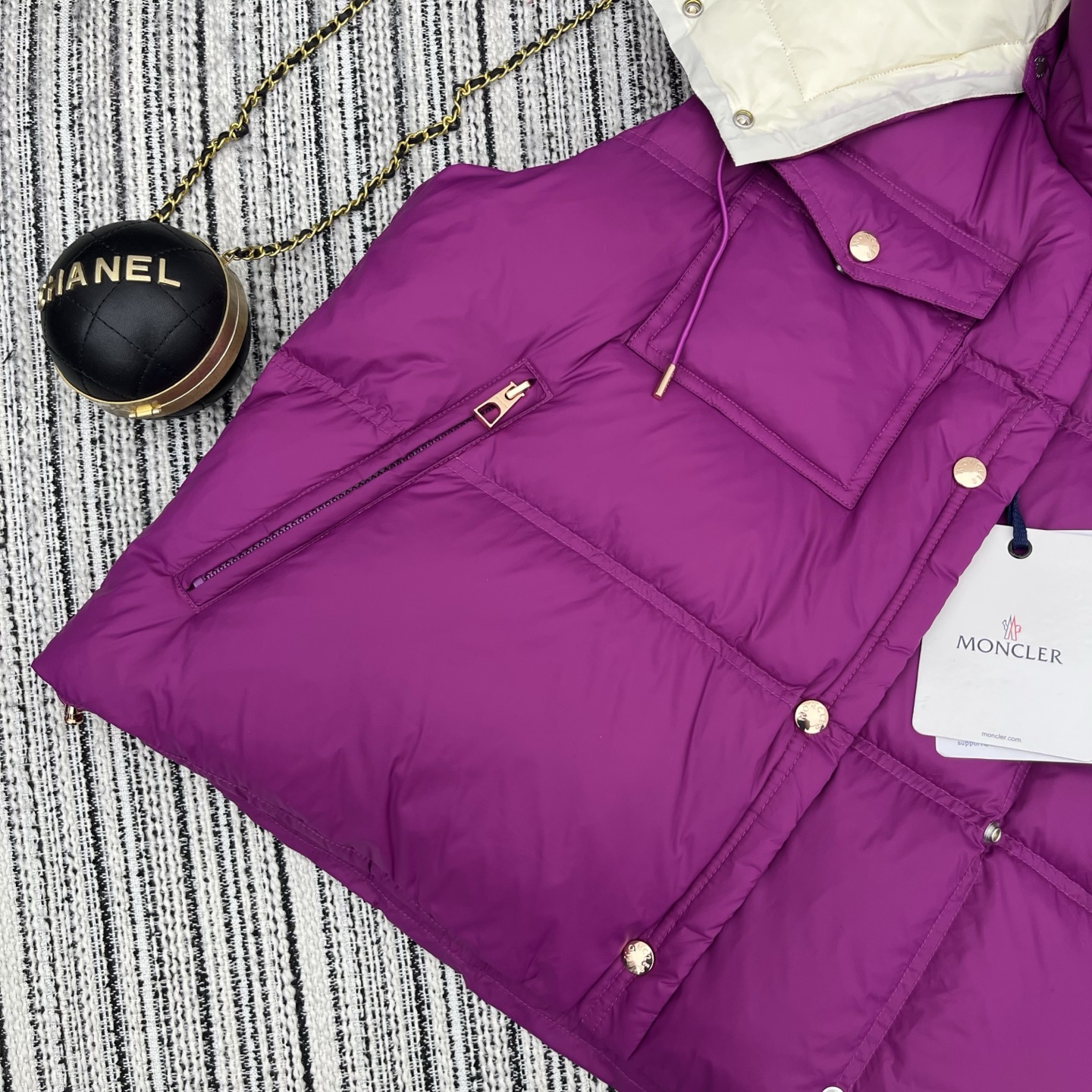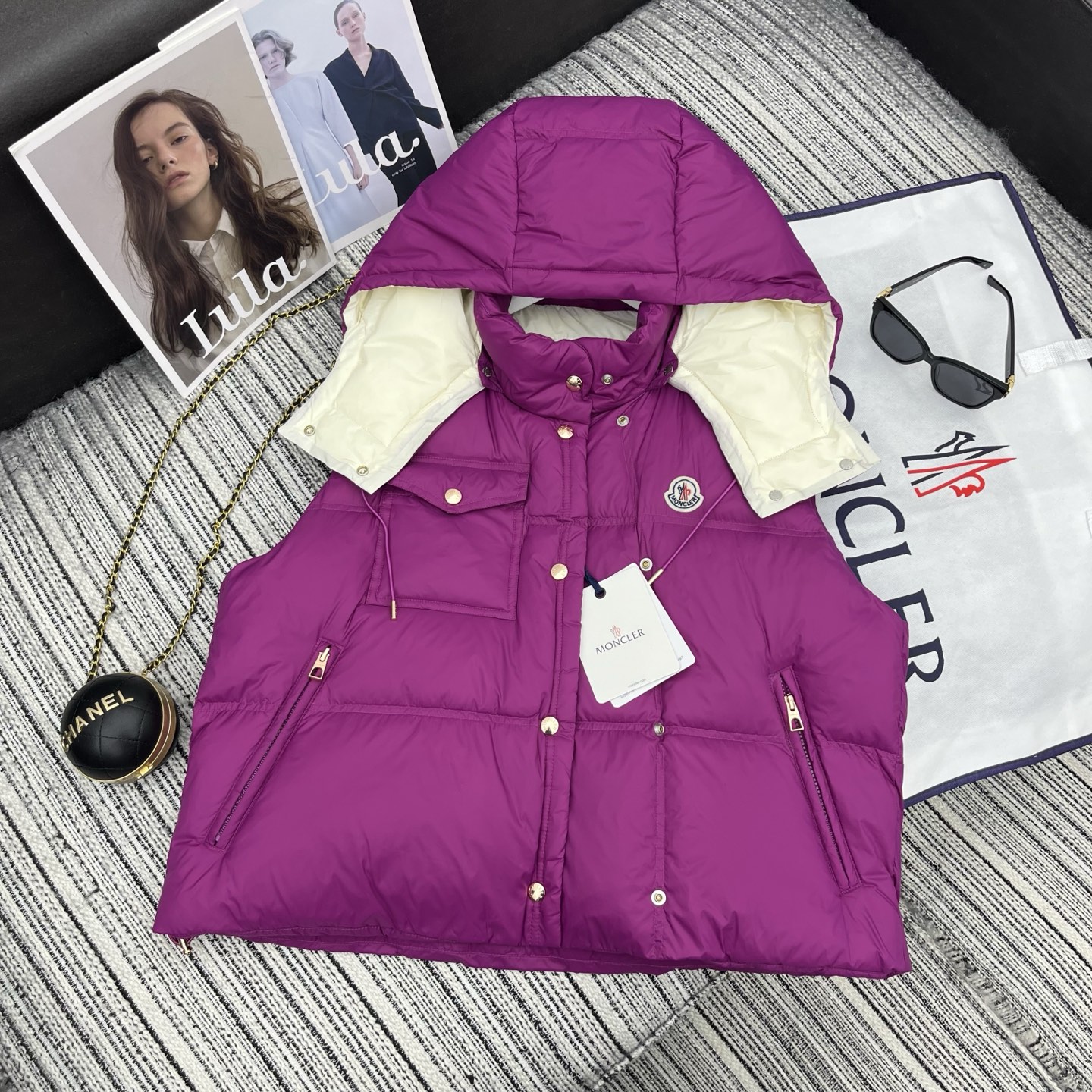 Details: Early autumn detachable hooded down vest, white goose down filled, lightweight and warm, great for layering