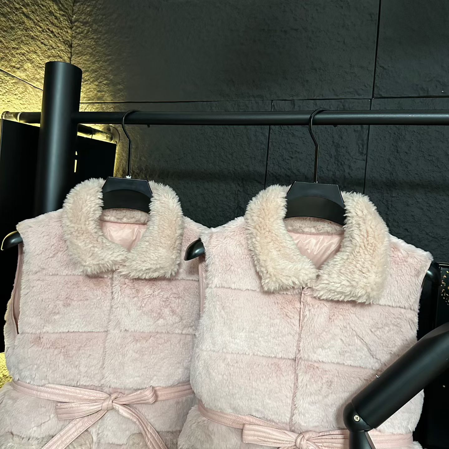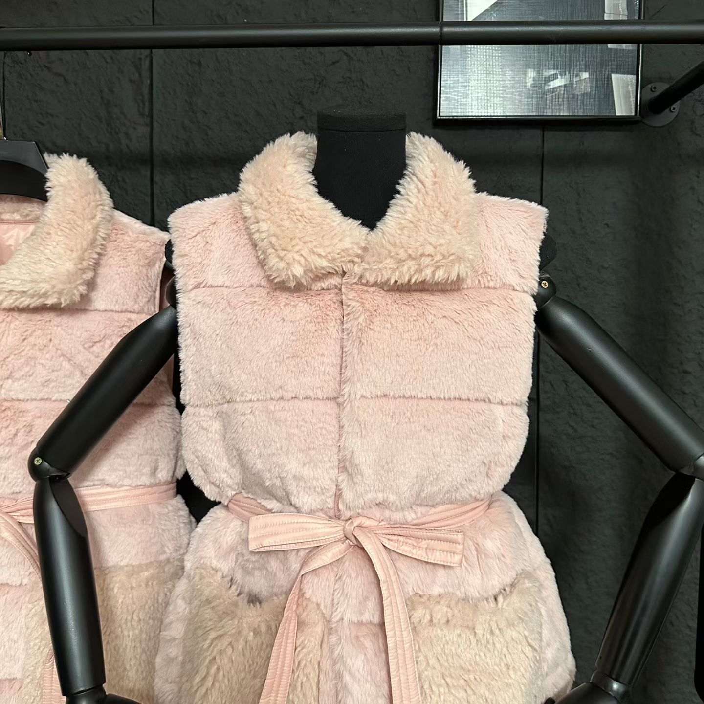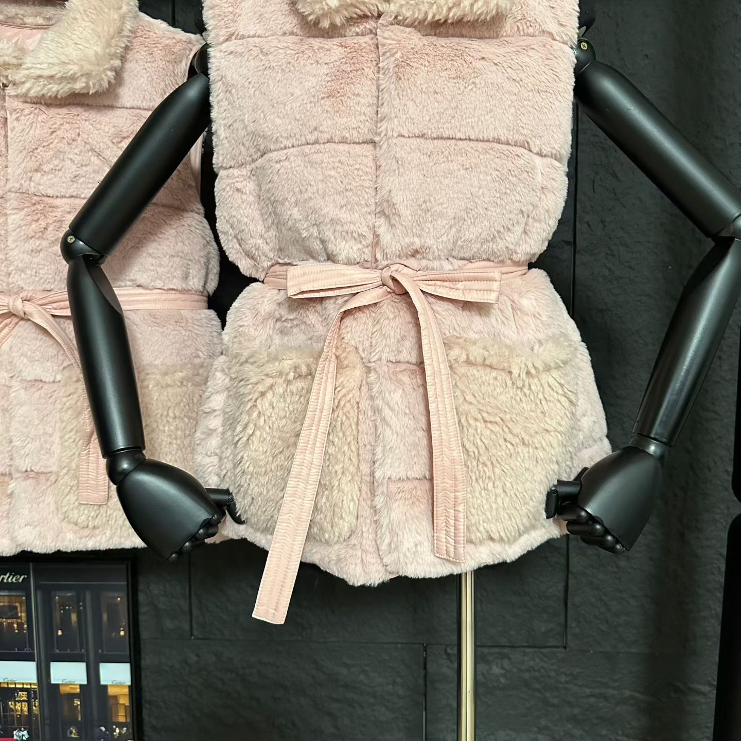 Details: Autumn/Winter Women s Synthetic and Teddy Down Vest with Detachable Belt, in White, Beige & Pink