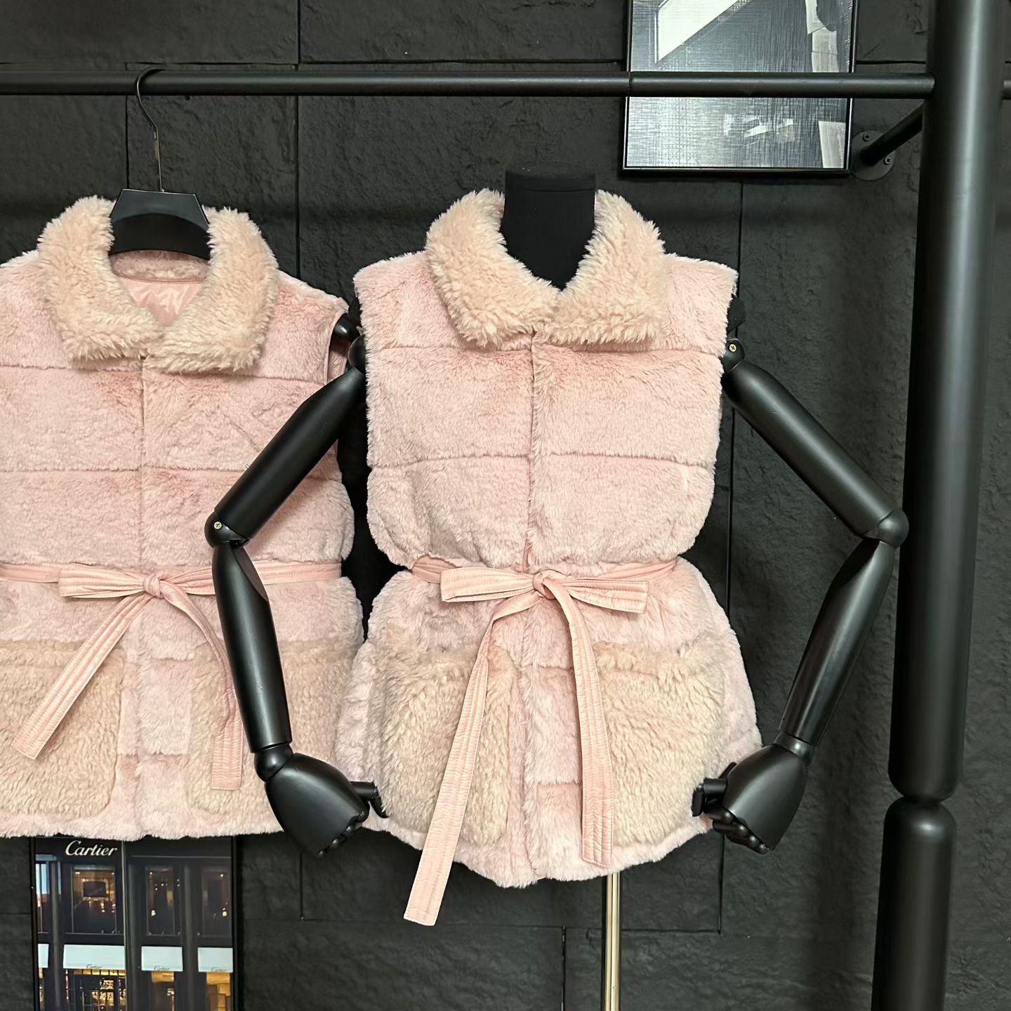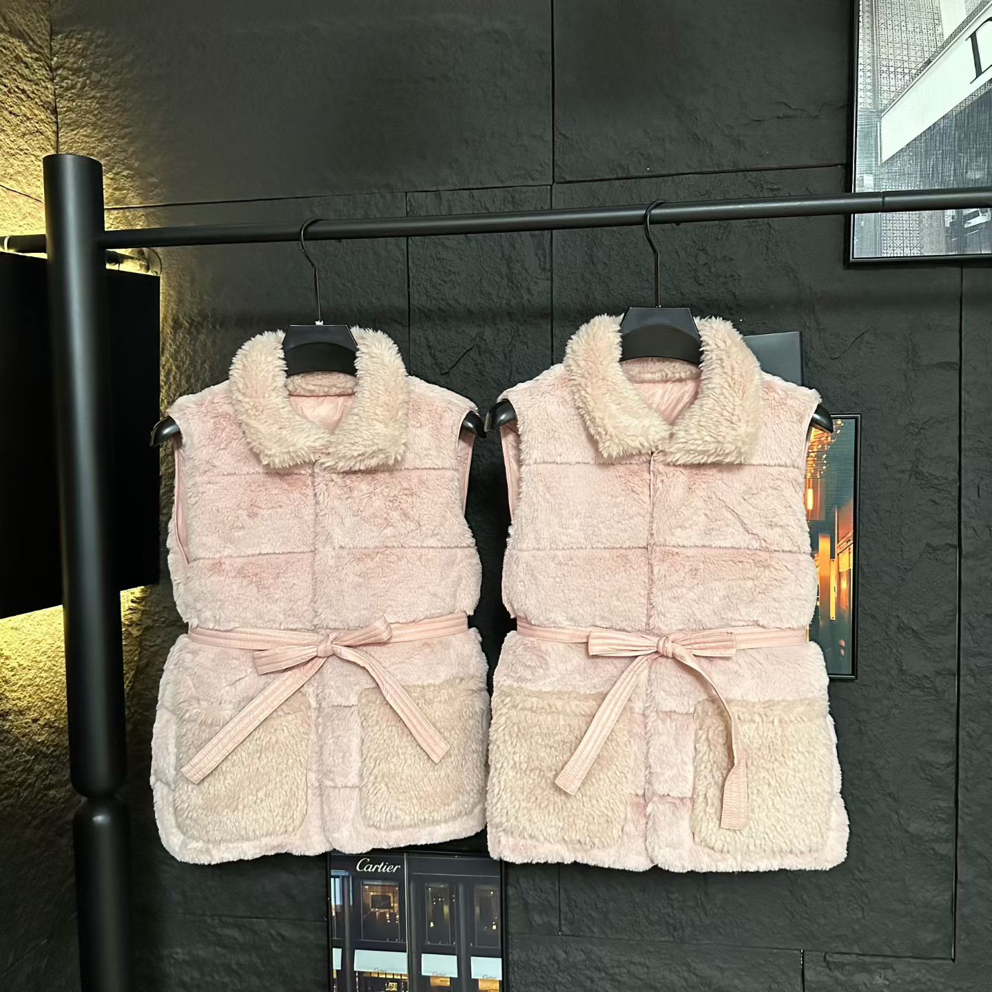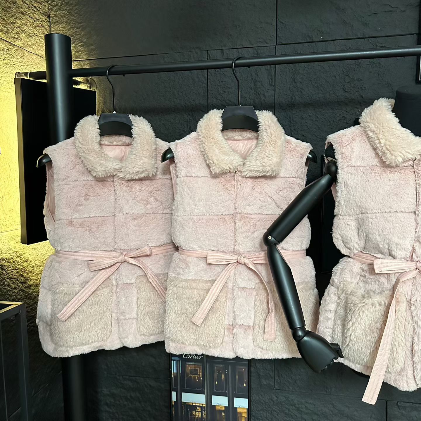 Details: Autumn/Winter Women s Synthetic and Teddy Down Vest with Detachable Belt, in White, Beige & Pink