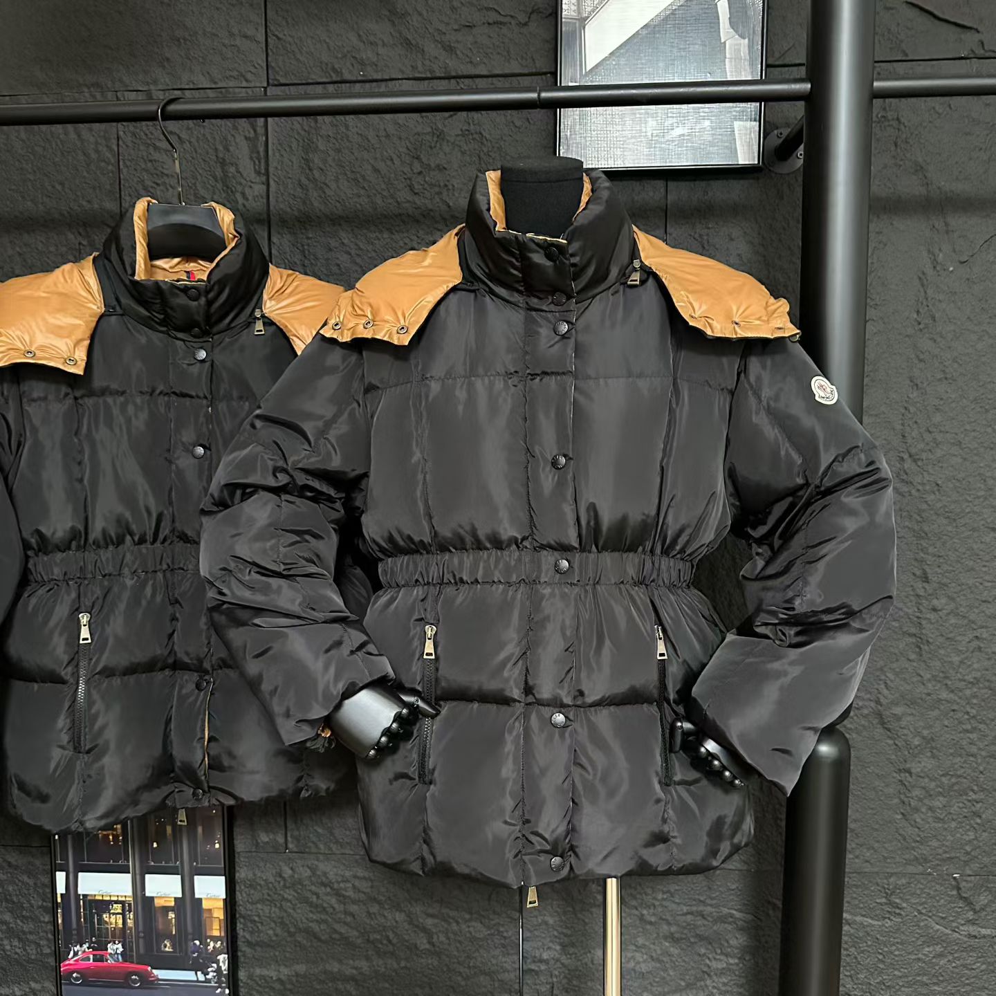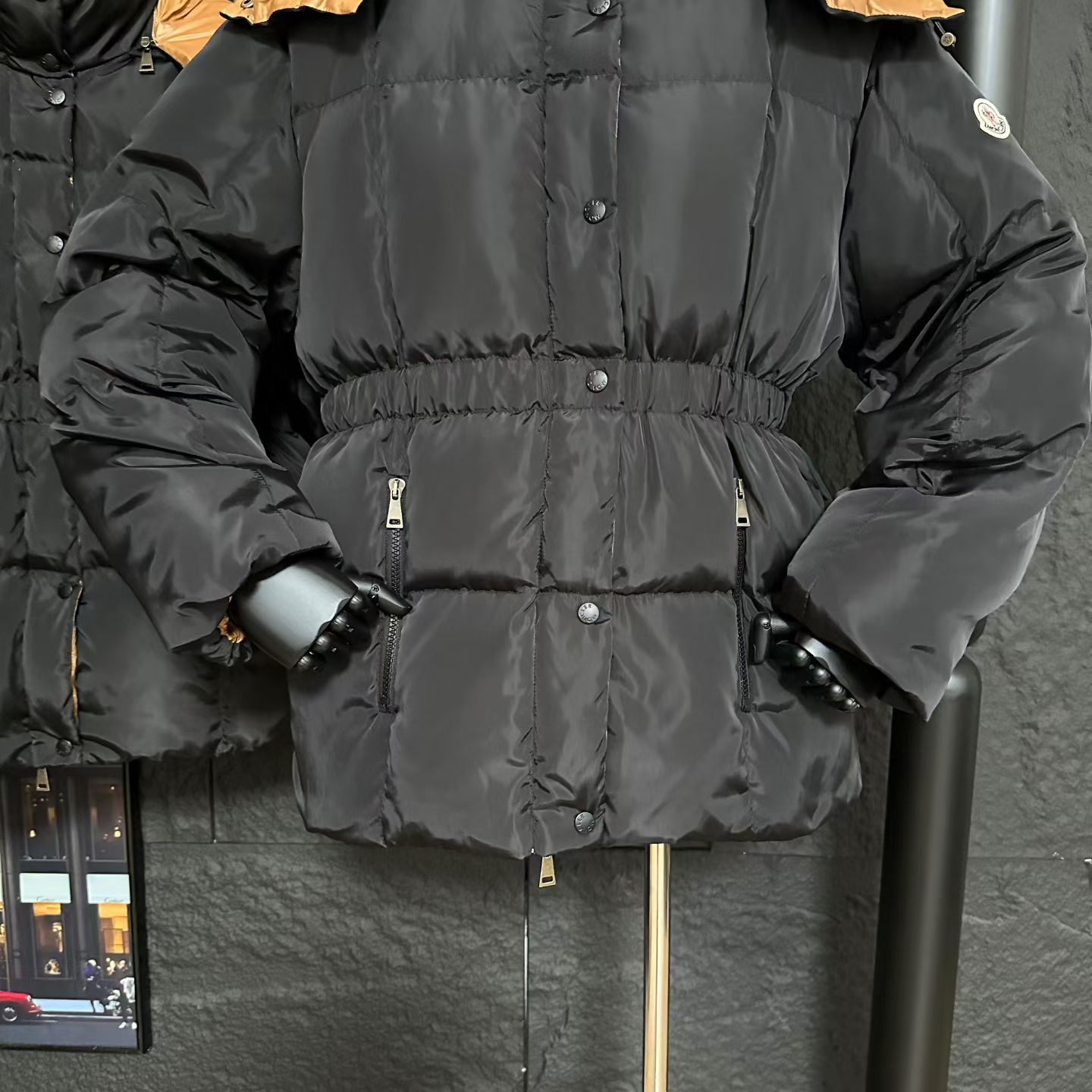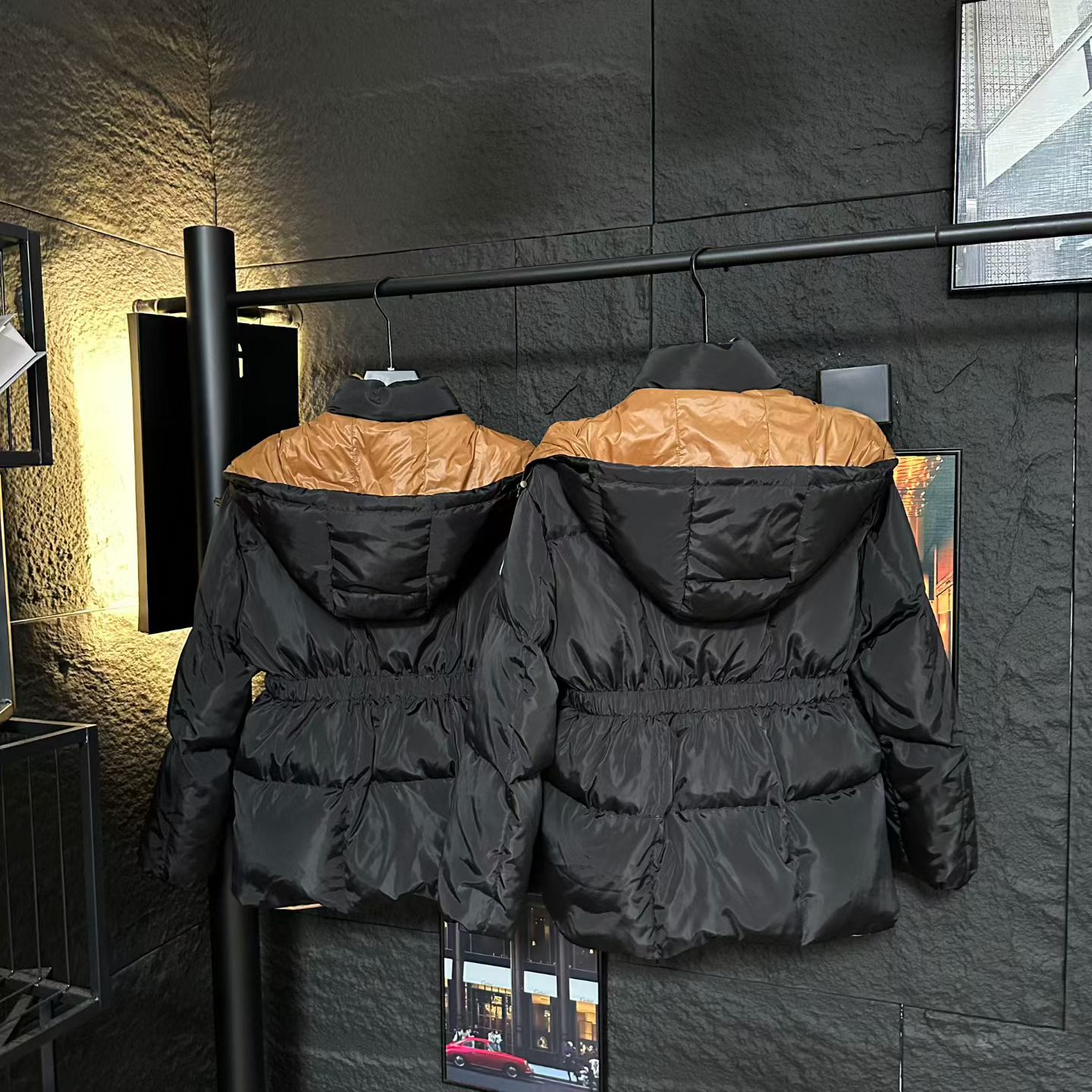 Details: Autumn - Winter Star - style Black - Gold Belted Down Jacket, Non - bloated, Retro Hardware