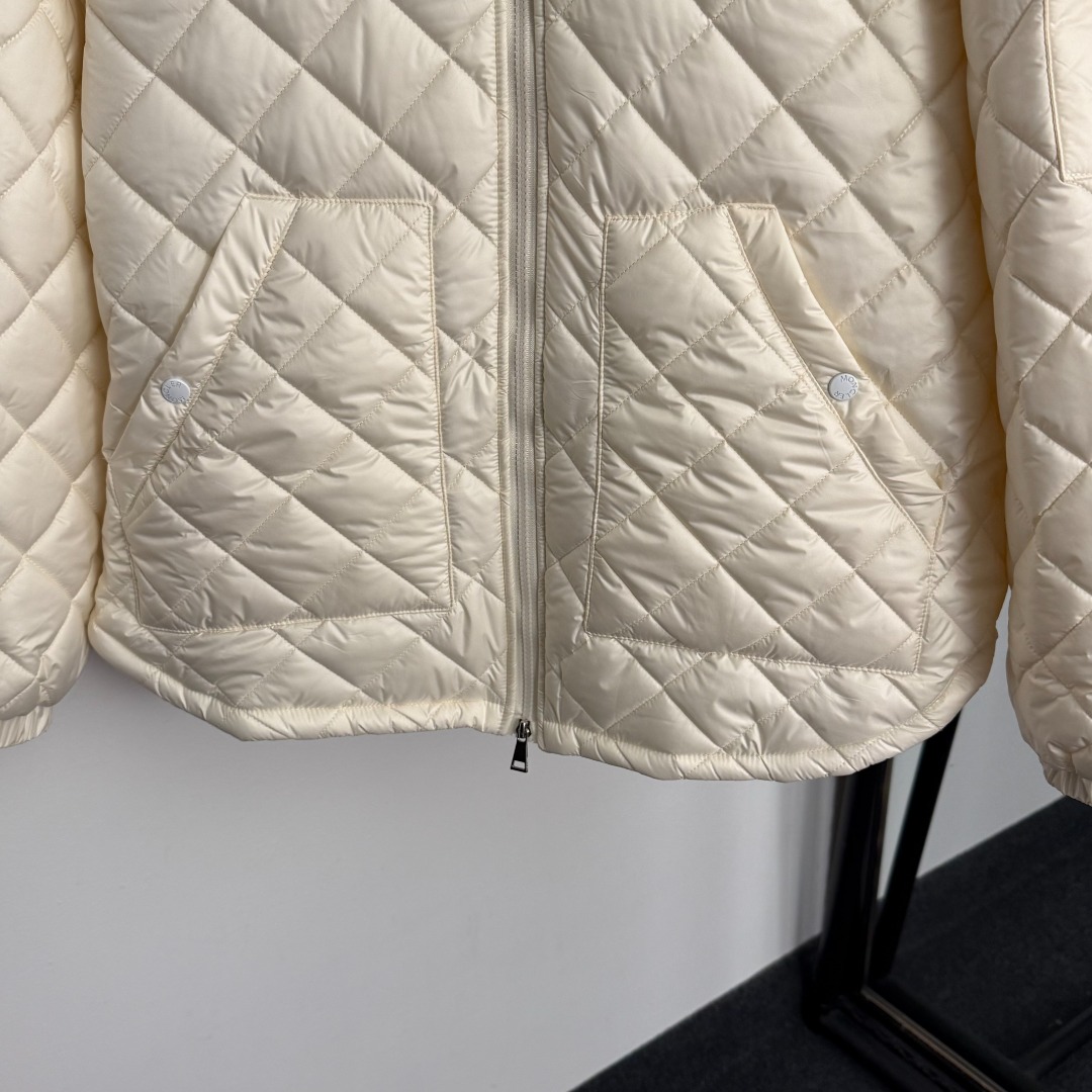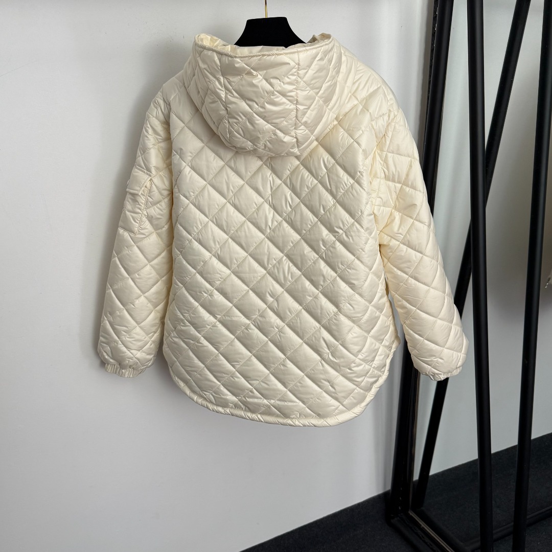 Details: New side - badge embroidered long - sleeve hooded cotton zipper coat, in off - white and black. High - end customization, fine workmanship
