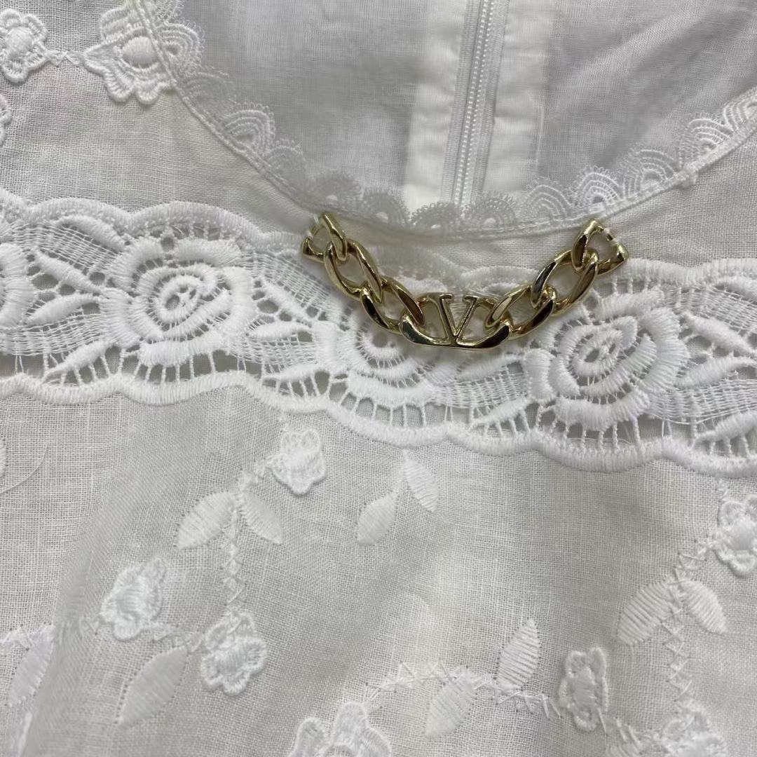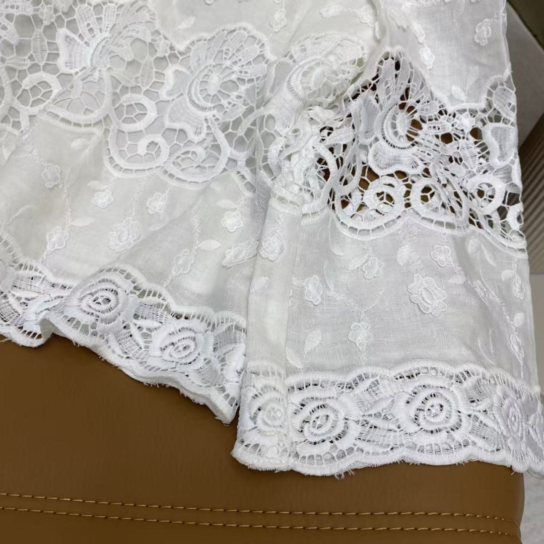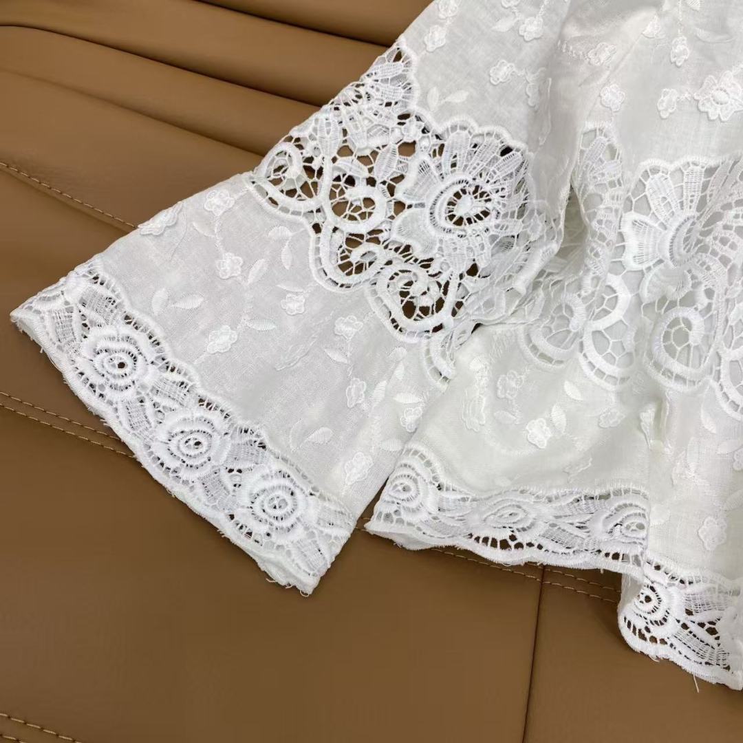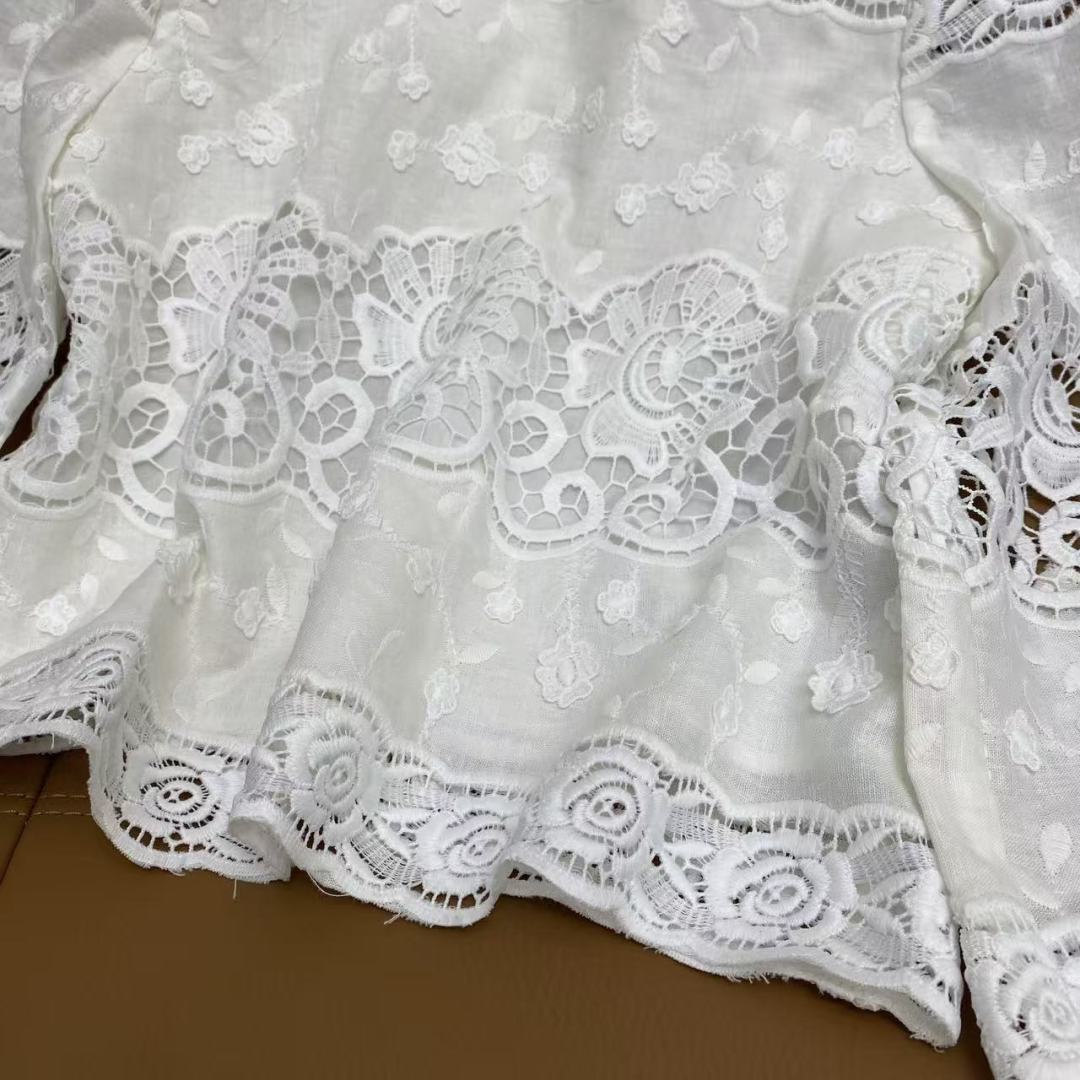Details: Spring Pure White Linen Top, Lace Embroidery, Breathable. High-end Customization, Fine Workmanship
