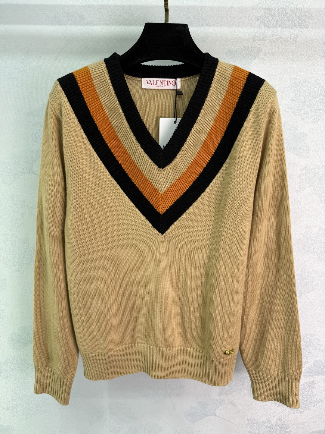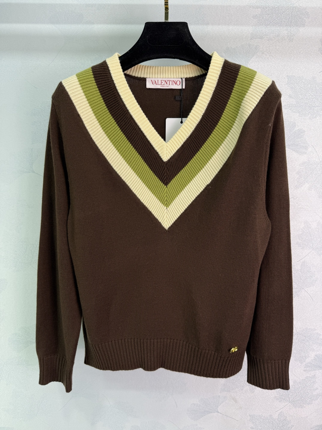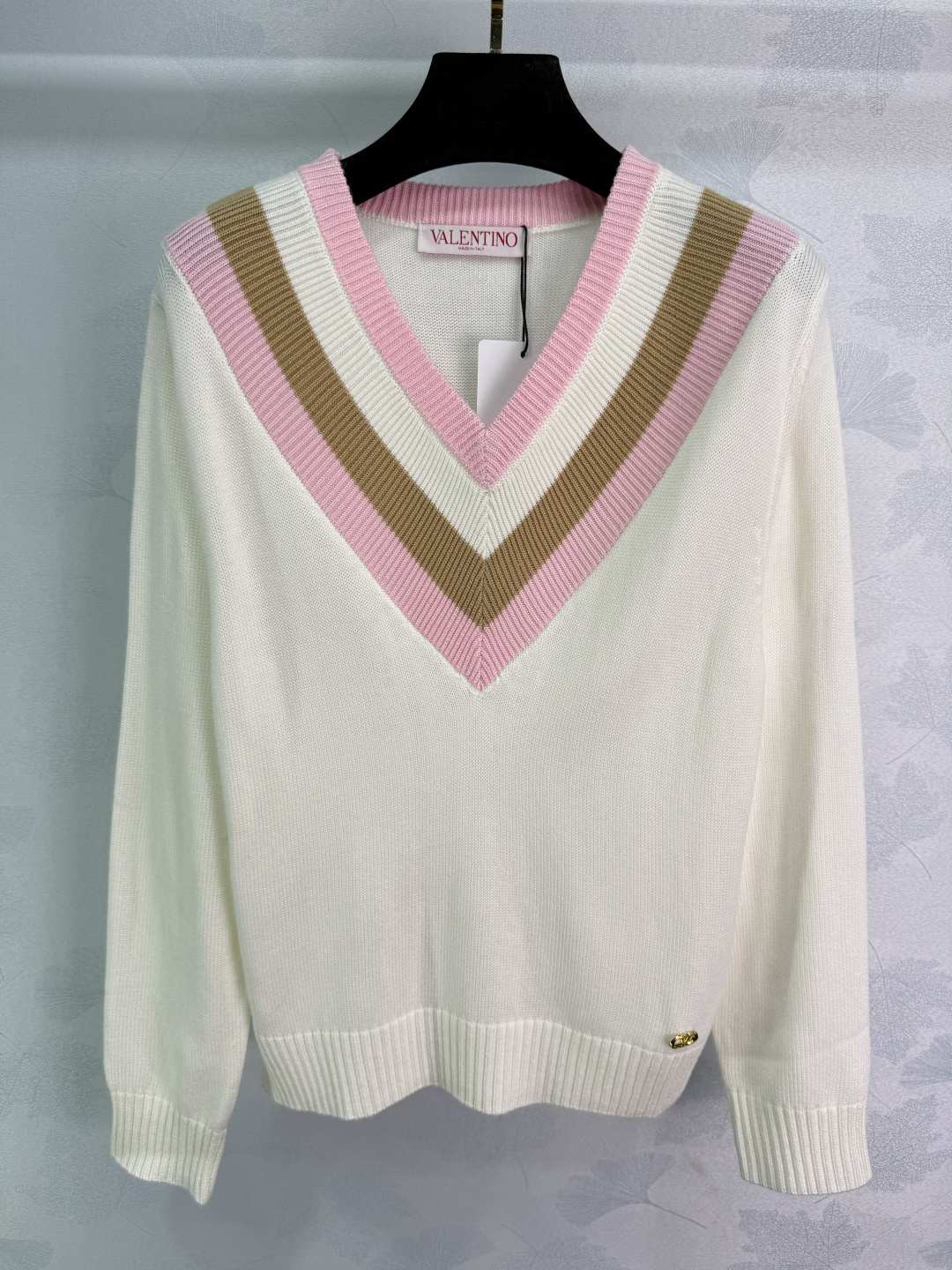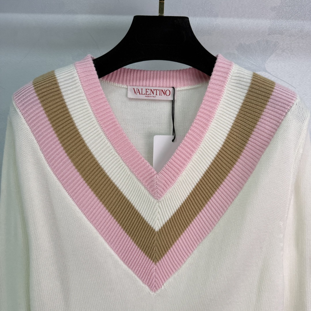here:home > WOMENS > Valentino > Pullover Valentino (W) > Valentino Customized Wool V - Neck Long - Sleeve Sweater with Heart - Shaped Stripes
