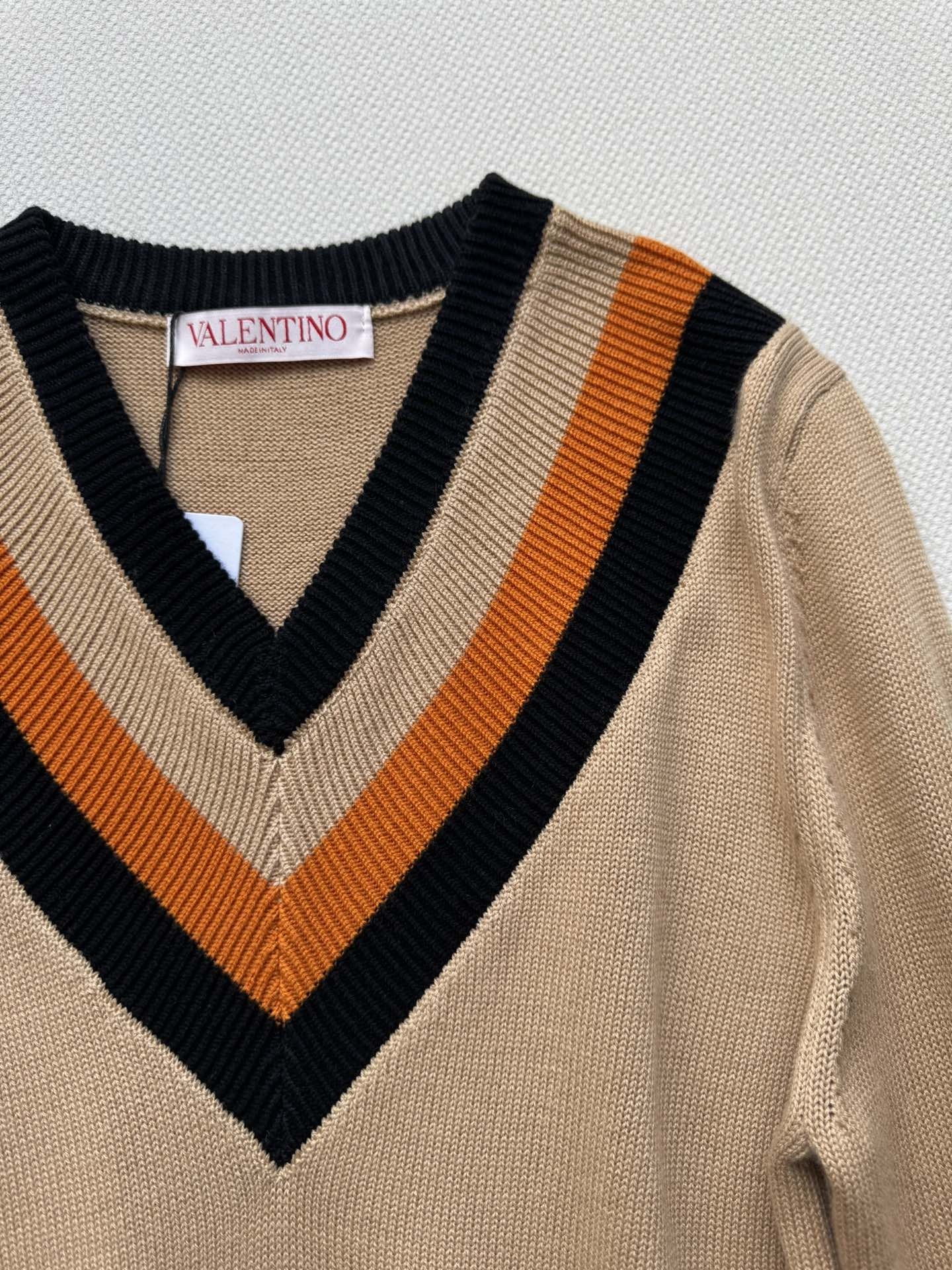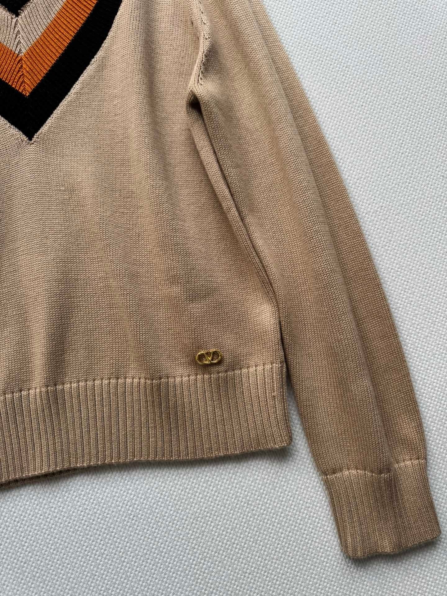 Details: New knitted pullover with small logo, contrast V-neck, soft texture, suitable for daily wear.