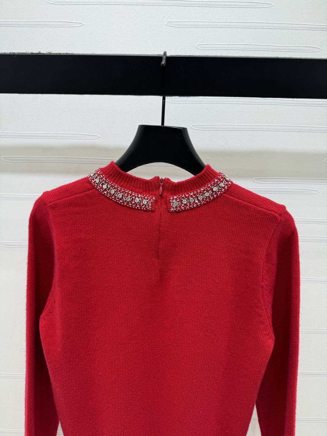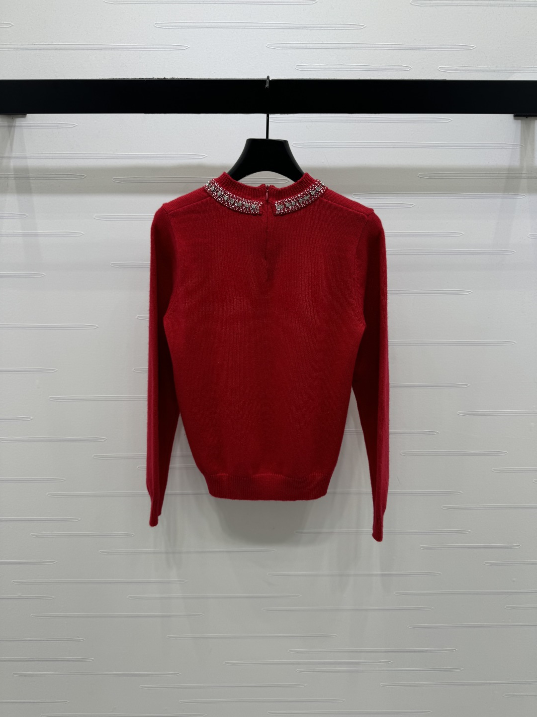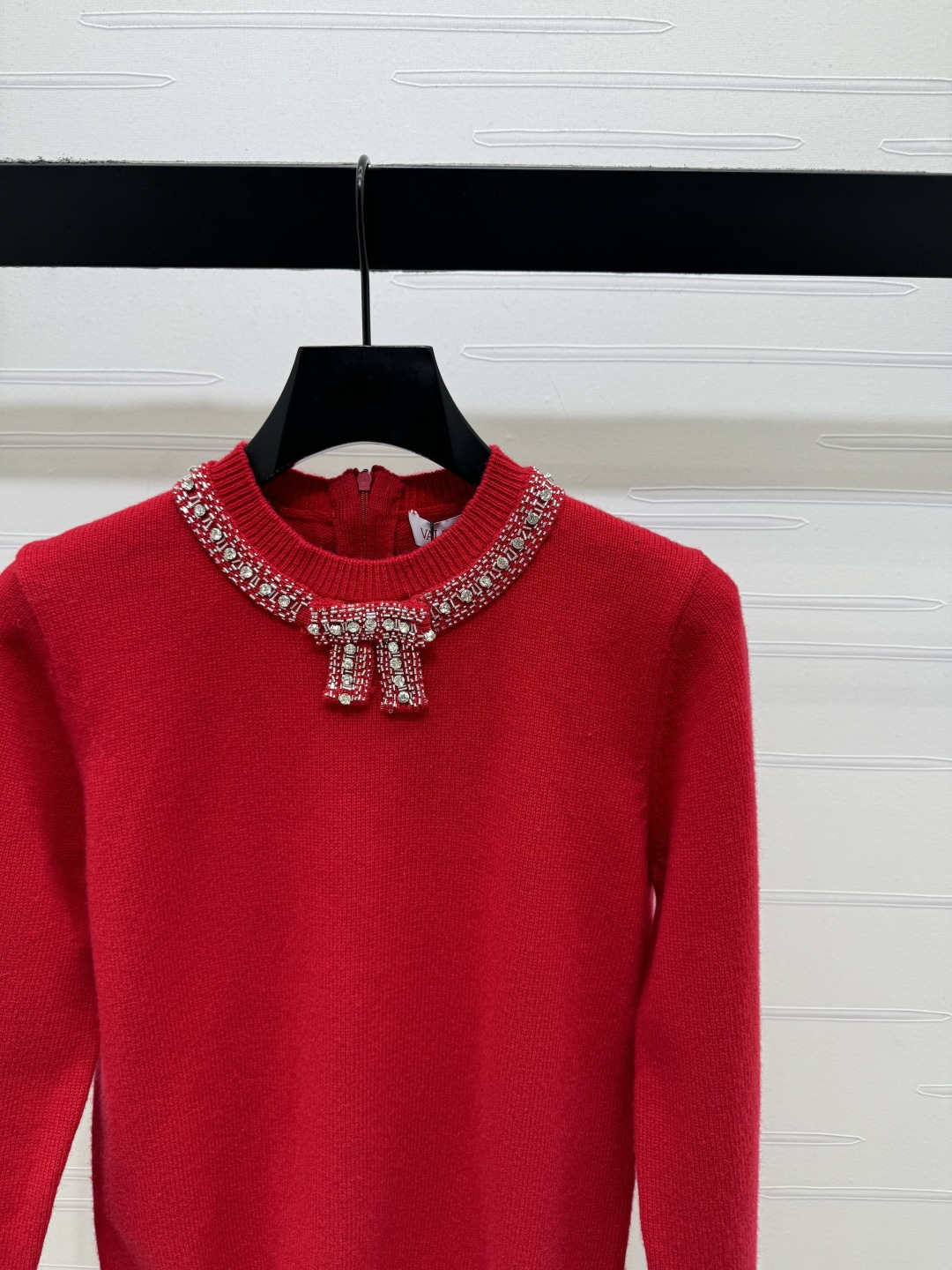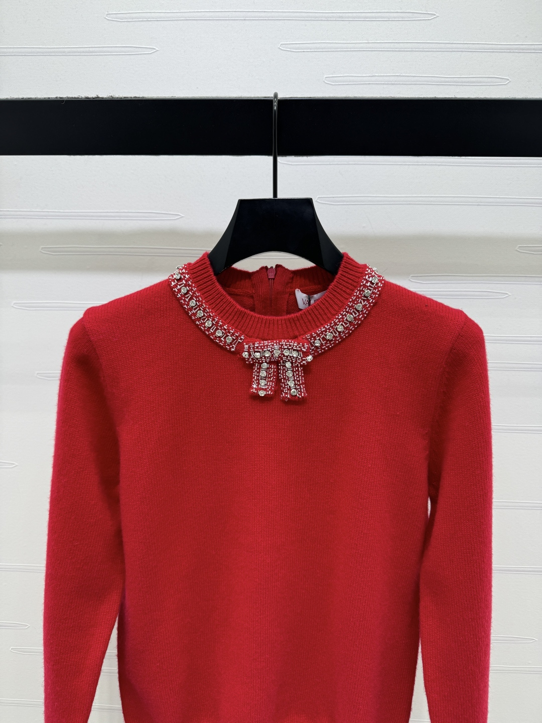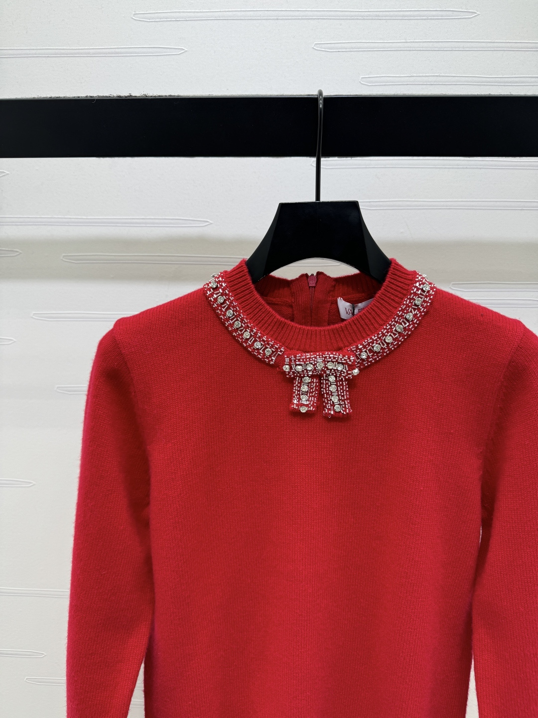 Details: Early Spring Red Bow Studded Knit Sweater, Customized Wool, Flattering, High-end Customization, Fine Craftsmanship