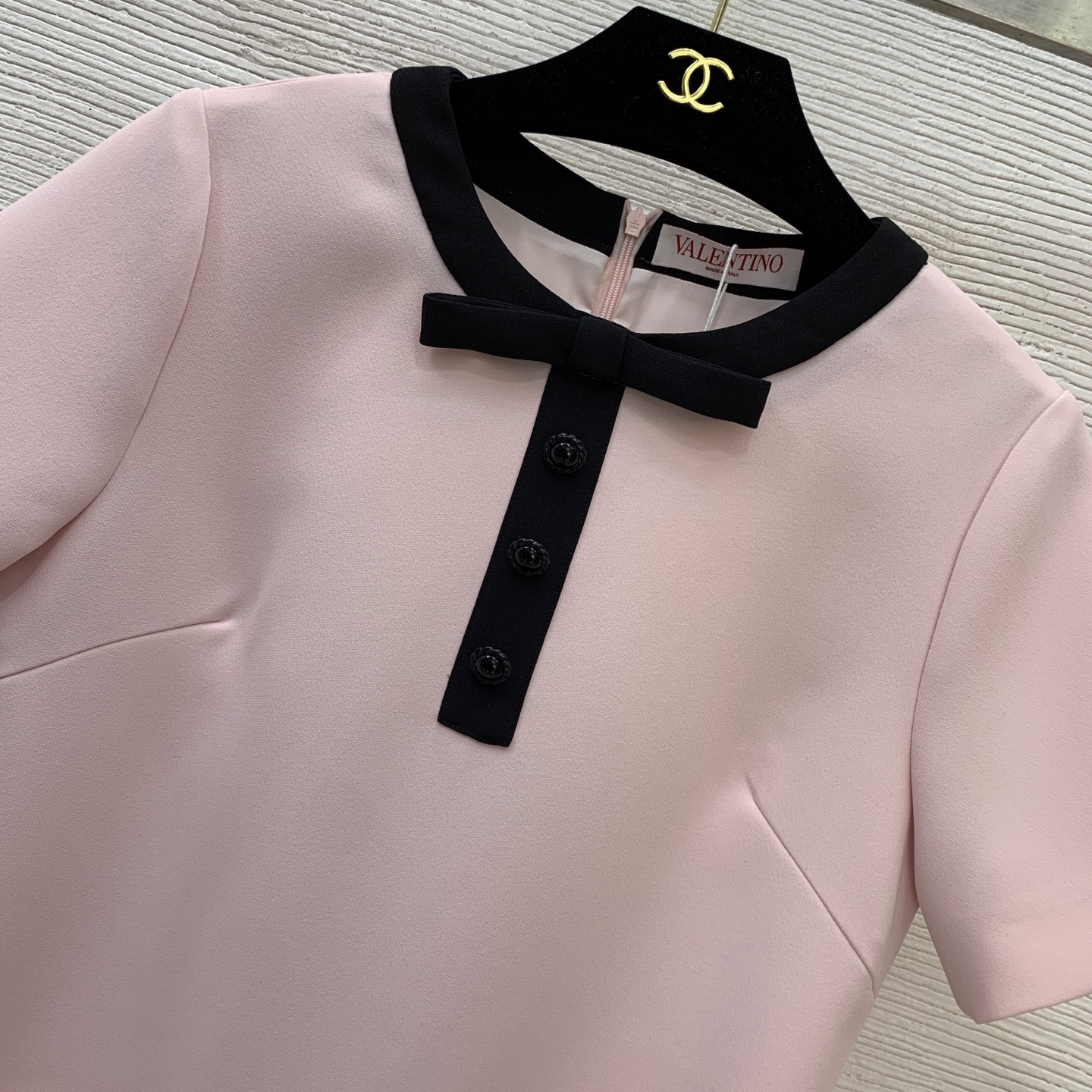 Details: New high-end custom V-neck short-sleeved dress with bow and metal accessories, size M, available in black, red, and pink. High-end custom, fine workmanship