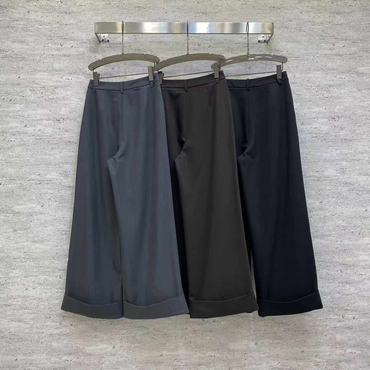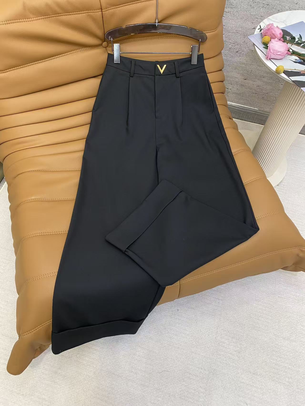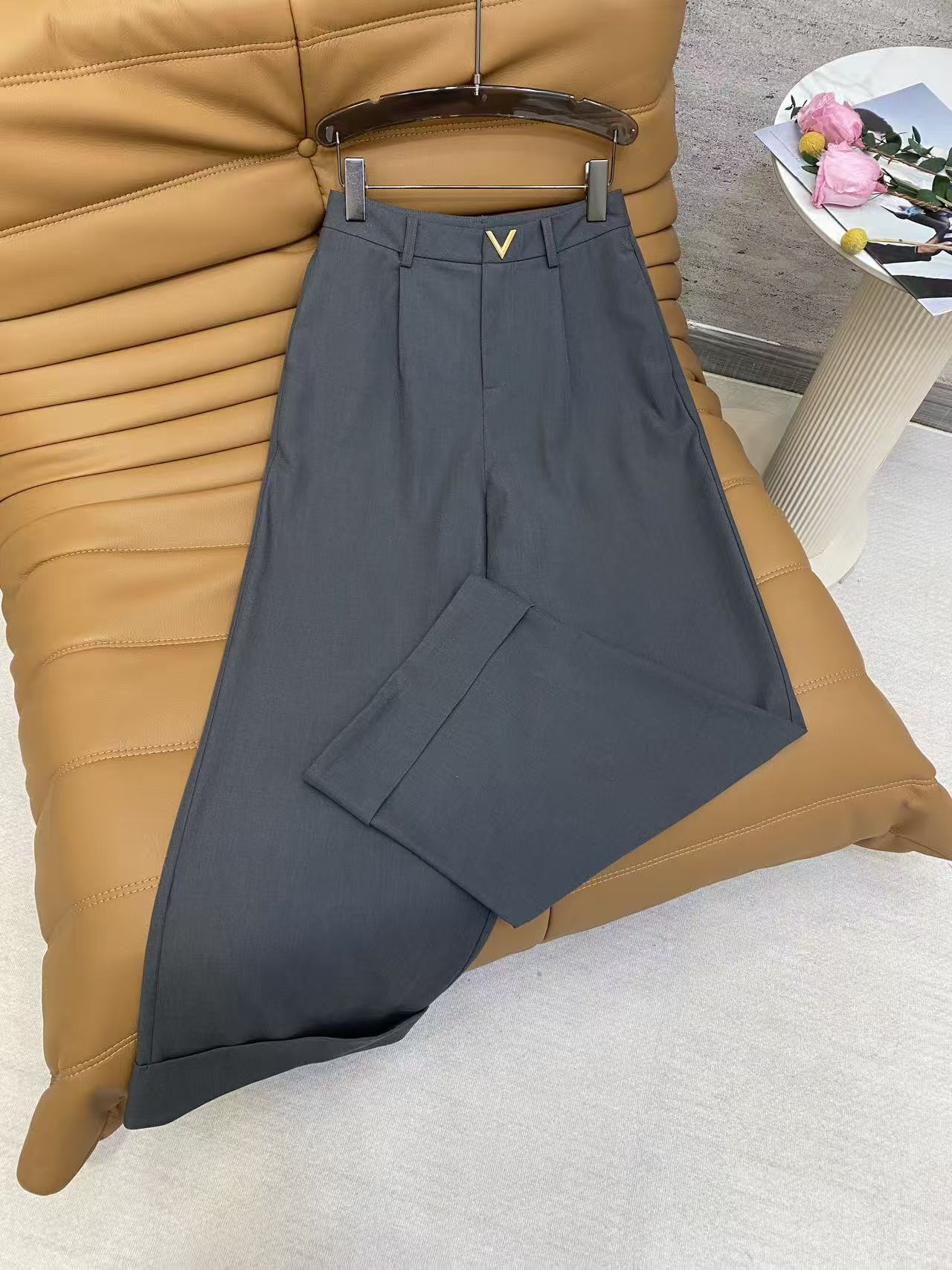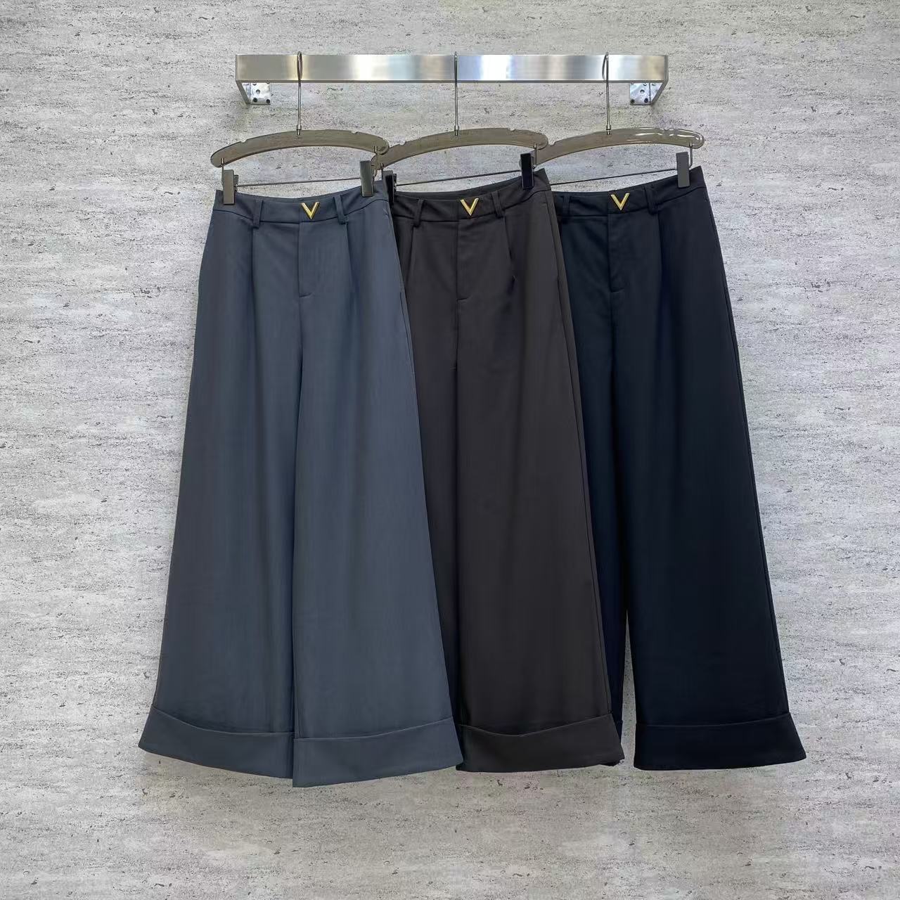 Details: Spring Wide-leg Trousers, TR Suit Fabric, V-shaped Metal Decoration, Three Colors, High-end Customized, Fine Workmanship