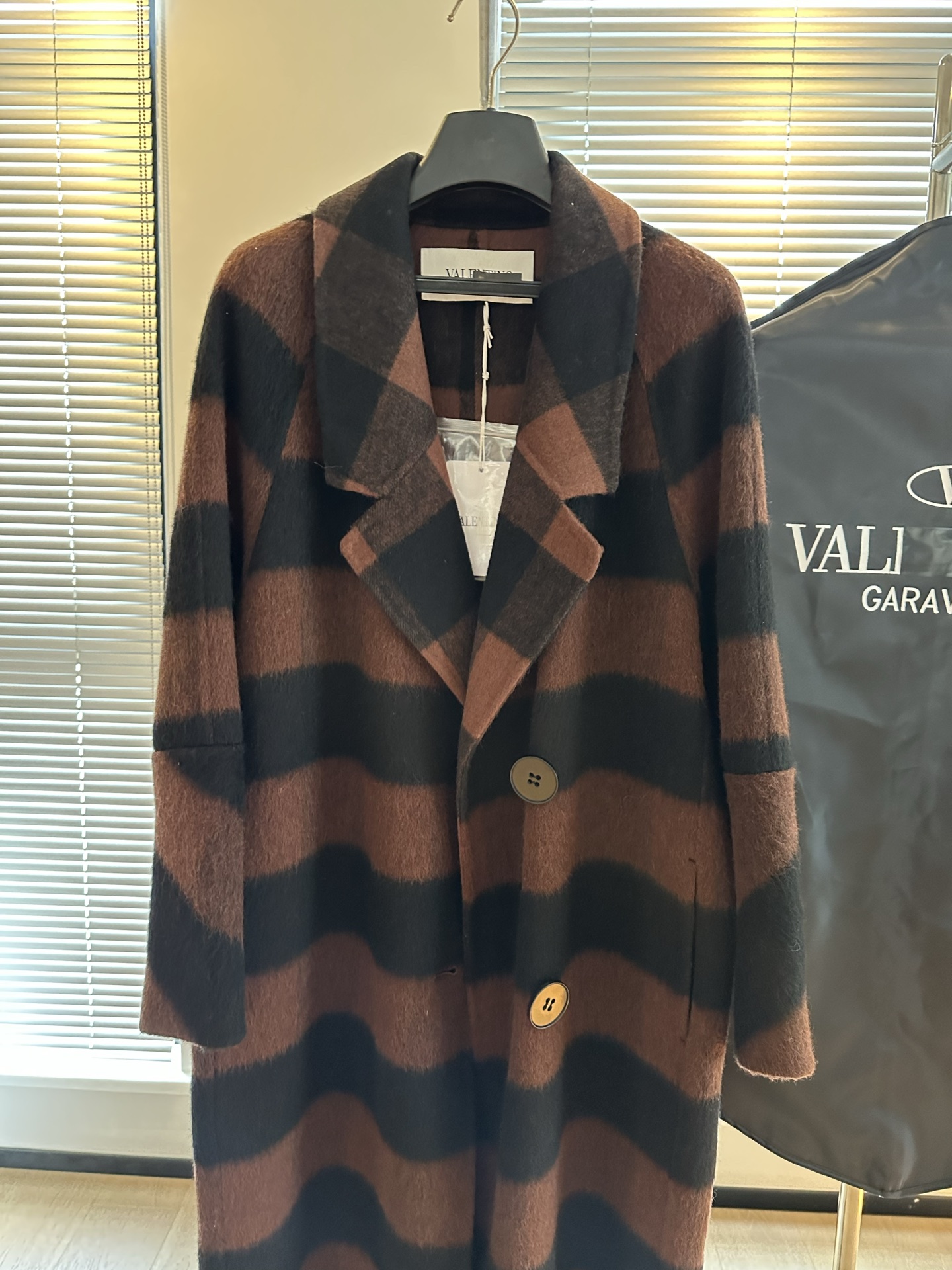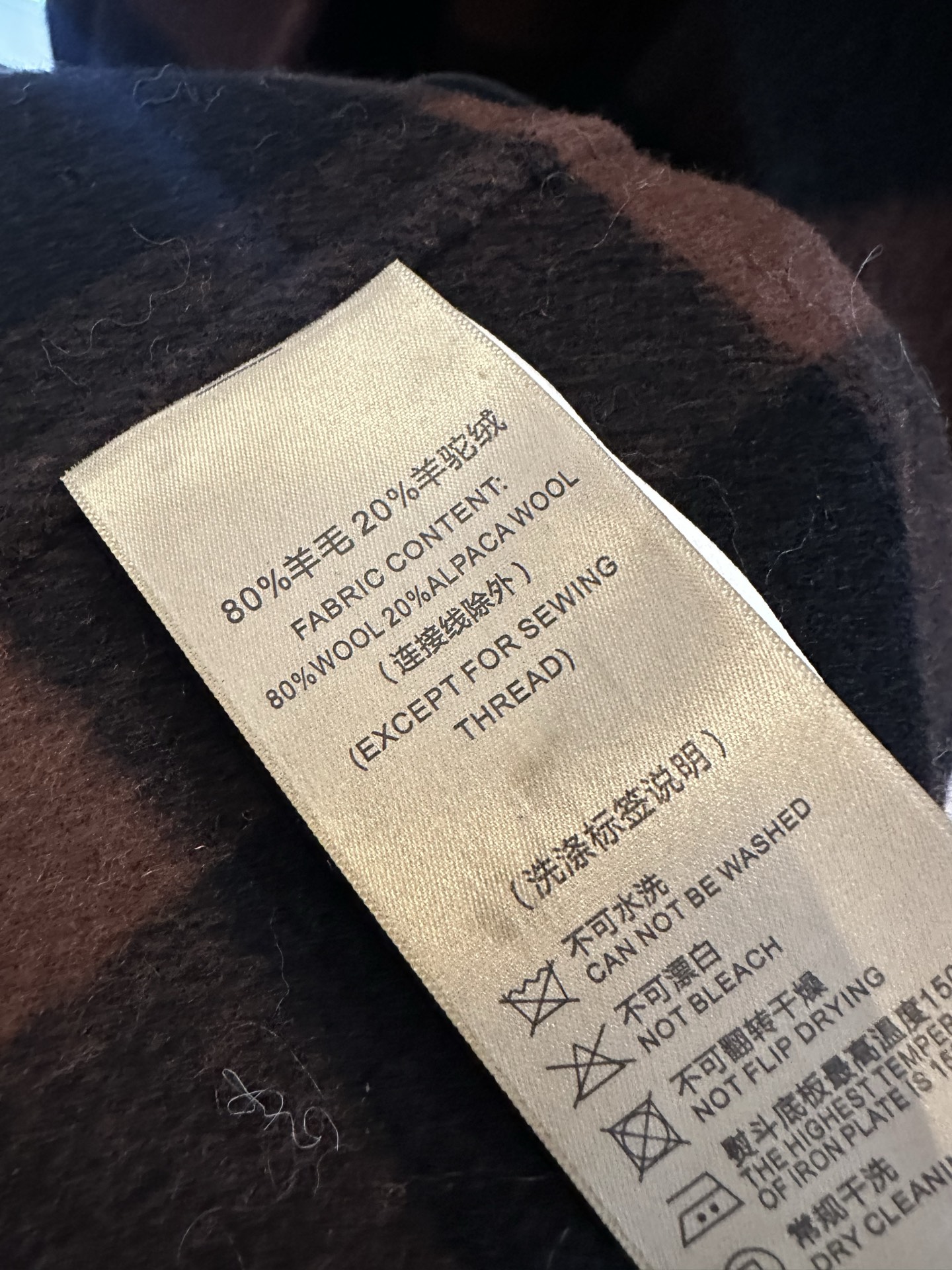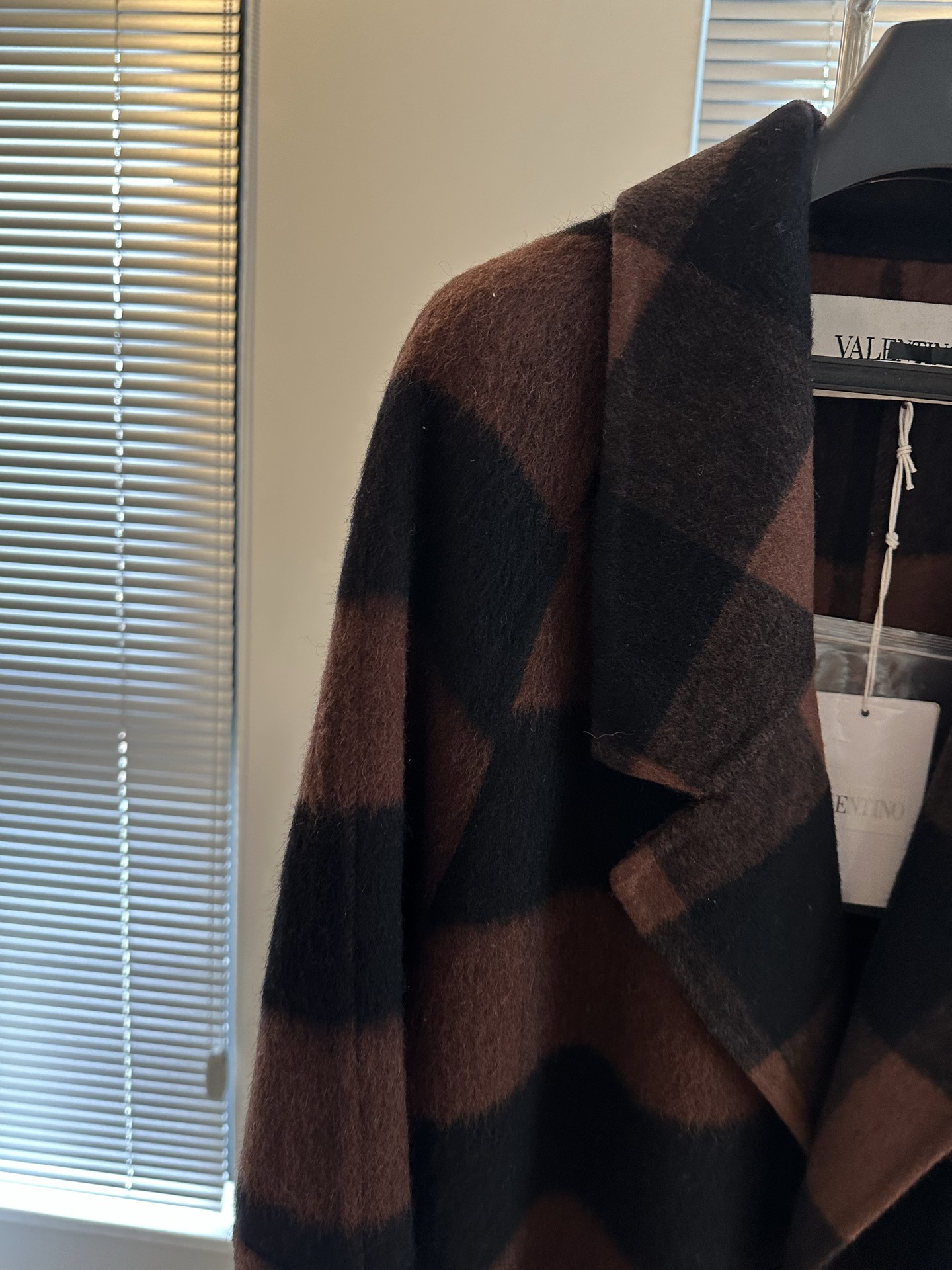 Details: Premium alpaca wool coat featuring a checkered pattern, lightweight and incredibly soft, representing high-end luxury.