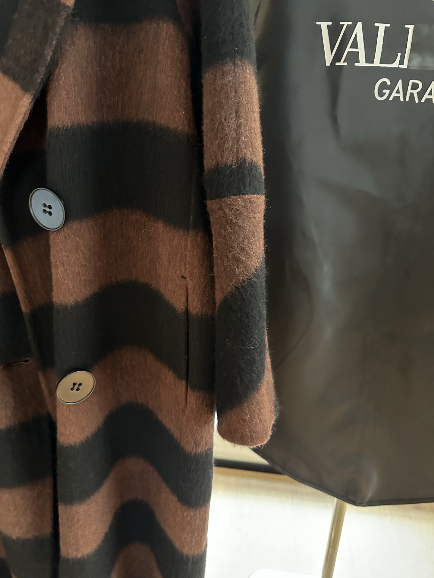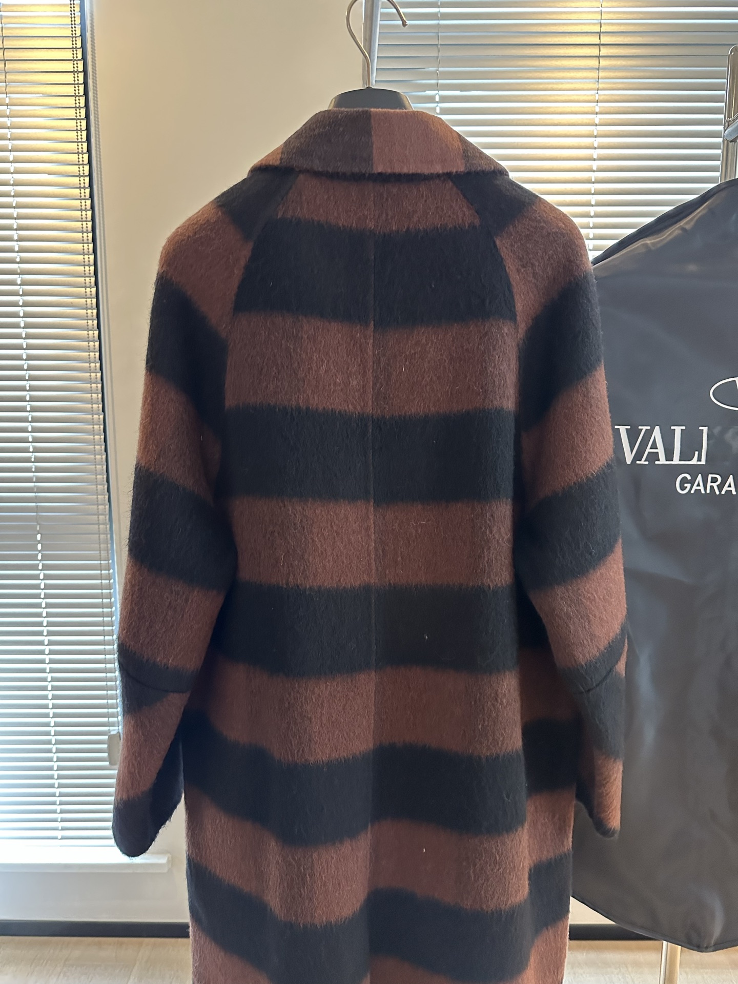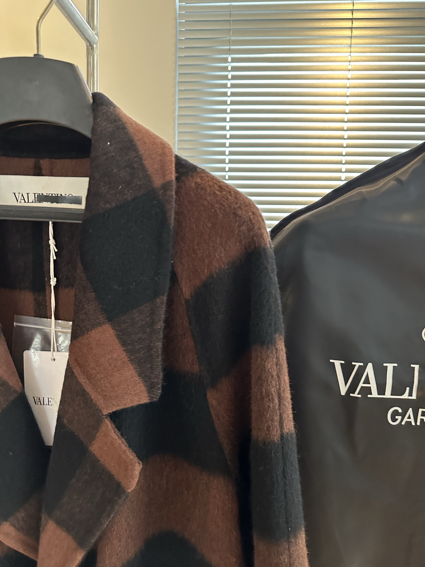 Details: Premium alpaca wool coat featuring a checkered pattern, lightweight and incredibly soft, representing high-end luxury.