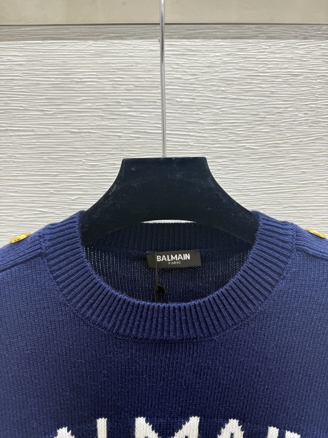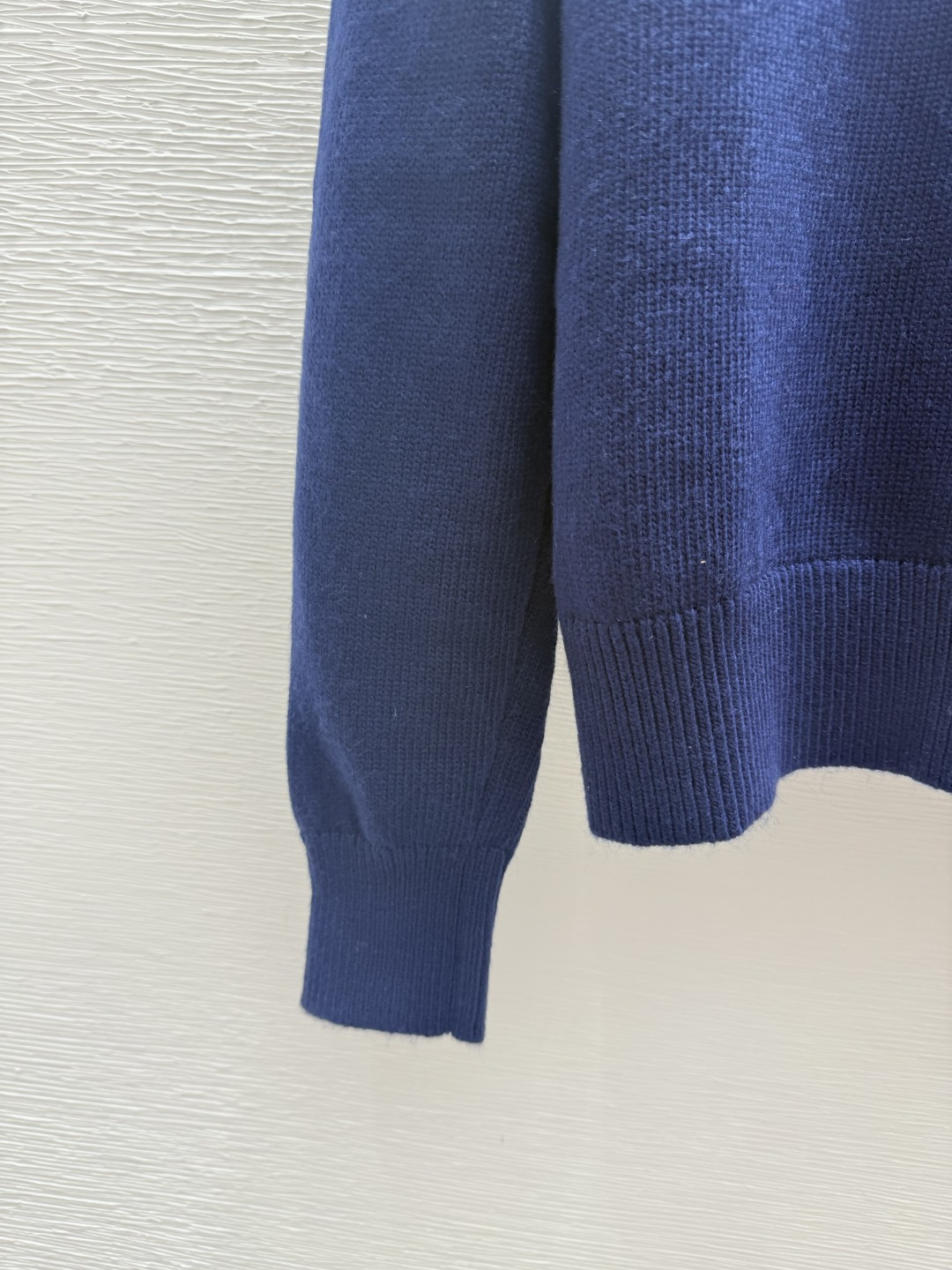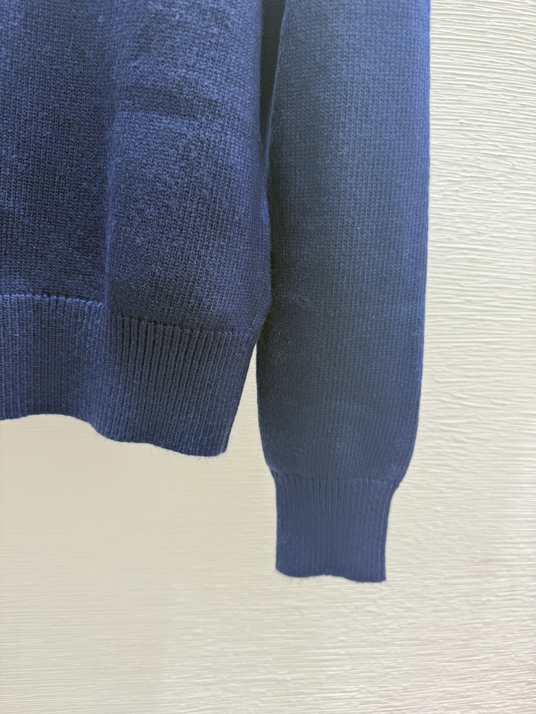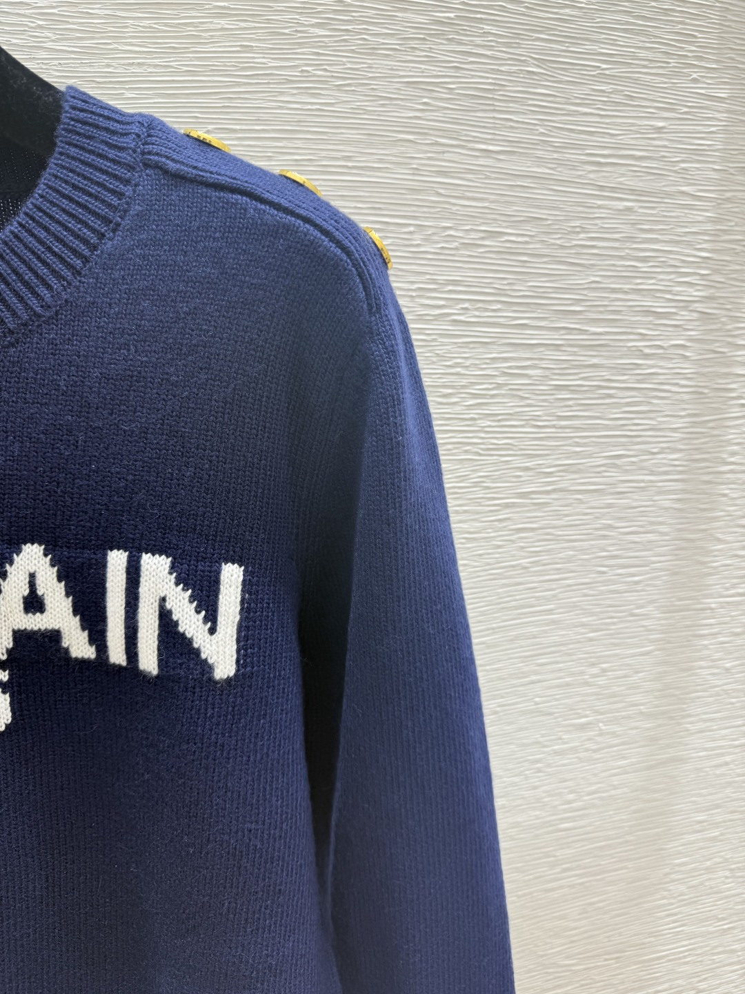 Details: Early autumn solid-color letter jacquard round-neck knitted long-sleeved top in royal blue.