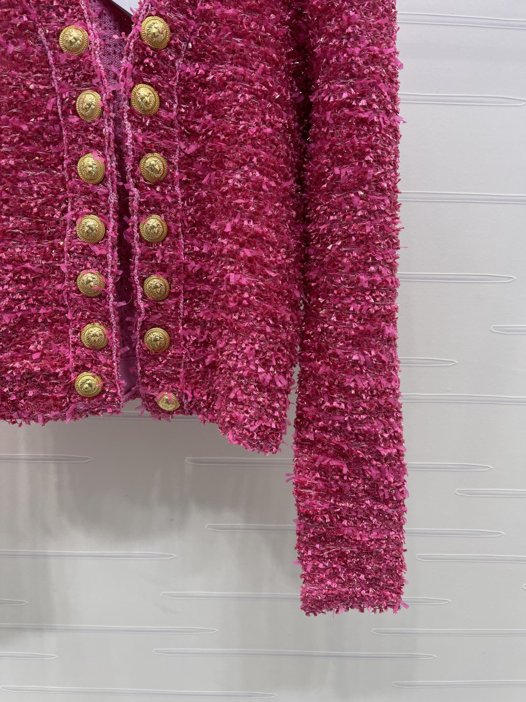 Details: New arrivals! Rose bouclé jacket with gold buttons, stylish for daily and special occasions. High-end custom, fine workmanship