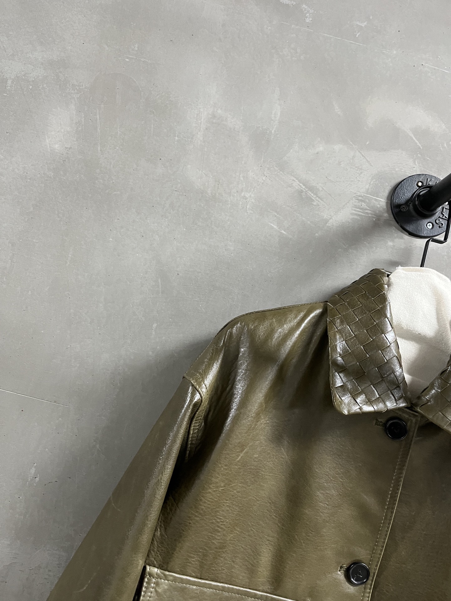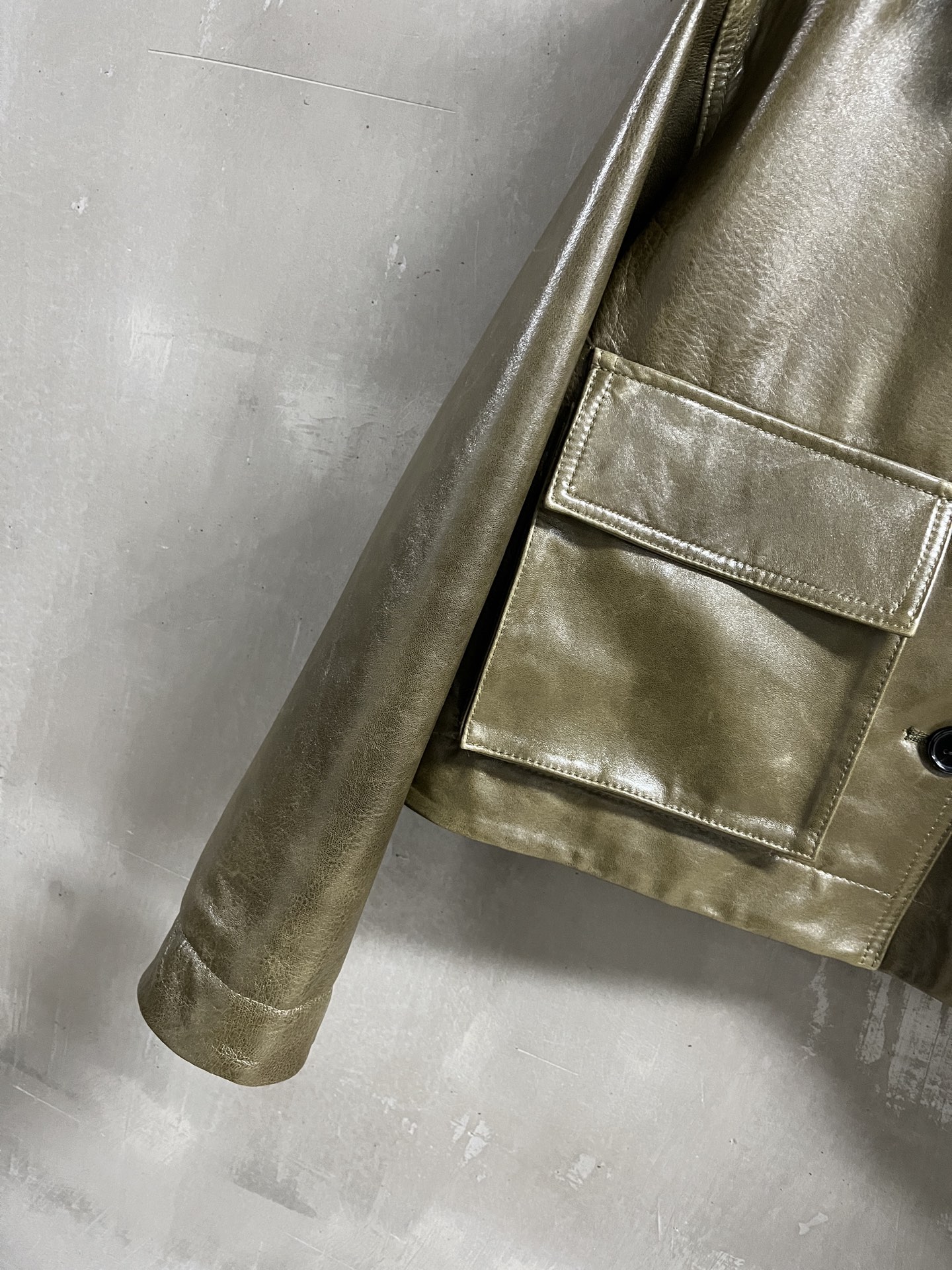 Details: Spring Vintage Denim Barn-Style Coat, Imported Goat Oil Wax Leather, Versatile and High-End Custom Fit, Fine Workmanship, Original Quality