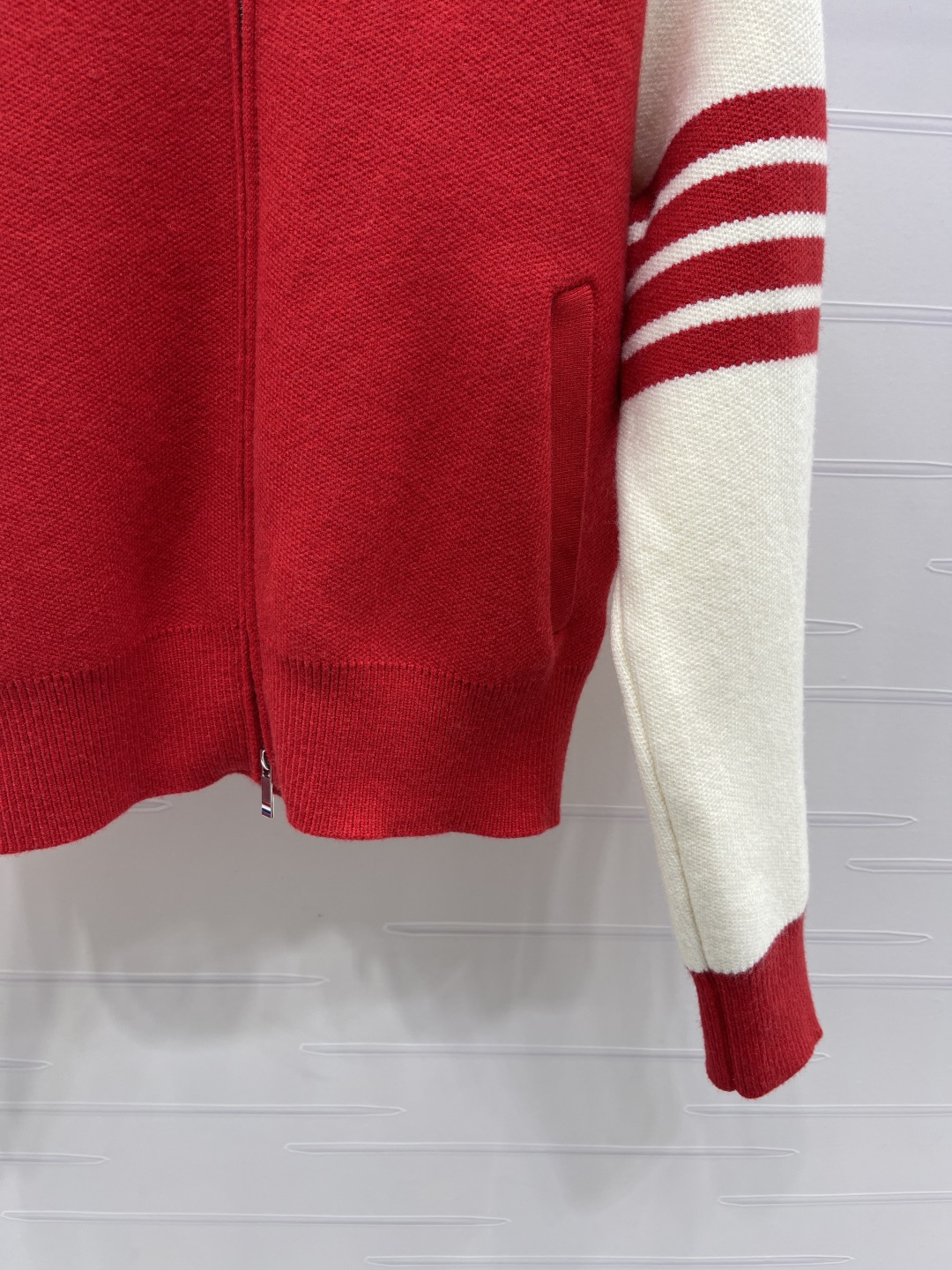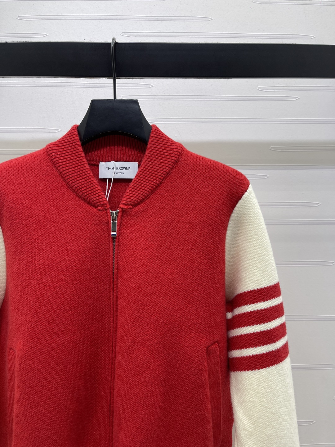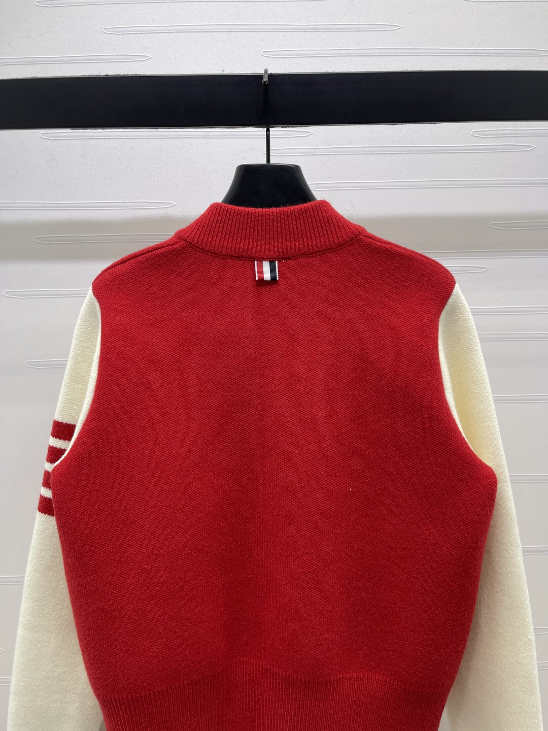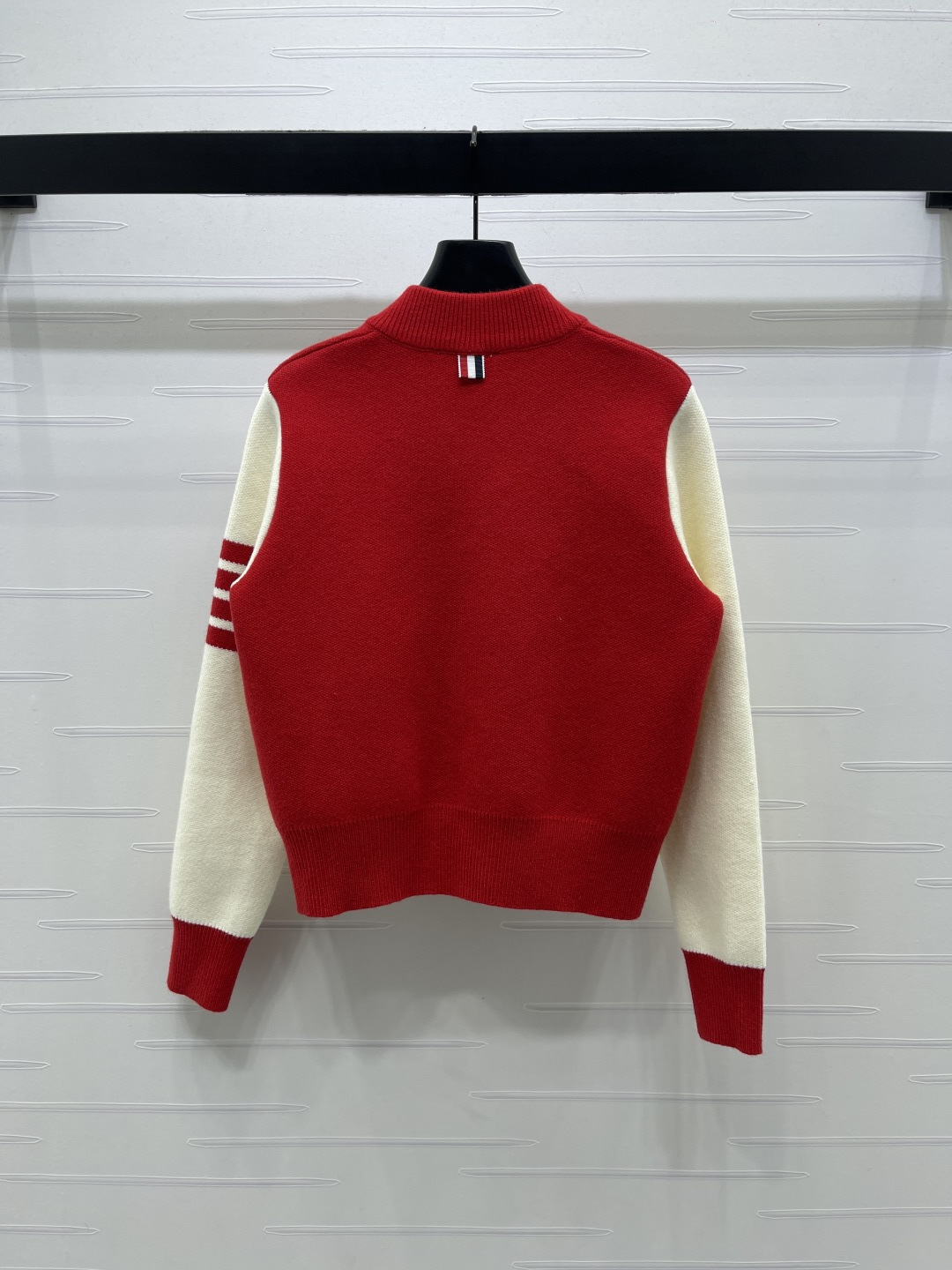 Details: Early Spring New Series, Baseball-style Knit Cardigan with Color-block Stripes, Casual yet Elegant, High-quality Fabric.