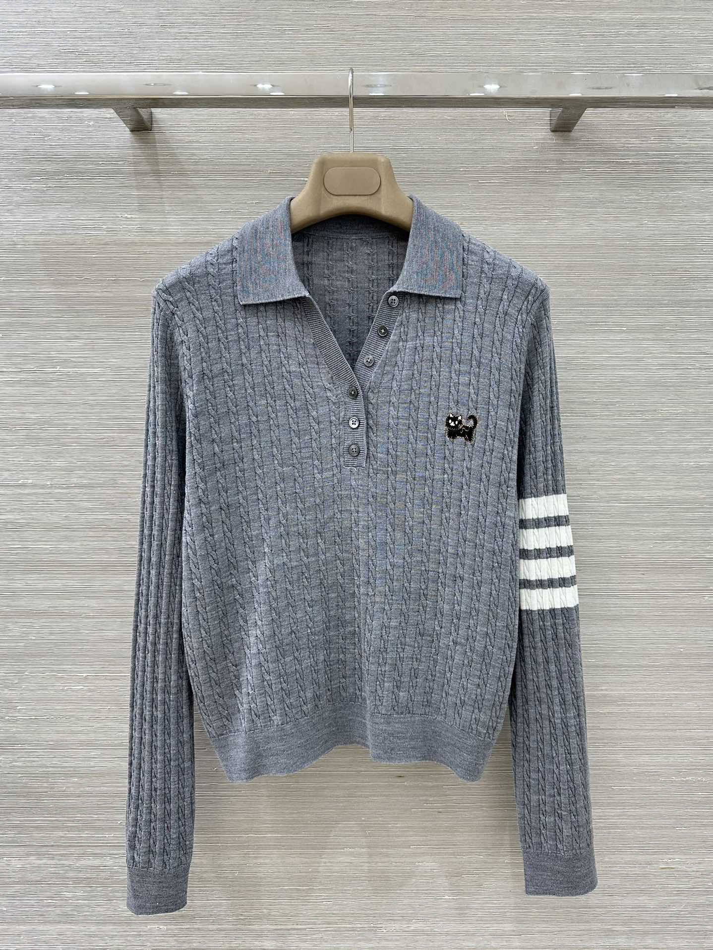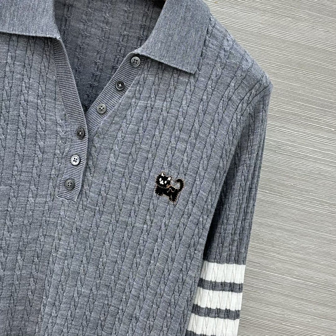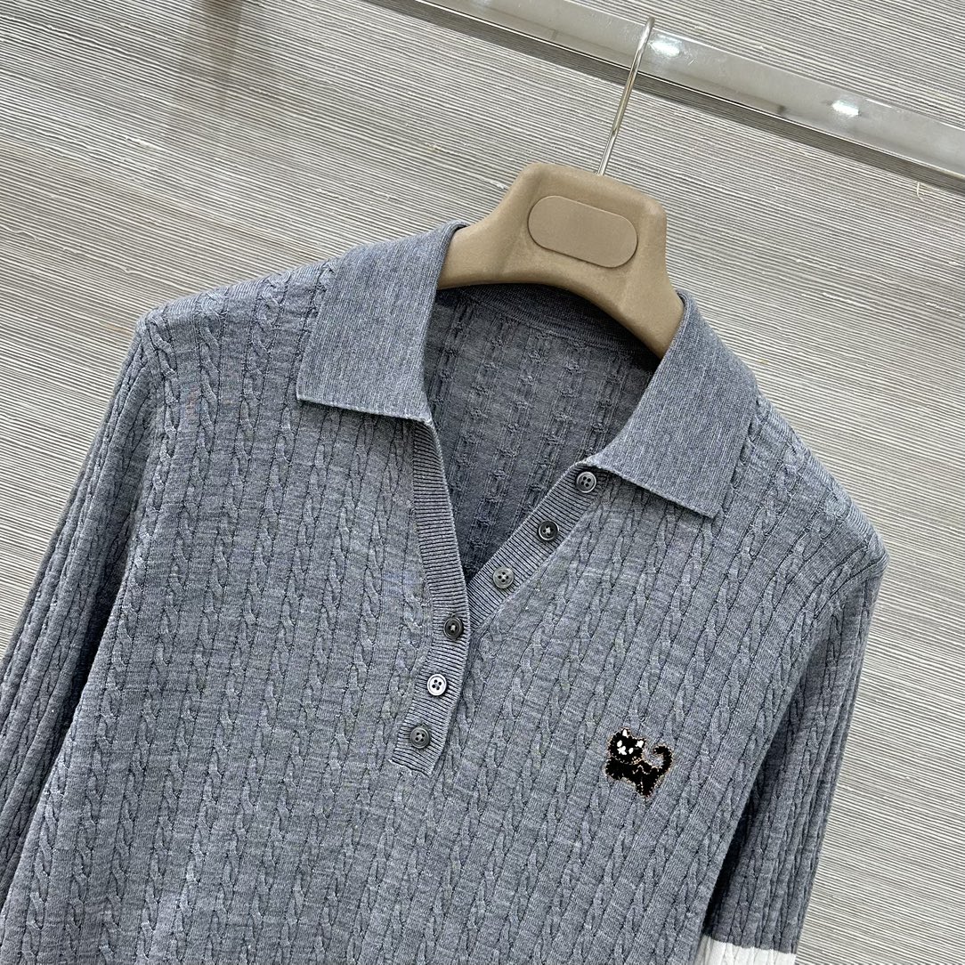 Details: Exclusive early spring silk - wool polo top with cute embroidery, comfortable and slimming, high - end custom, fine workmanship