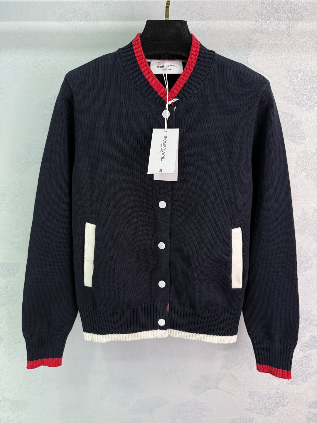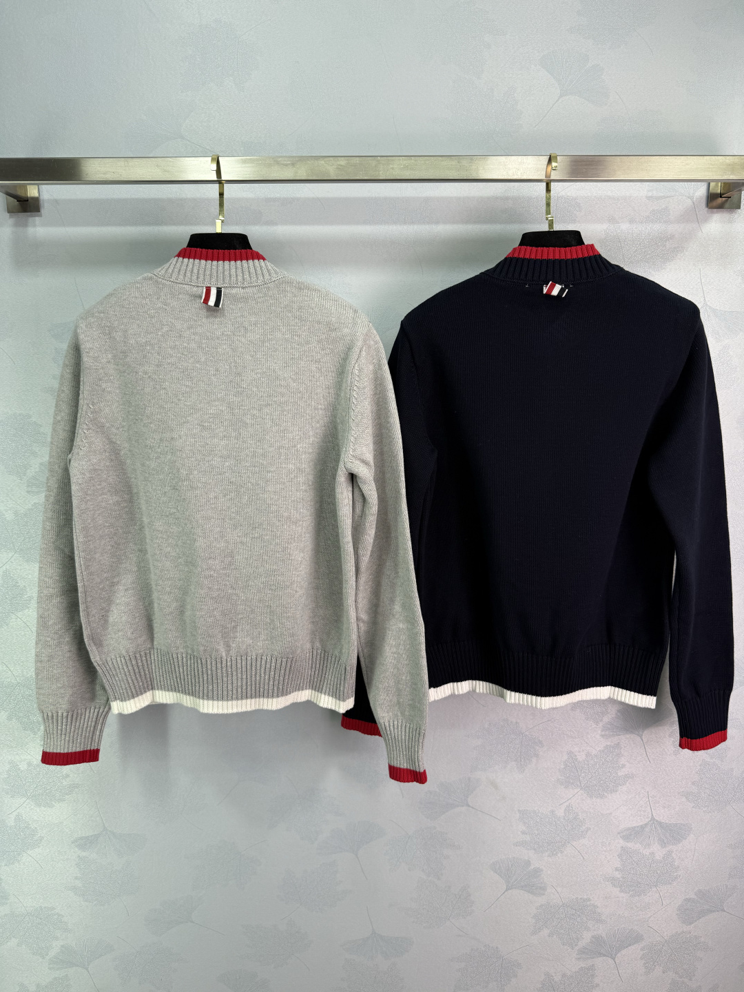 Details: Early autumn knitted top with color-blocked collar and classic three-bar stripes, very versatile, advanced customization, fine workmanship