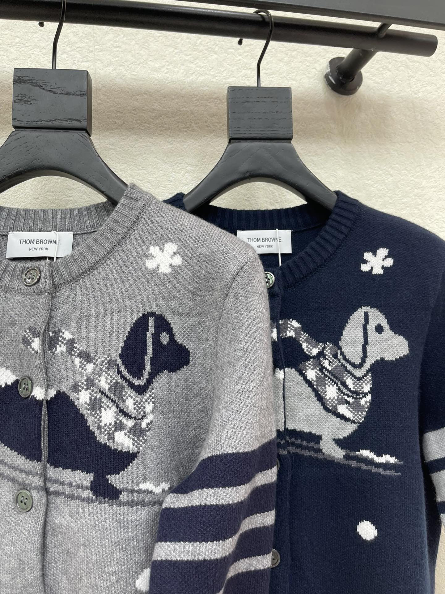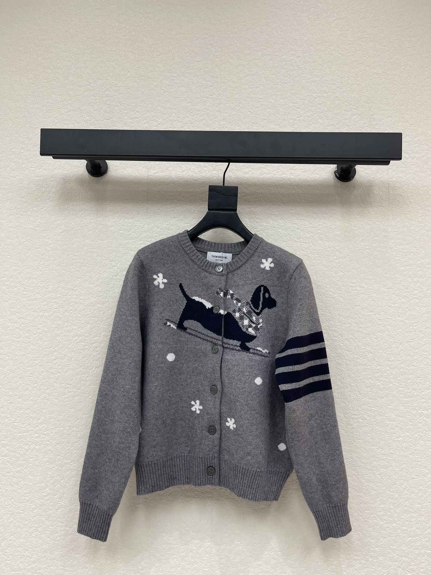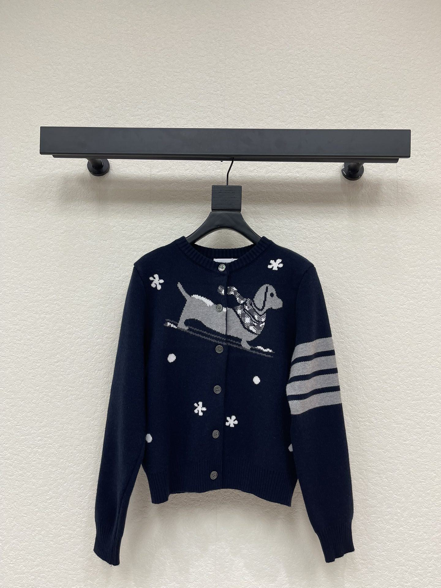 Details: Fall/Winter knit cardigan with puppy pattern, soft and in a retro school style. Customized with high-end workmanship.
