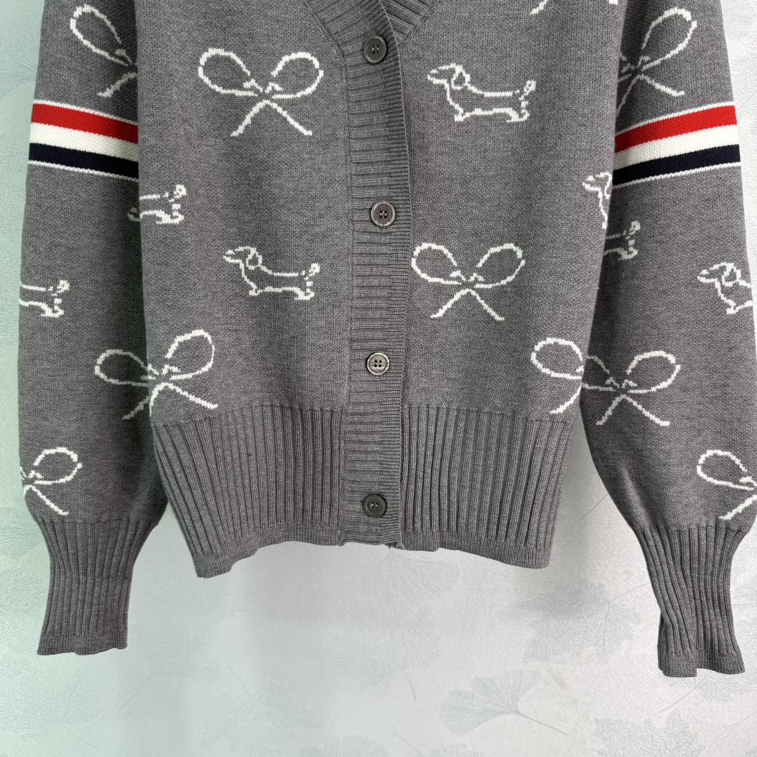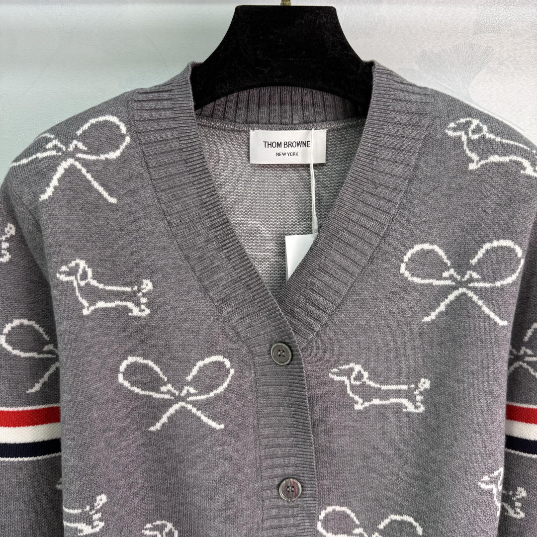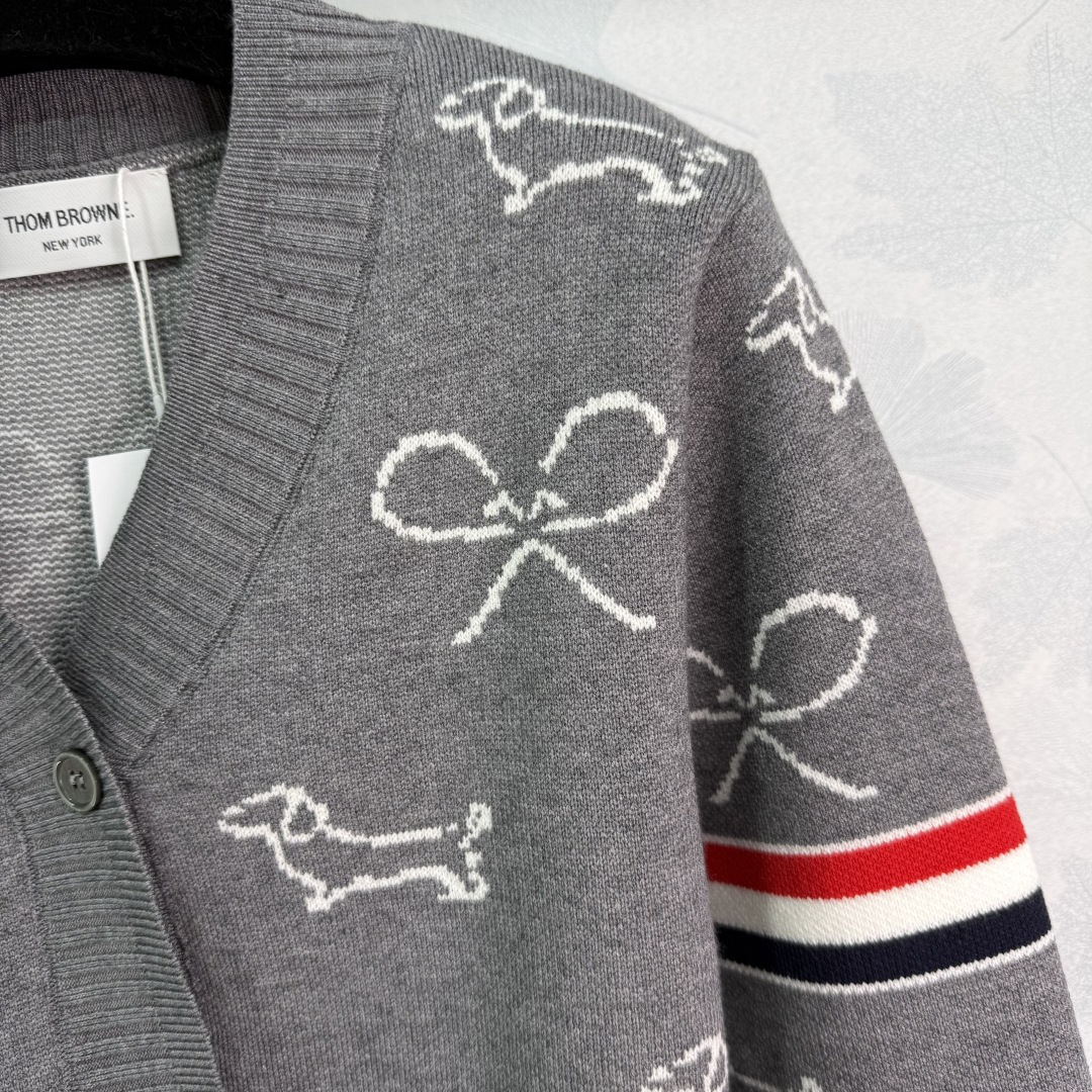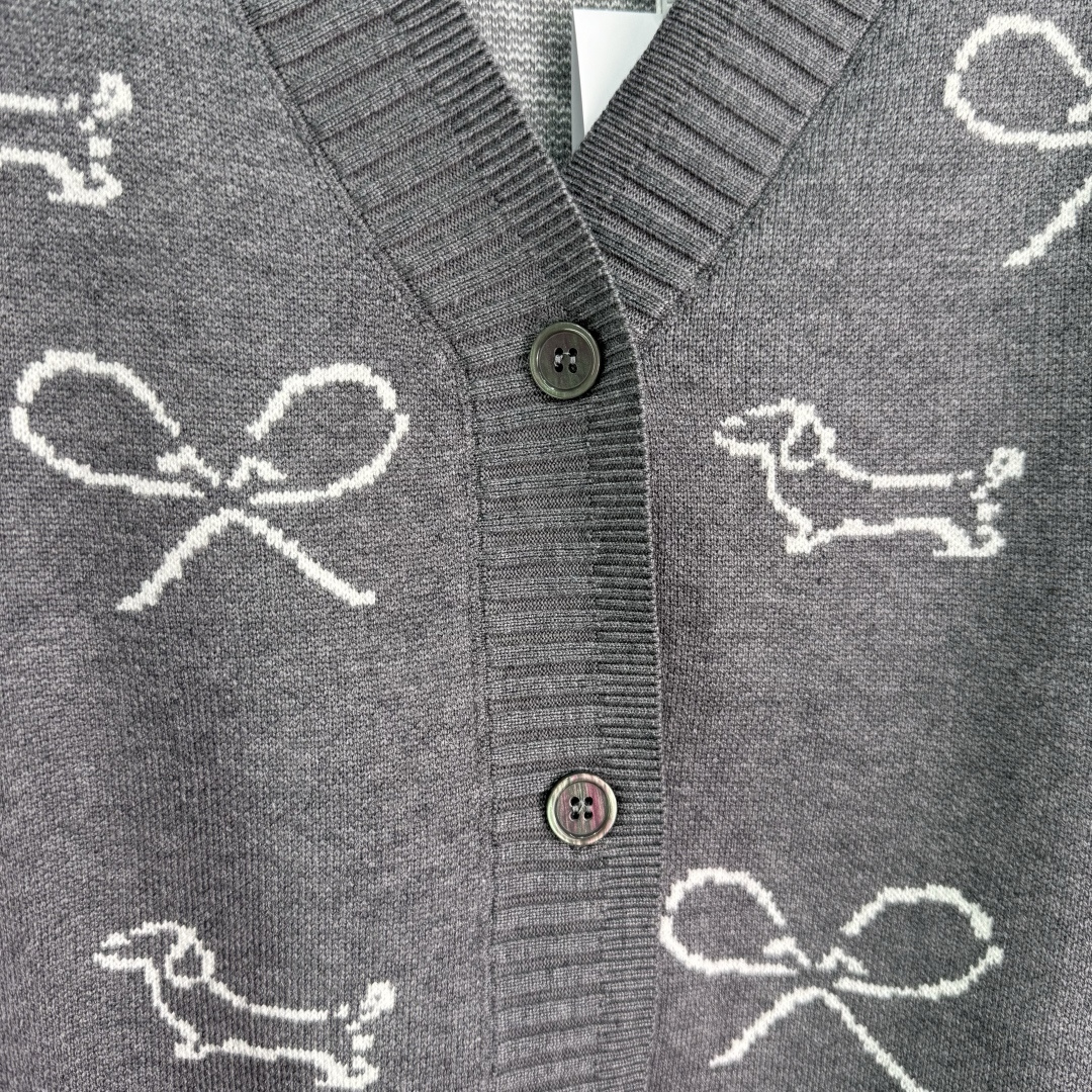 Details: Early autumn dog embroidery cardigan with red and white striped sleeves, featuring exquisite embroidery, made of high-quality wool blend, soft and comfortable.