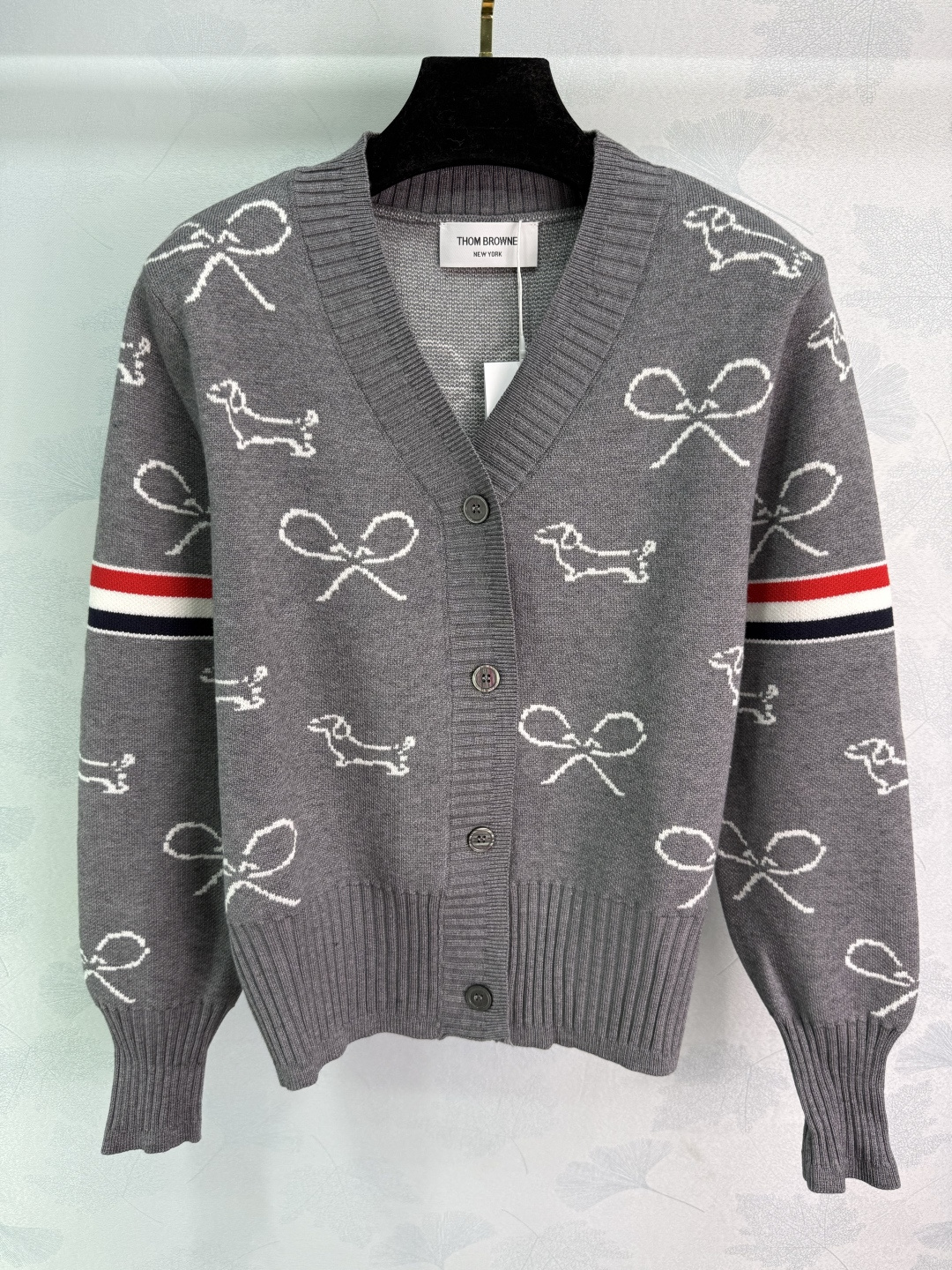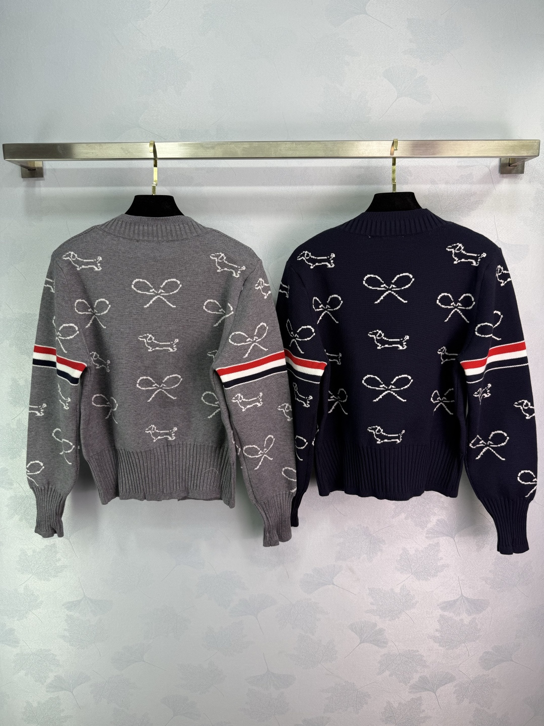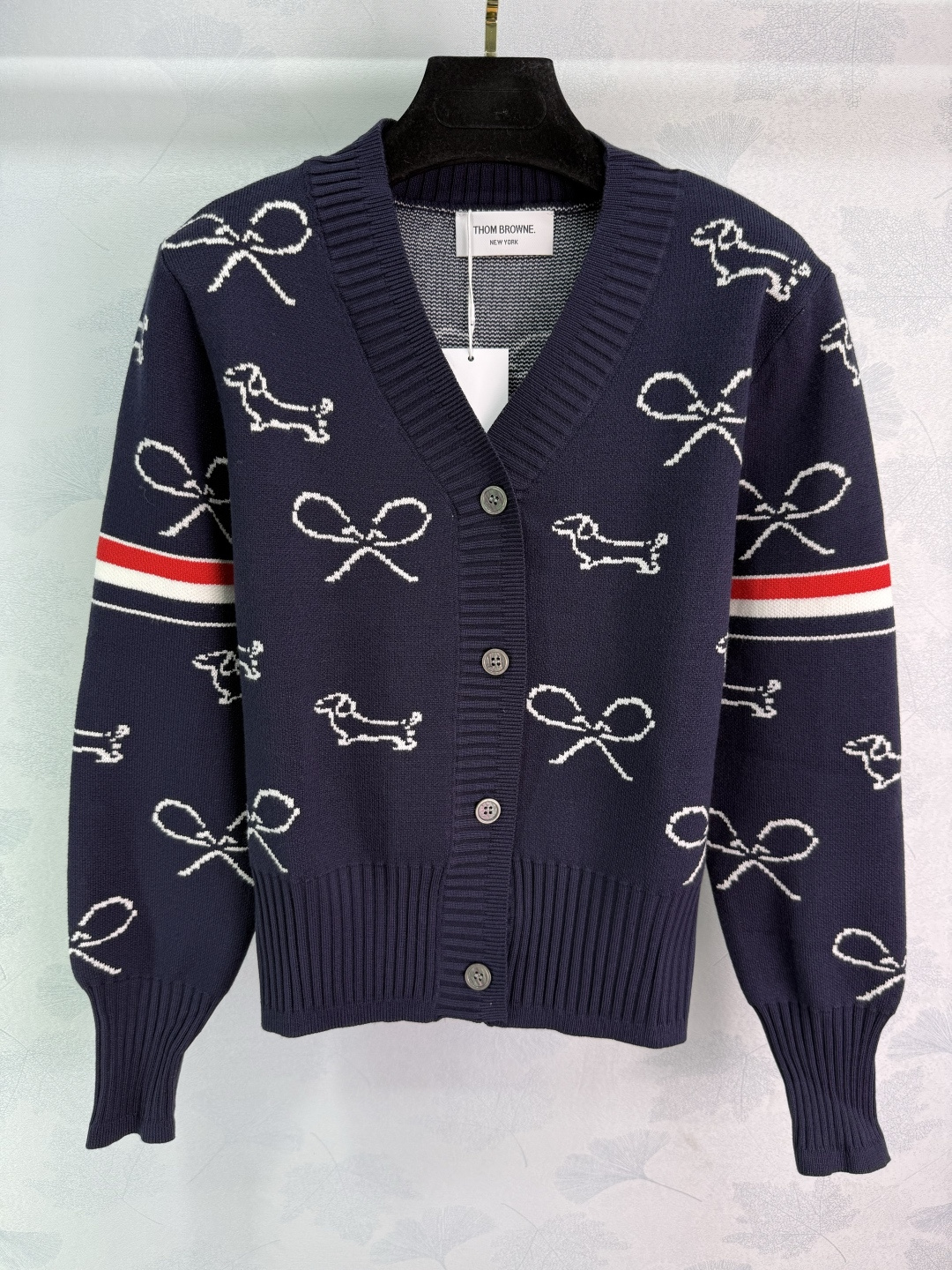 Details: Early autumn dog embroidery cardigan with red and white striped sleeves, featuring exquisite embroidery, made of high-quality wool blend, soft and comfortable.