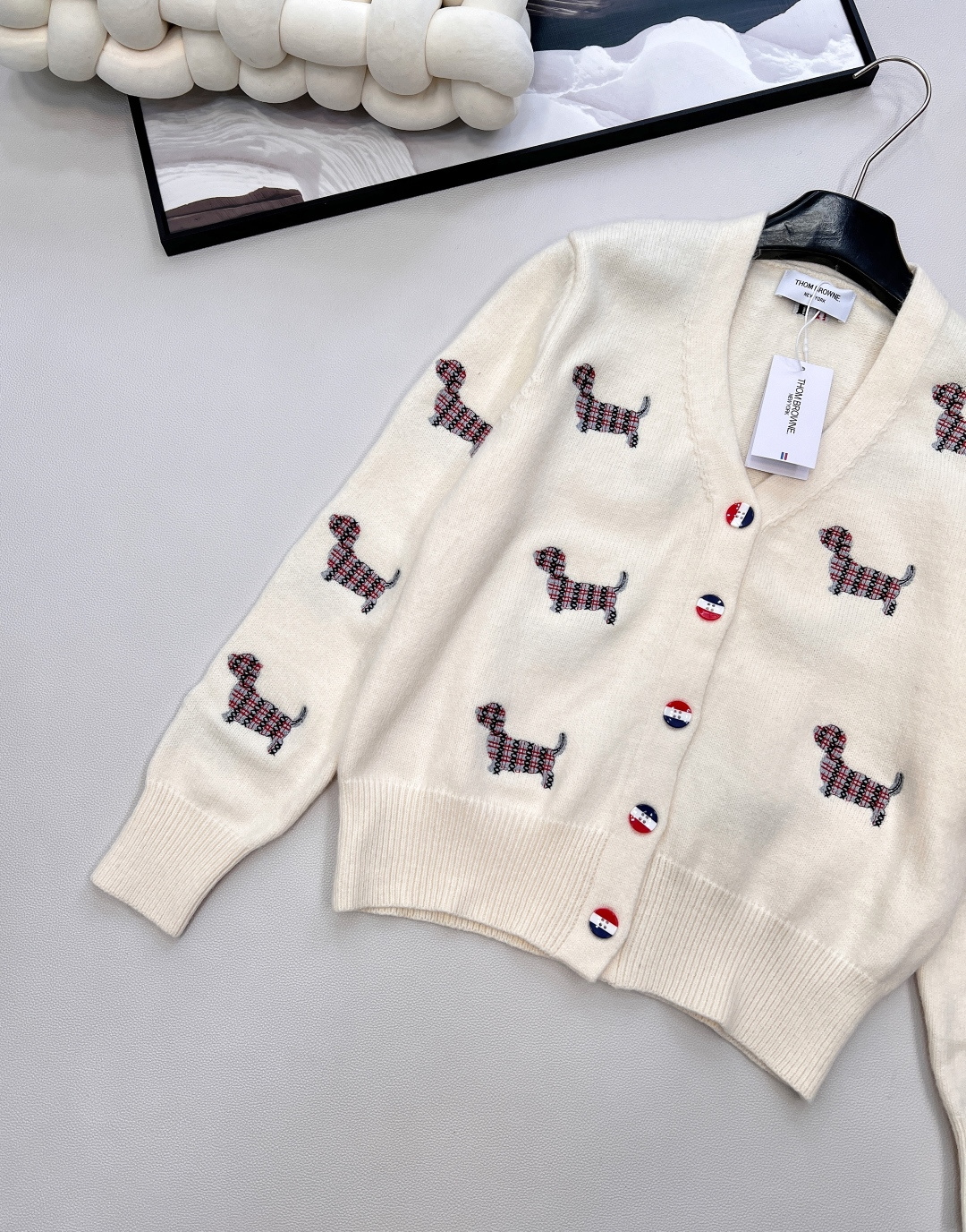 Details: Retro puppy-embroidered cardigan with college style, warm and elegant.