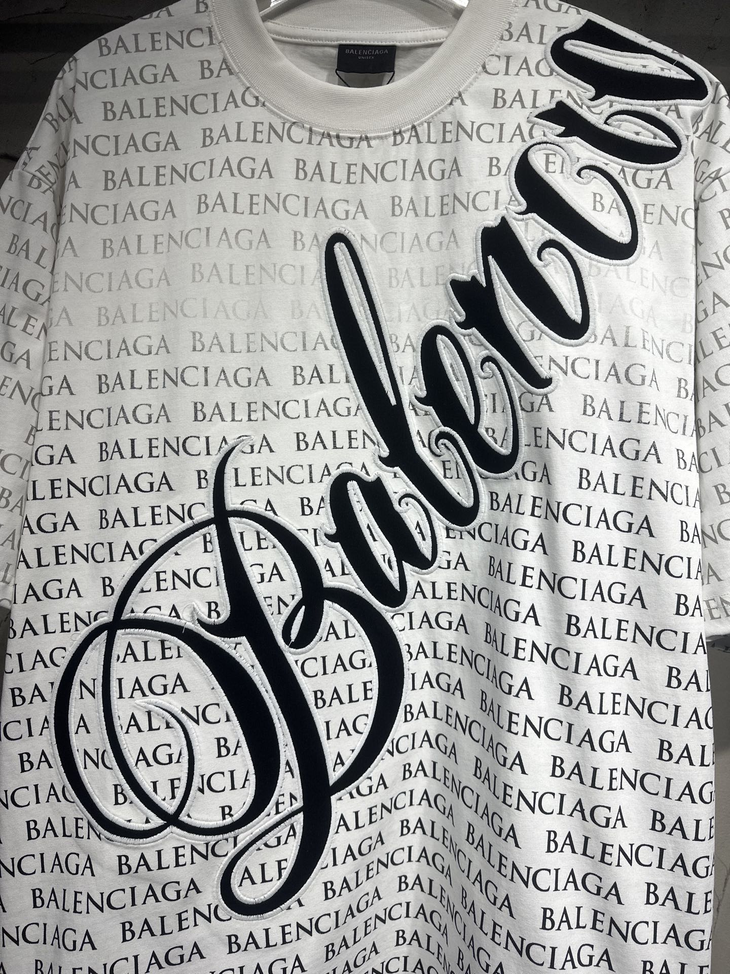 Details: Early spring short-sleeved T-shirt in black and white, cotton fabric, gradient print, unisex, loose fit, sizes 1-4