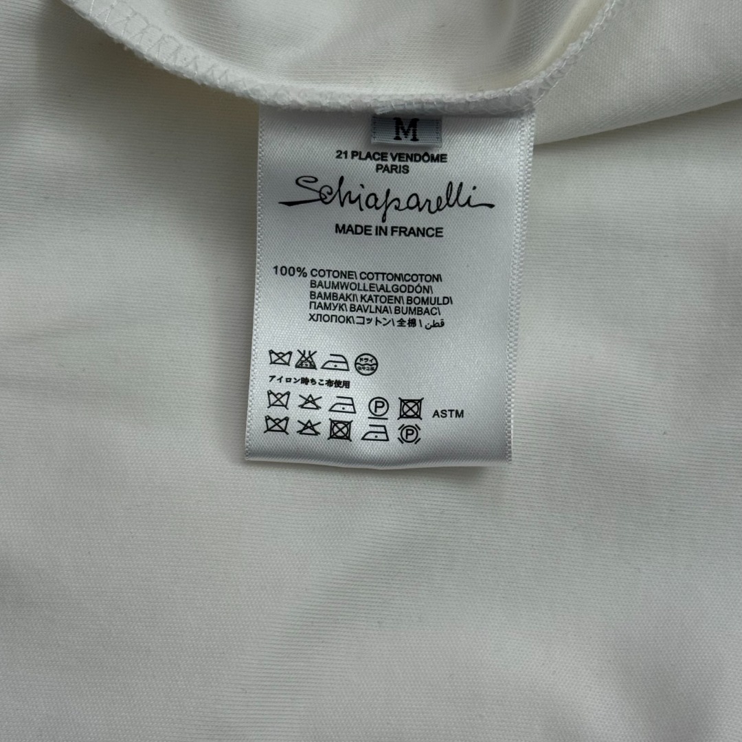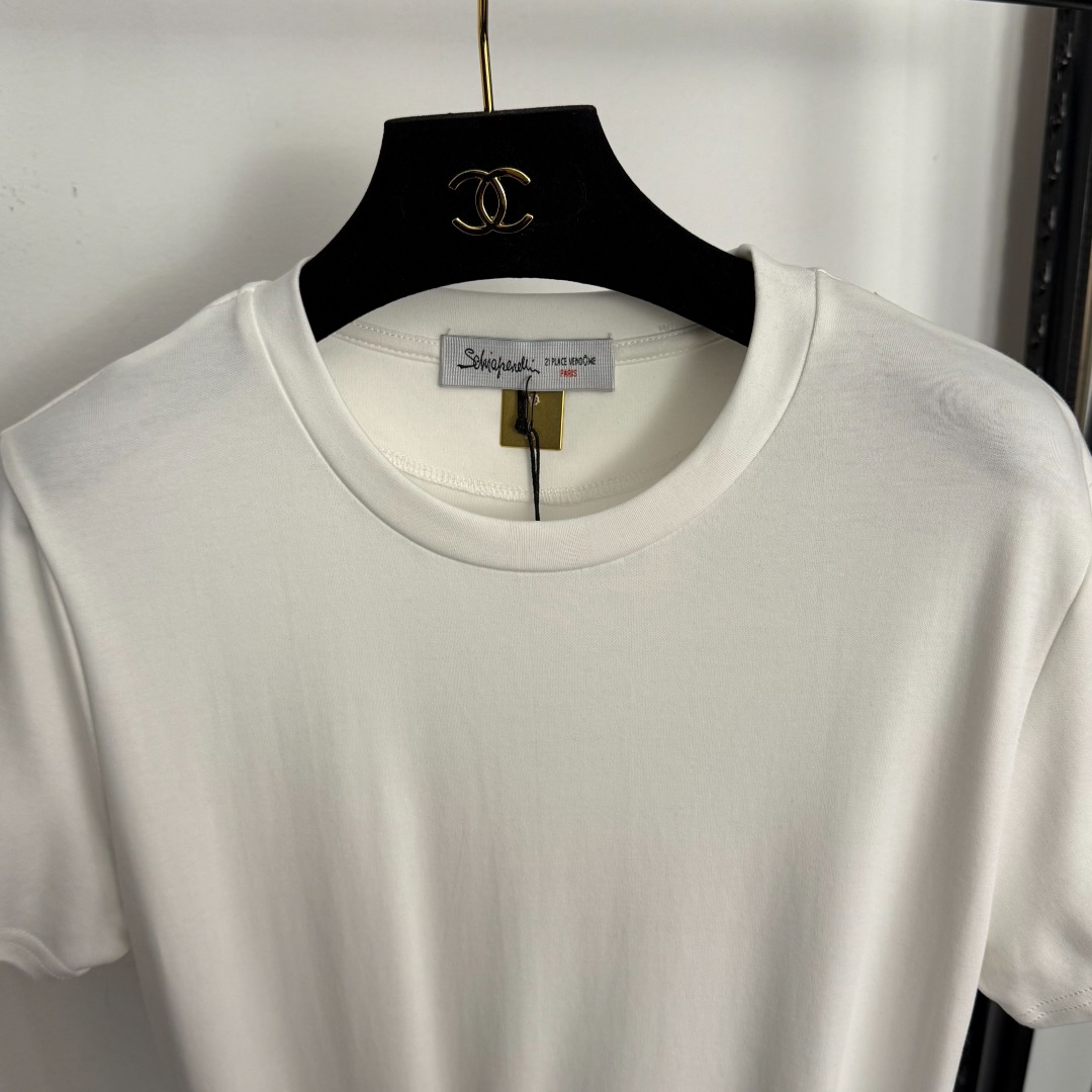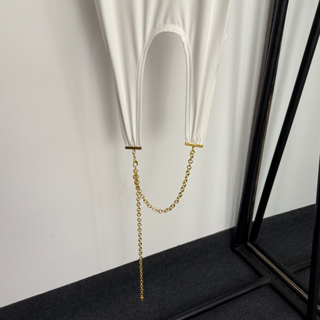 Details: New irregular short-sleeved T-shirt with hardware chain decoration in white, dark brown and black, available in sizes S, M, L