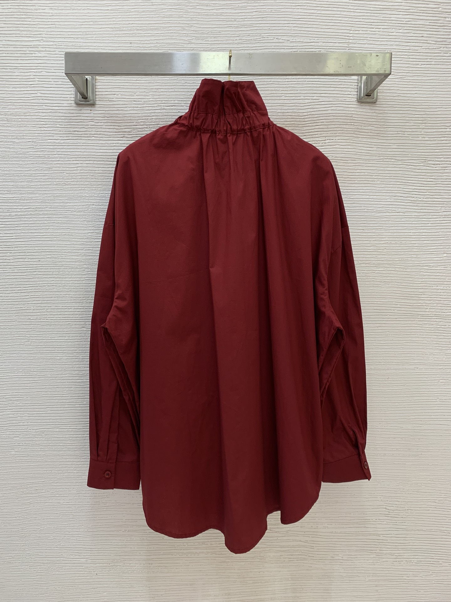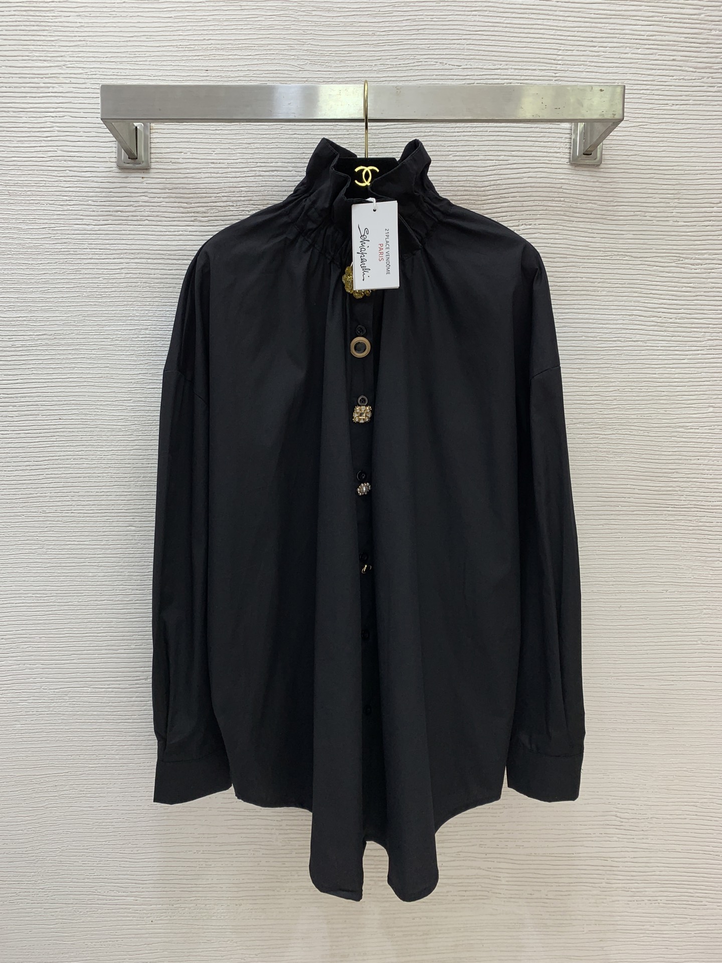 Details: New Floral-collar Cotton Long-sleeve Shirt with Gemstone Buckles, Available in Red, Black, or White, High-end Customization, Fine Workmanship