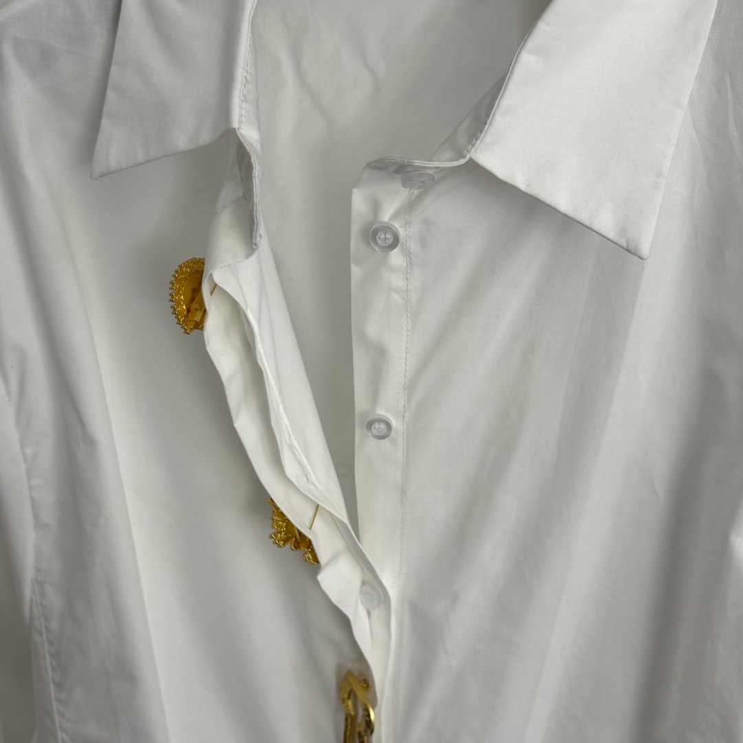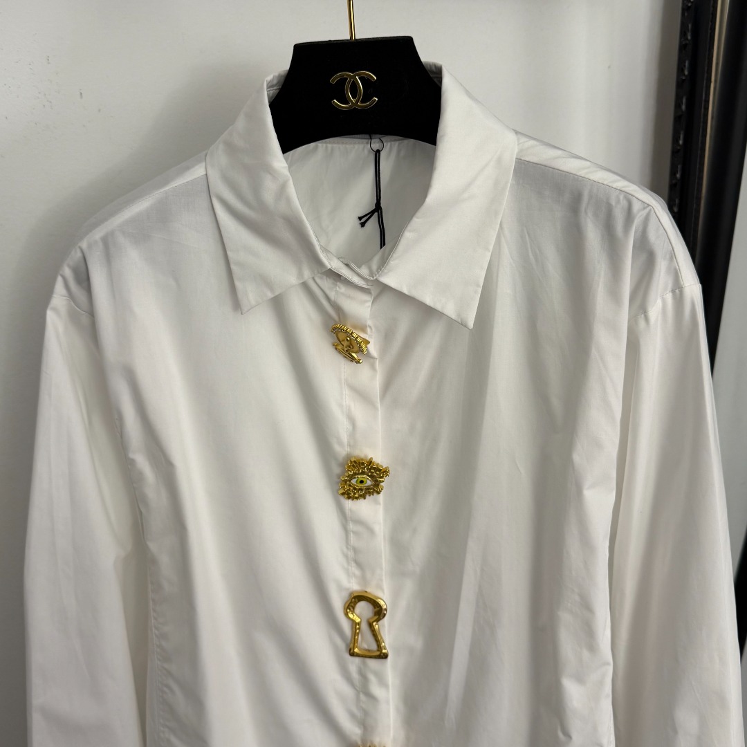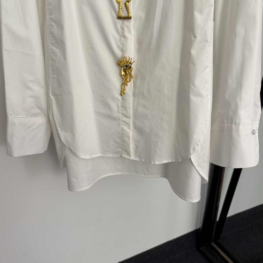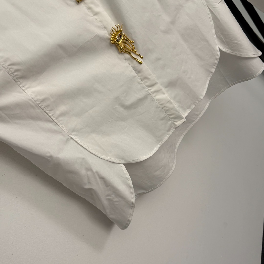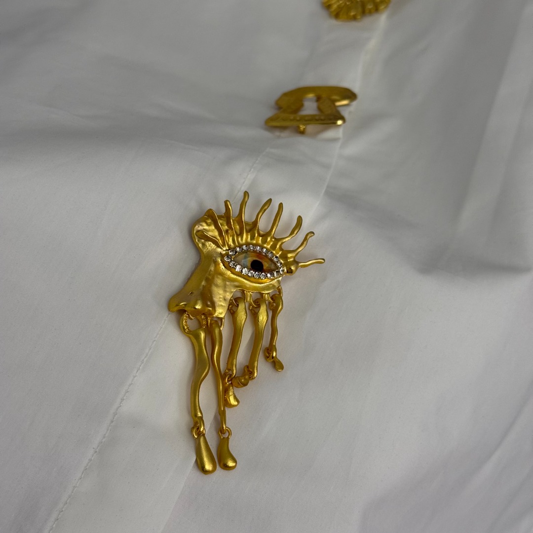 Details: New white, brown, black shirt with demon eye design, irregular metal pin, short front and long back, one size, high-end customization and exquisite craftsmanship