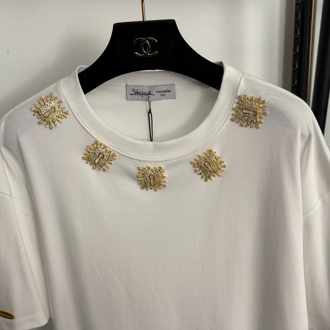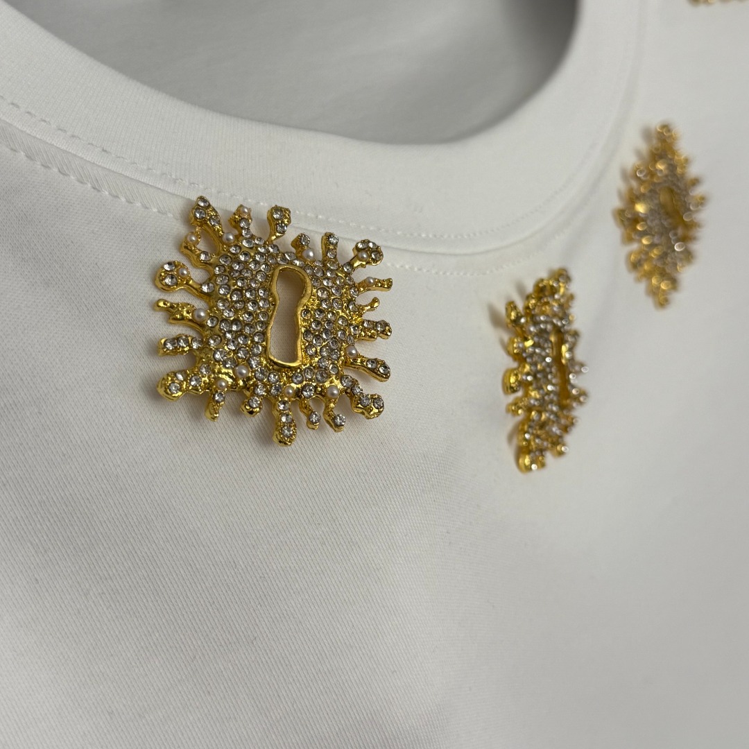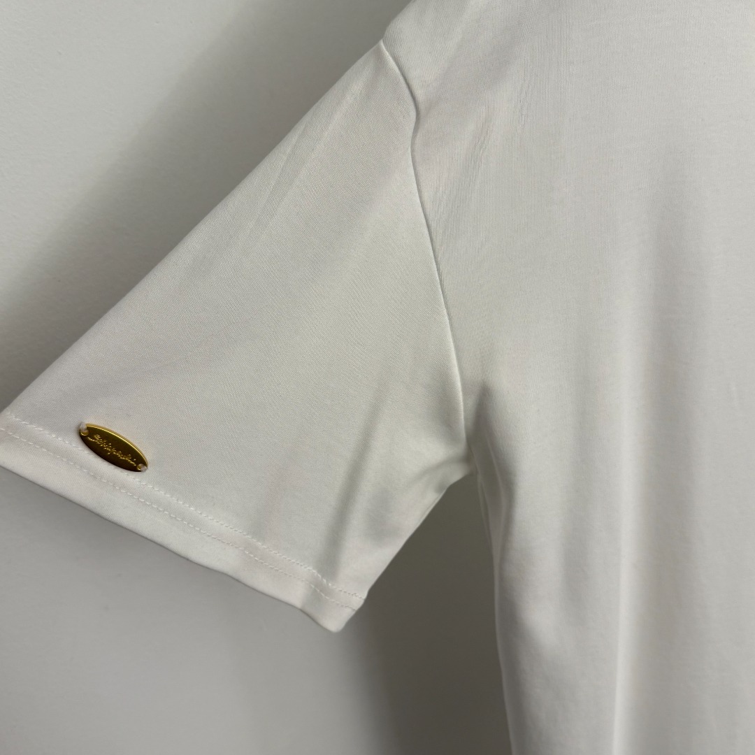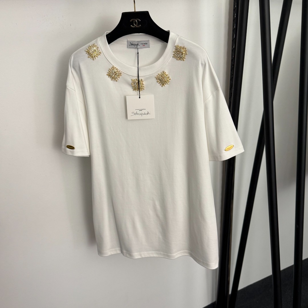 Details: New Pearl-encrusted Metal Button Casual Short Sleeve T-shirt, 3 Colors, One Size. High-end Custom, Fine Workmanship