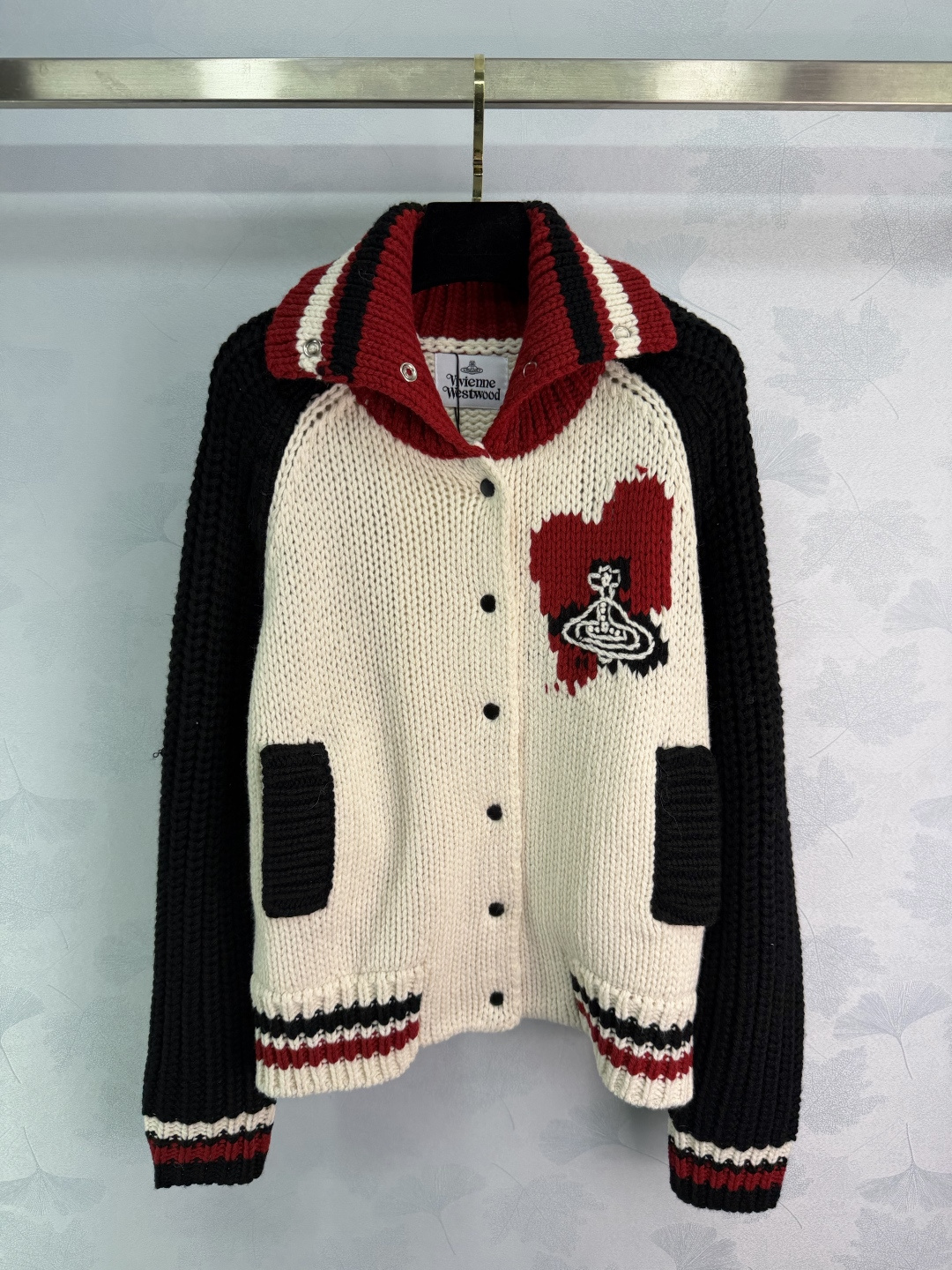 Details: Early Spring Red-label Knitted Jacket, Baseball Style, Unique Design, Great with Jeans or Skirts
