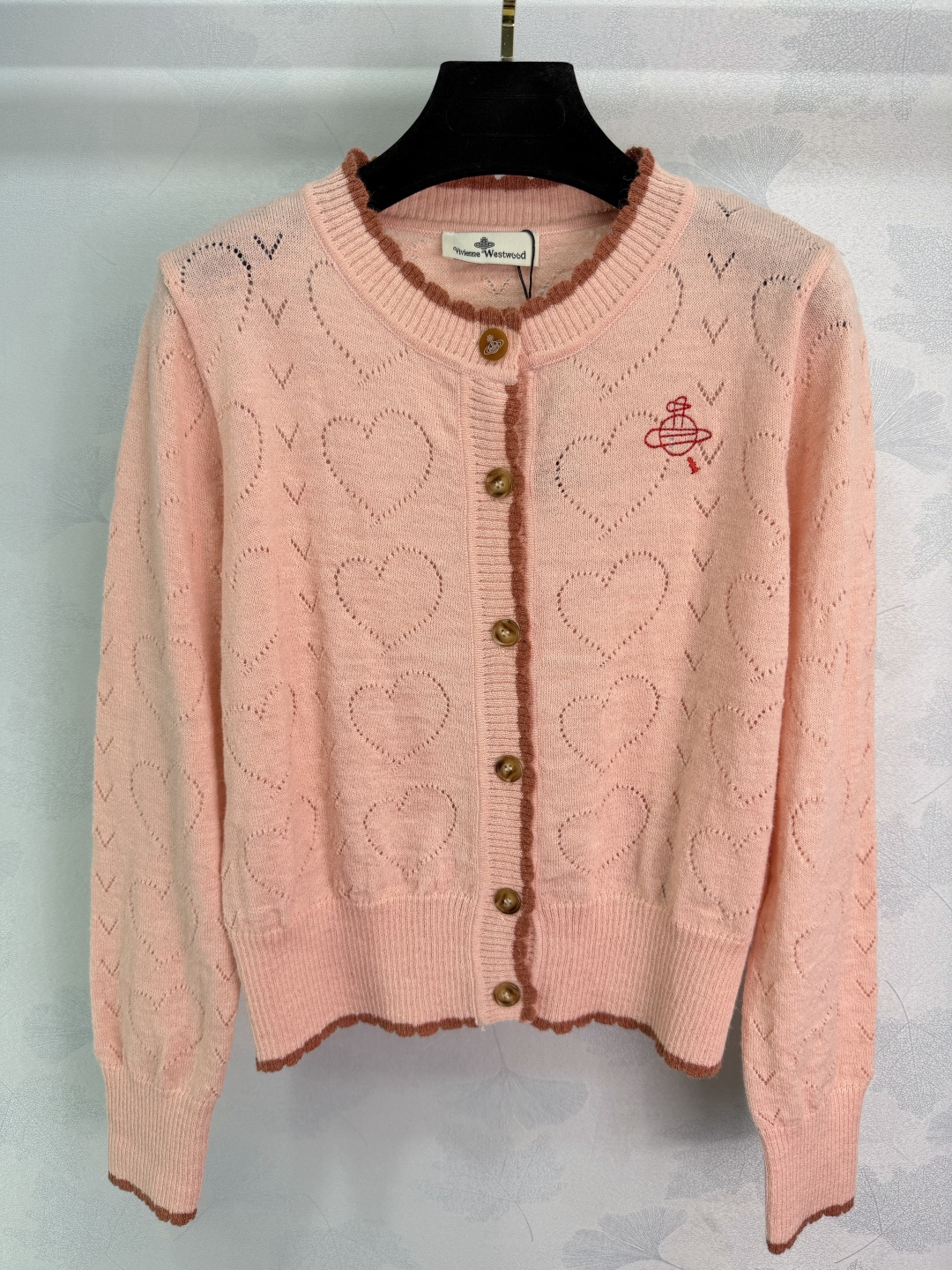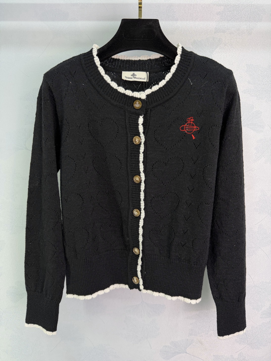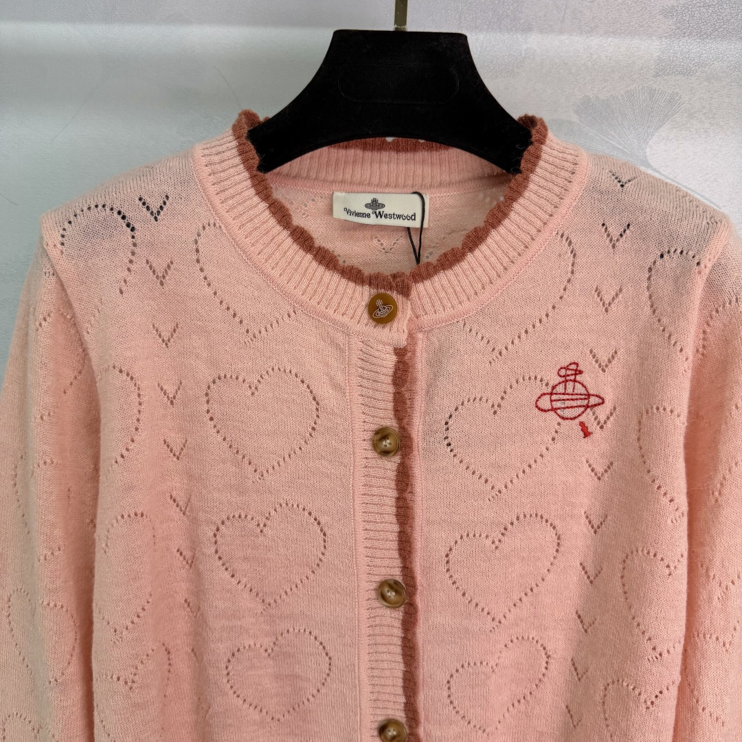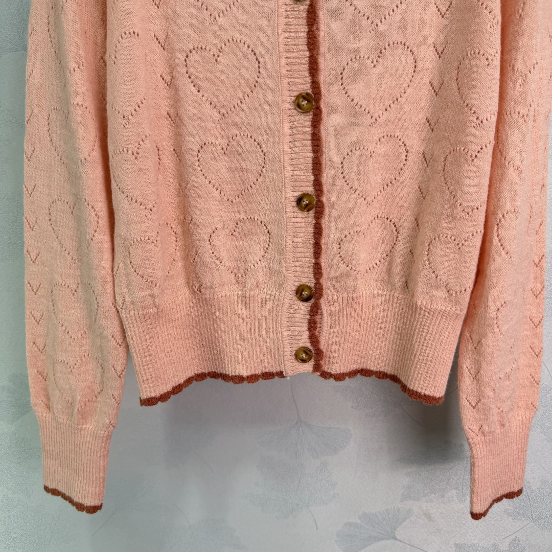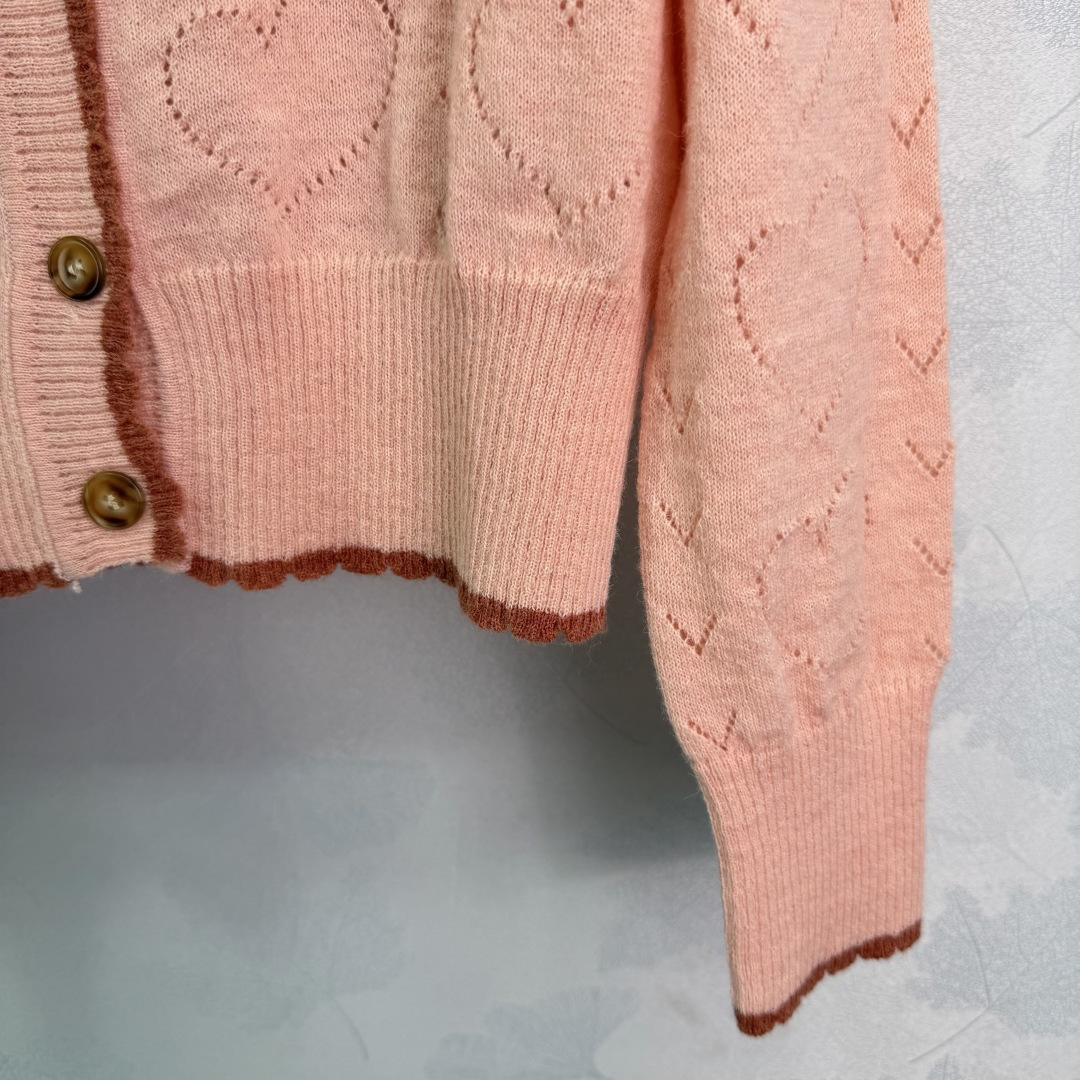 Details: Early Spring Heart-Textured Knit Cardigan with Red Embroidery, Sweet and Retro Style, Easy to Wear