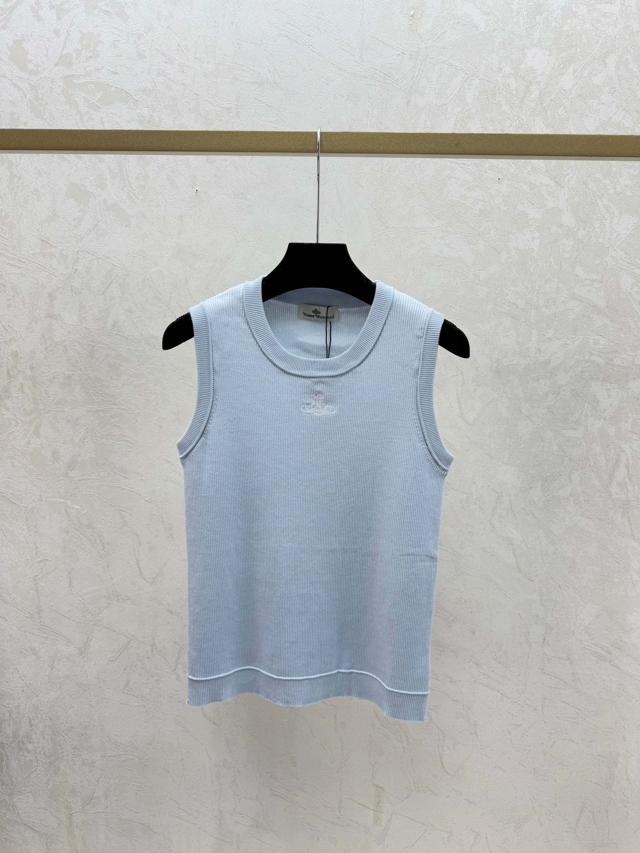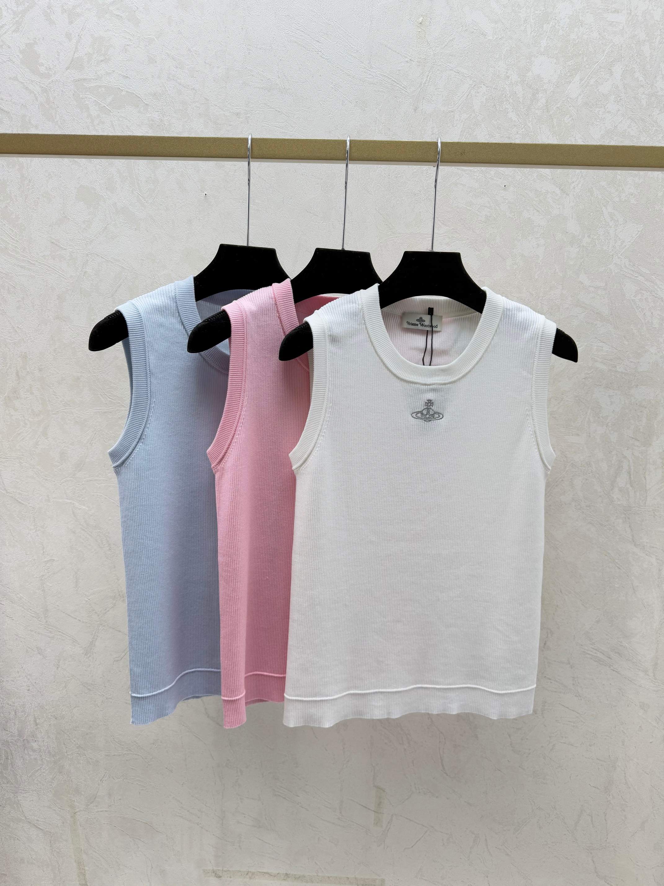 Details: Early spring solid-color round-neck knitted vest in white, pink, blue.