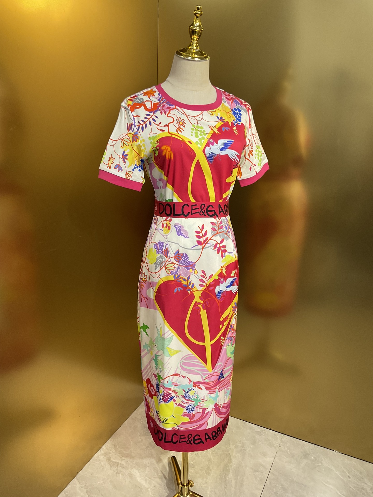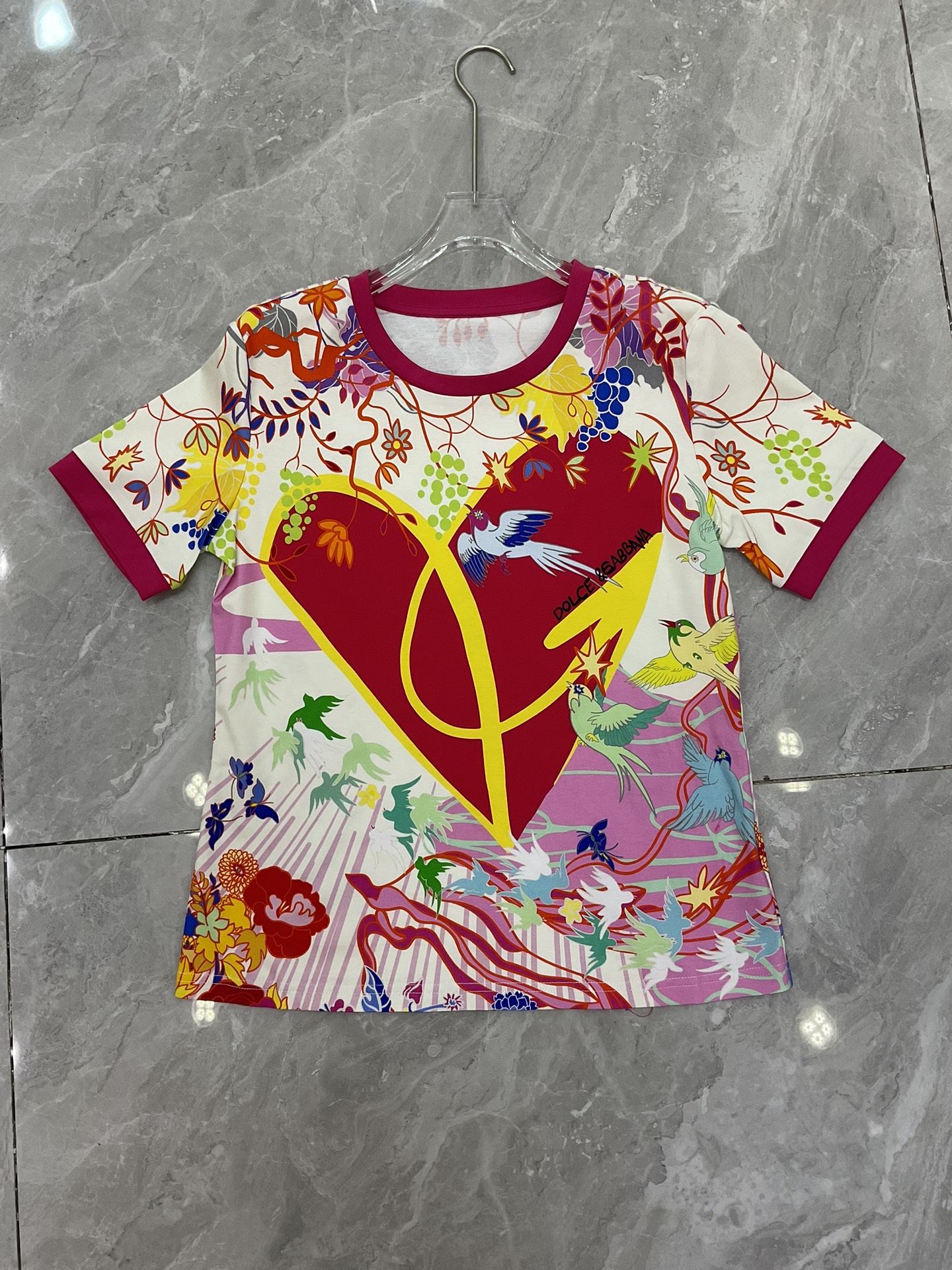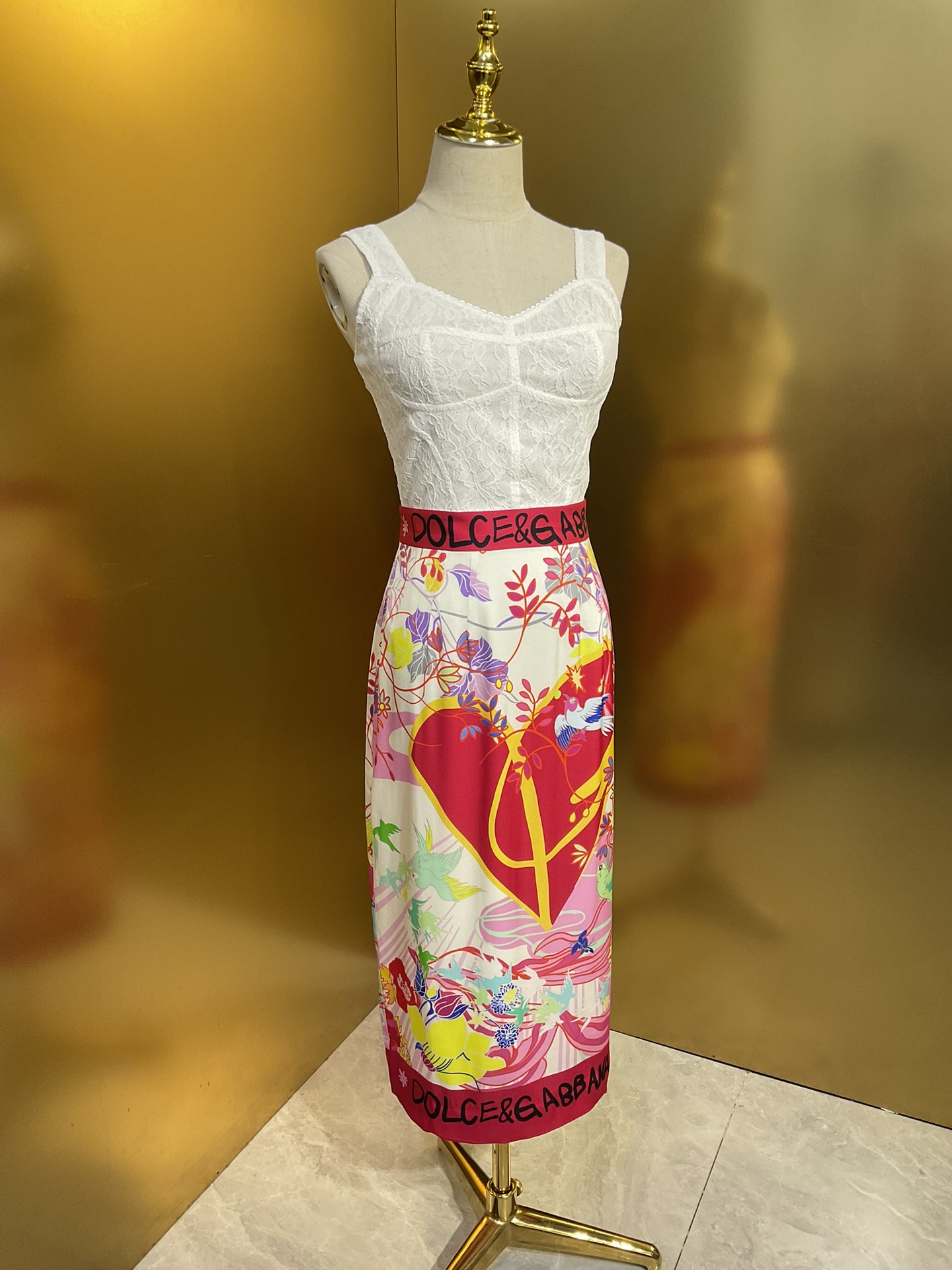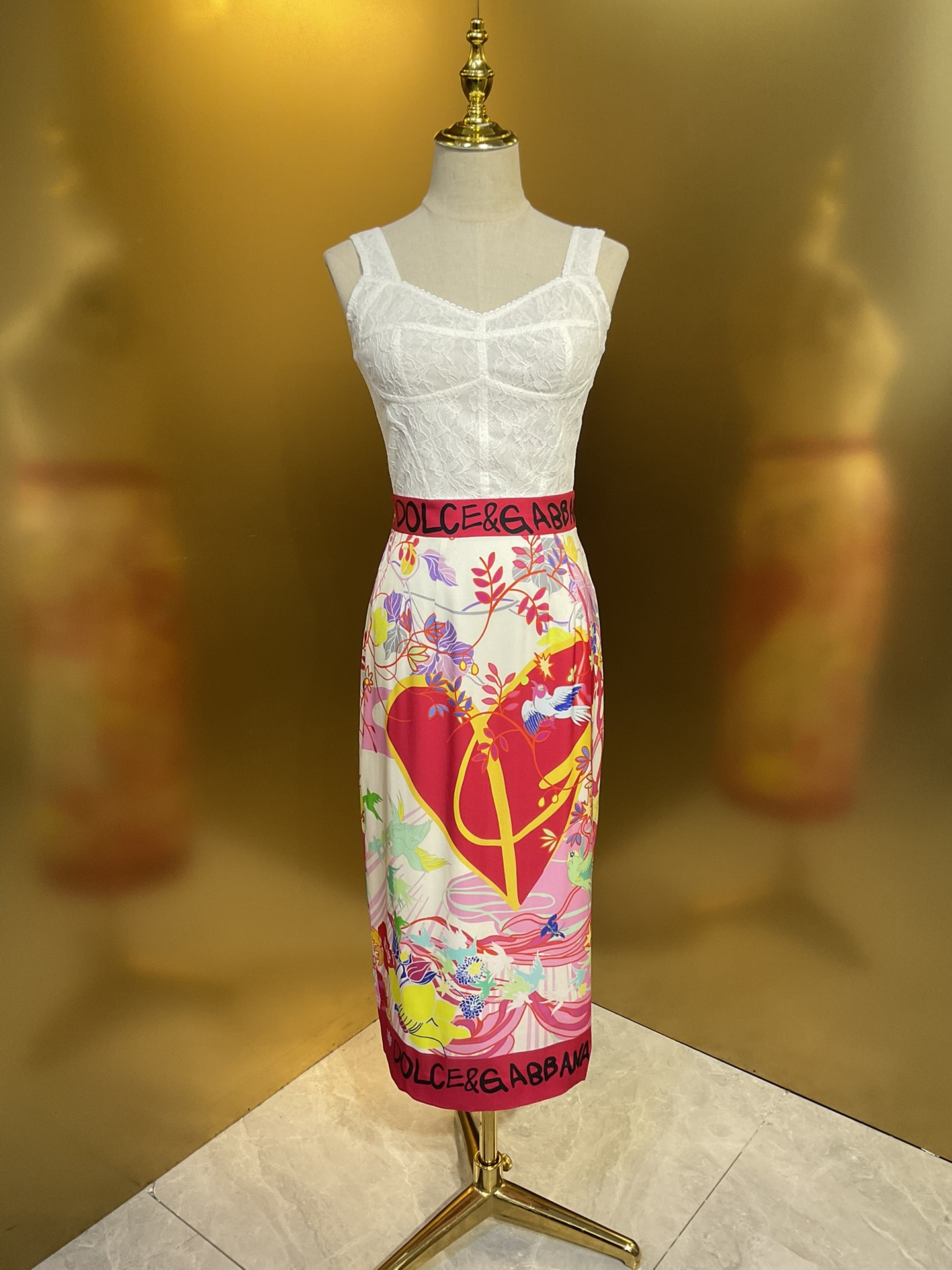 Details: Original flower-heart magpie-bridge series: wide-leg pants and skirt in real silk, paired with a cotton T-shirt and lace bustier, all crafted with high-end customization and fine workmanship for original quality.