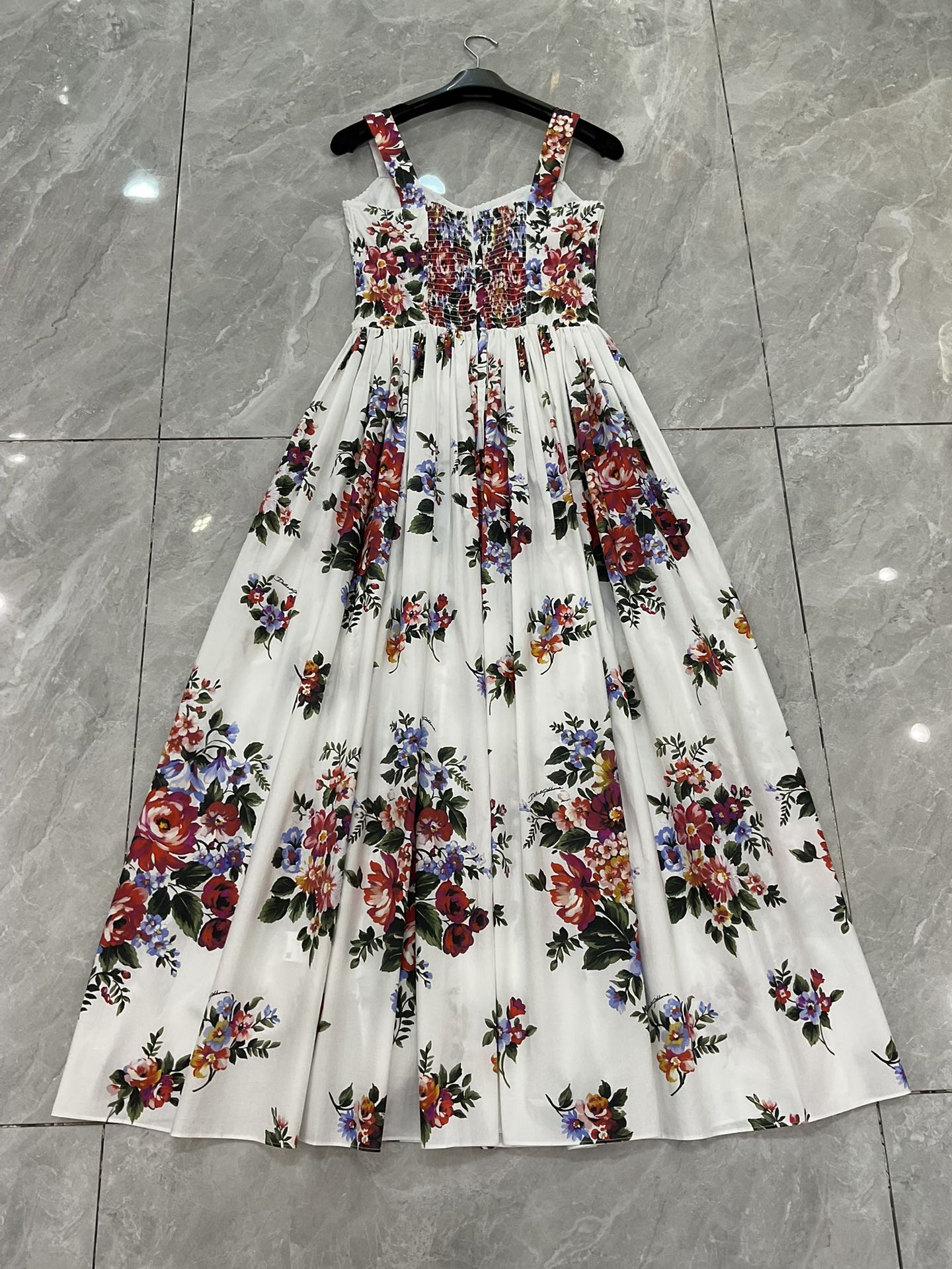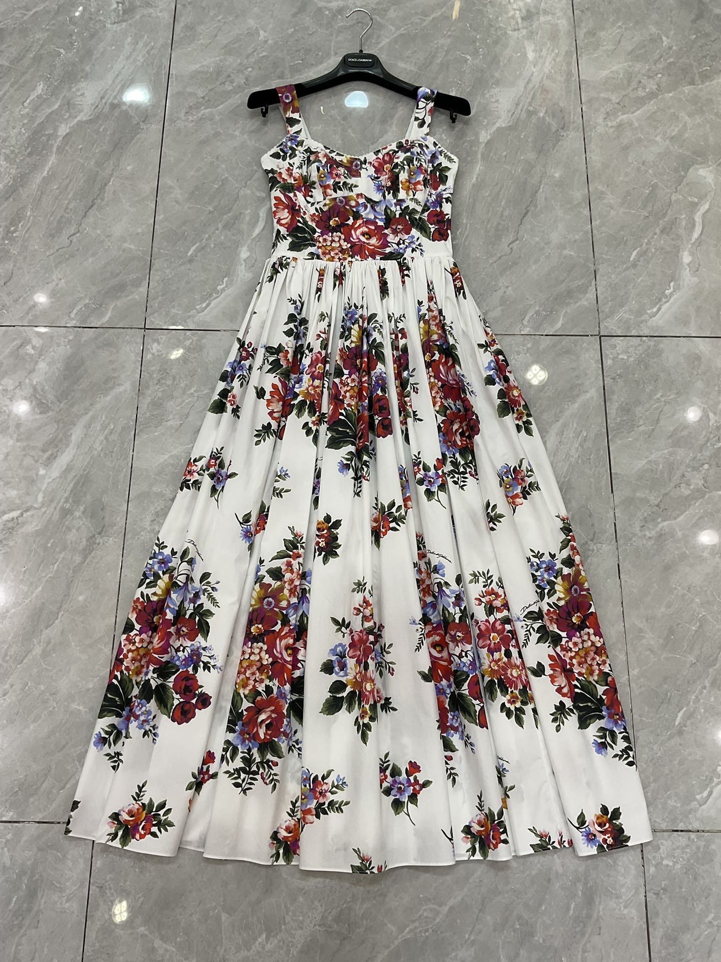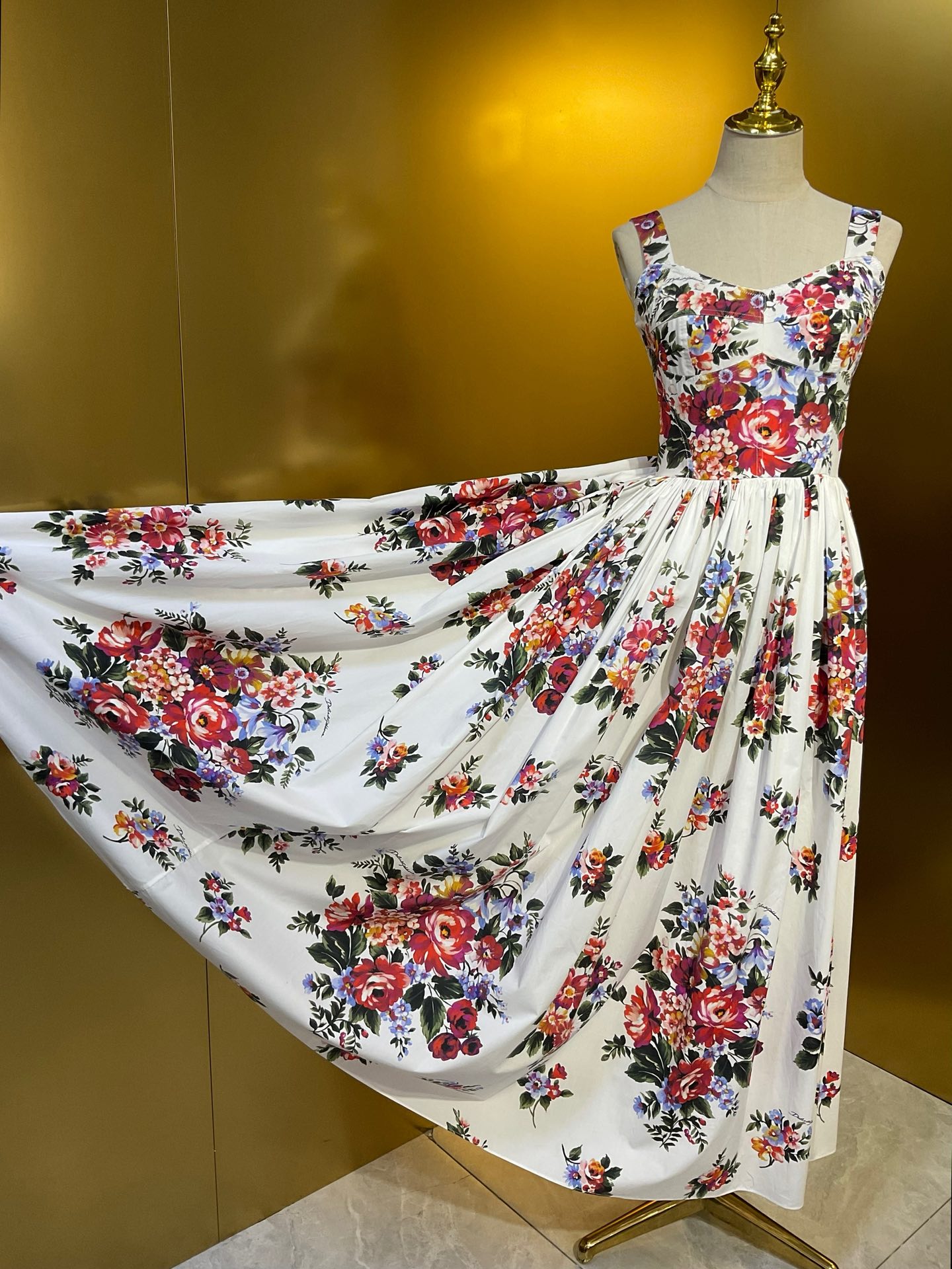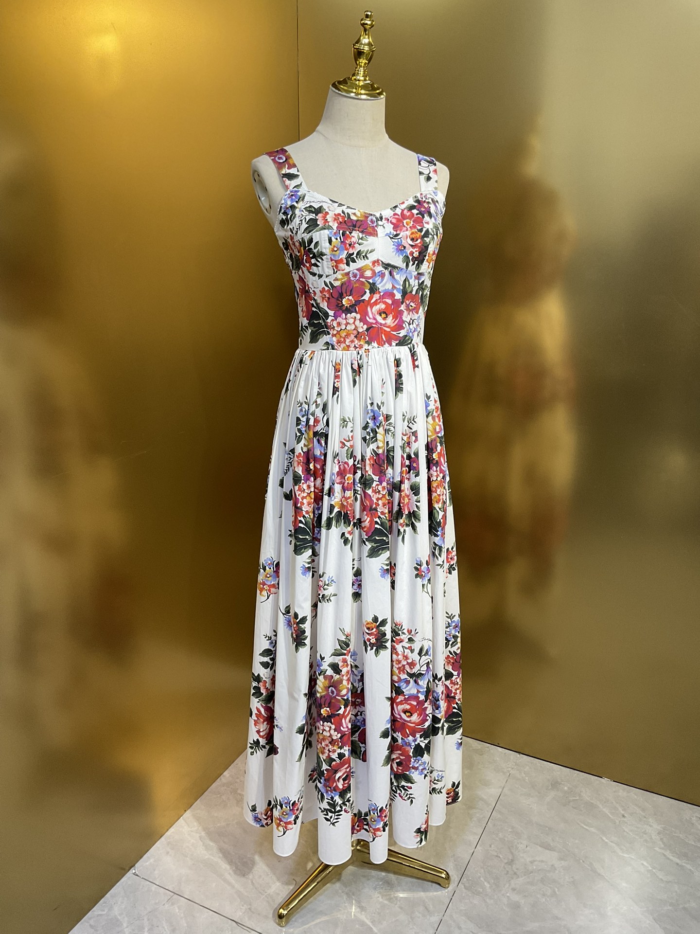 Details: New style white background large flower cotton tight - fitting cup halter large - skirt dress. High - end customization, fine workmanship, sizes available.