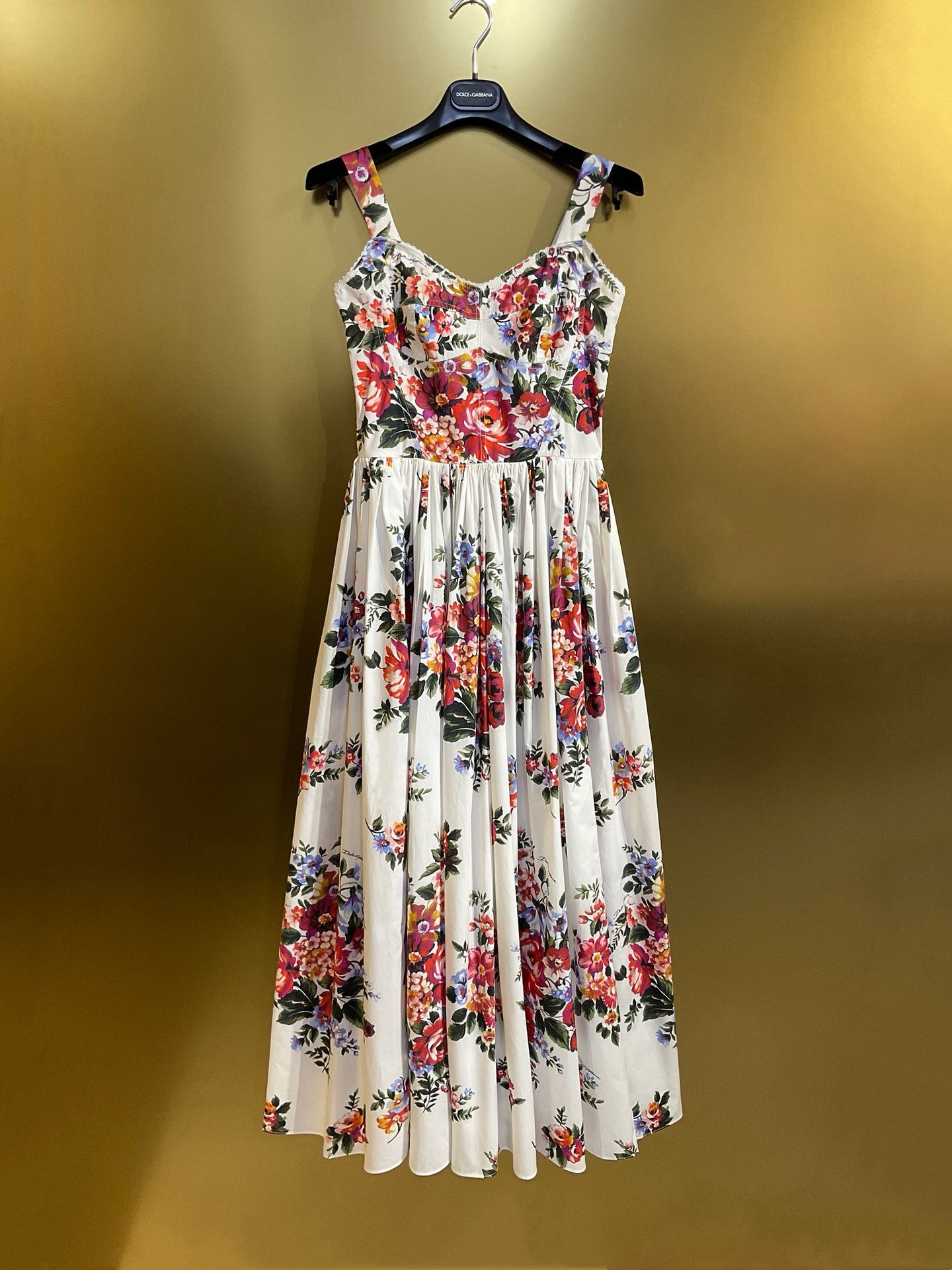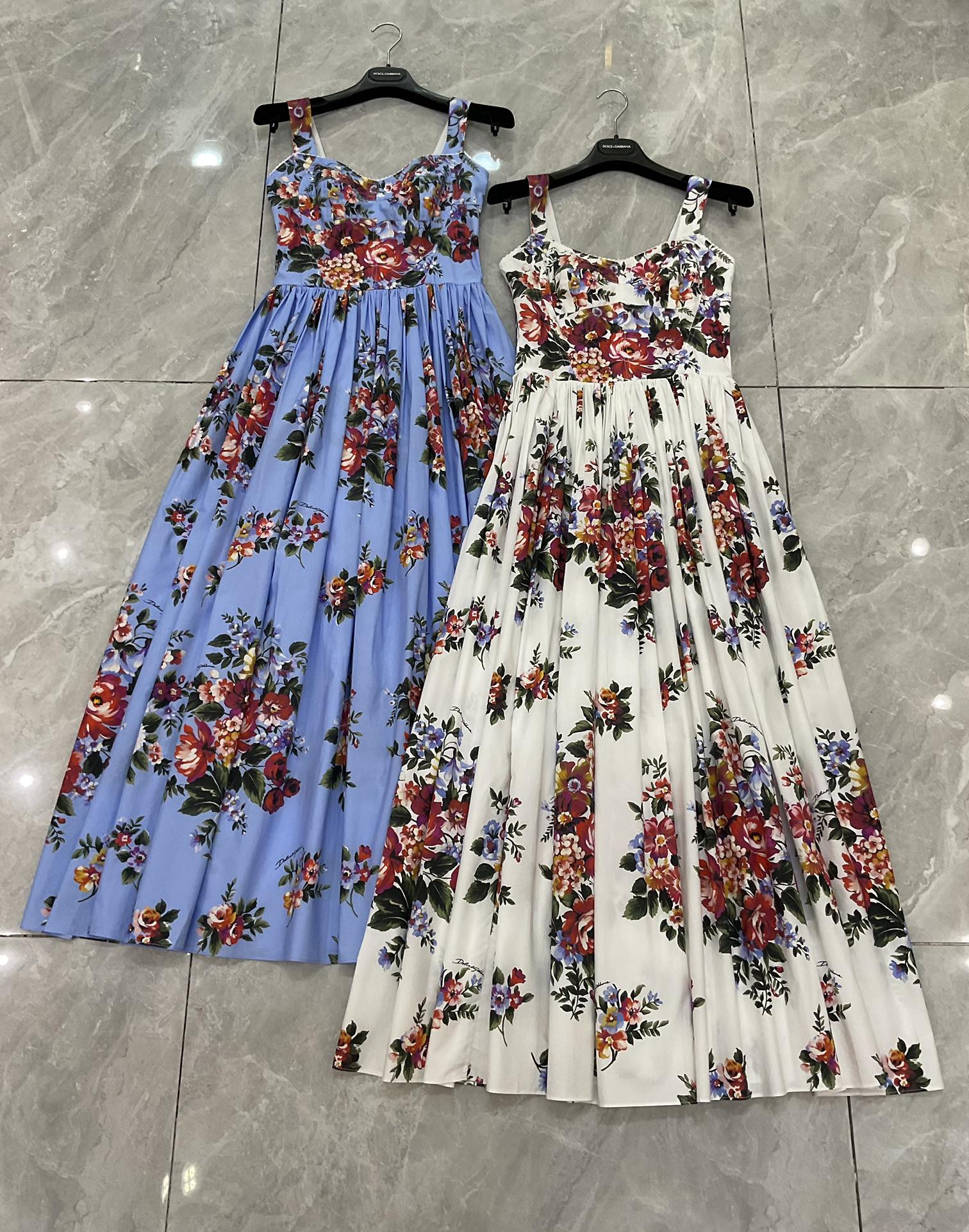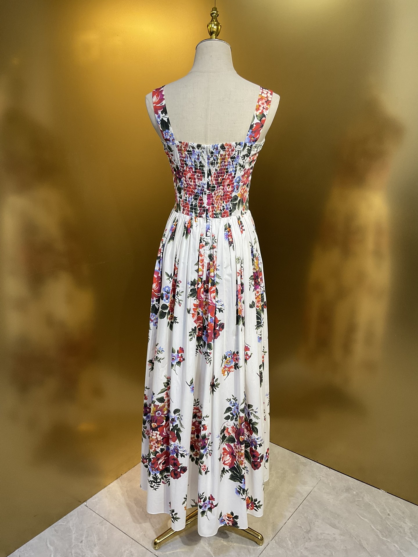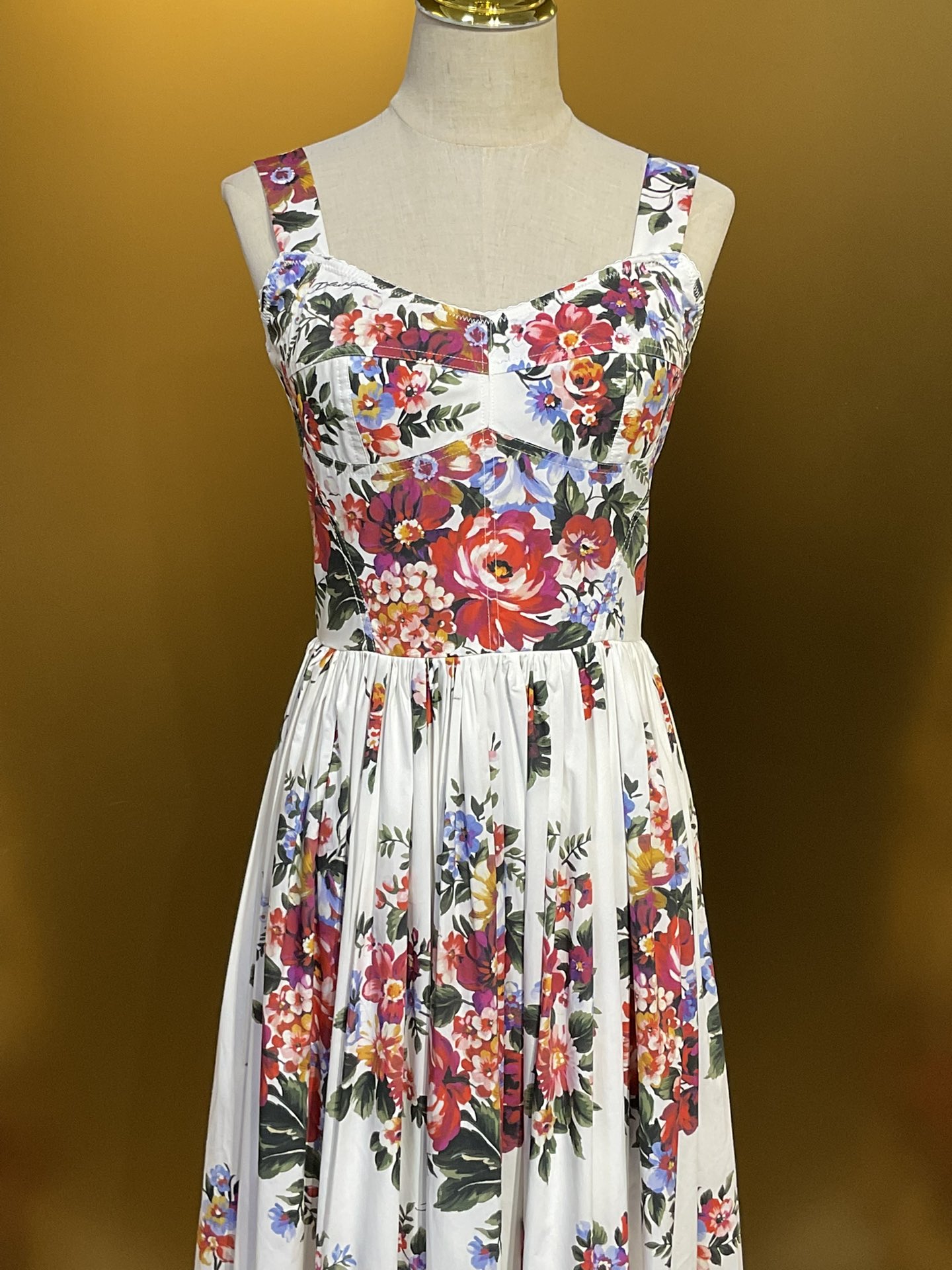 Details: New style white background large flower cotton tight - fitting cup halter large - skirt dress. High - end customization, fine workmanship, sizes available.