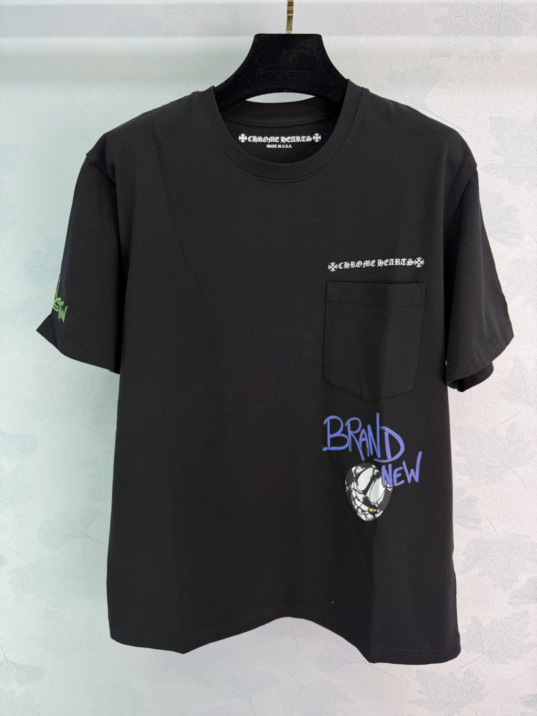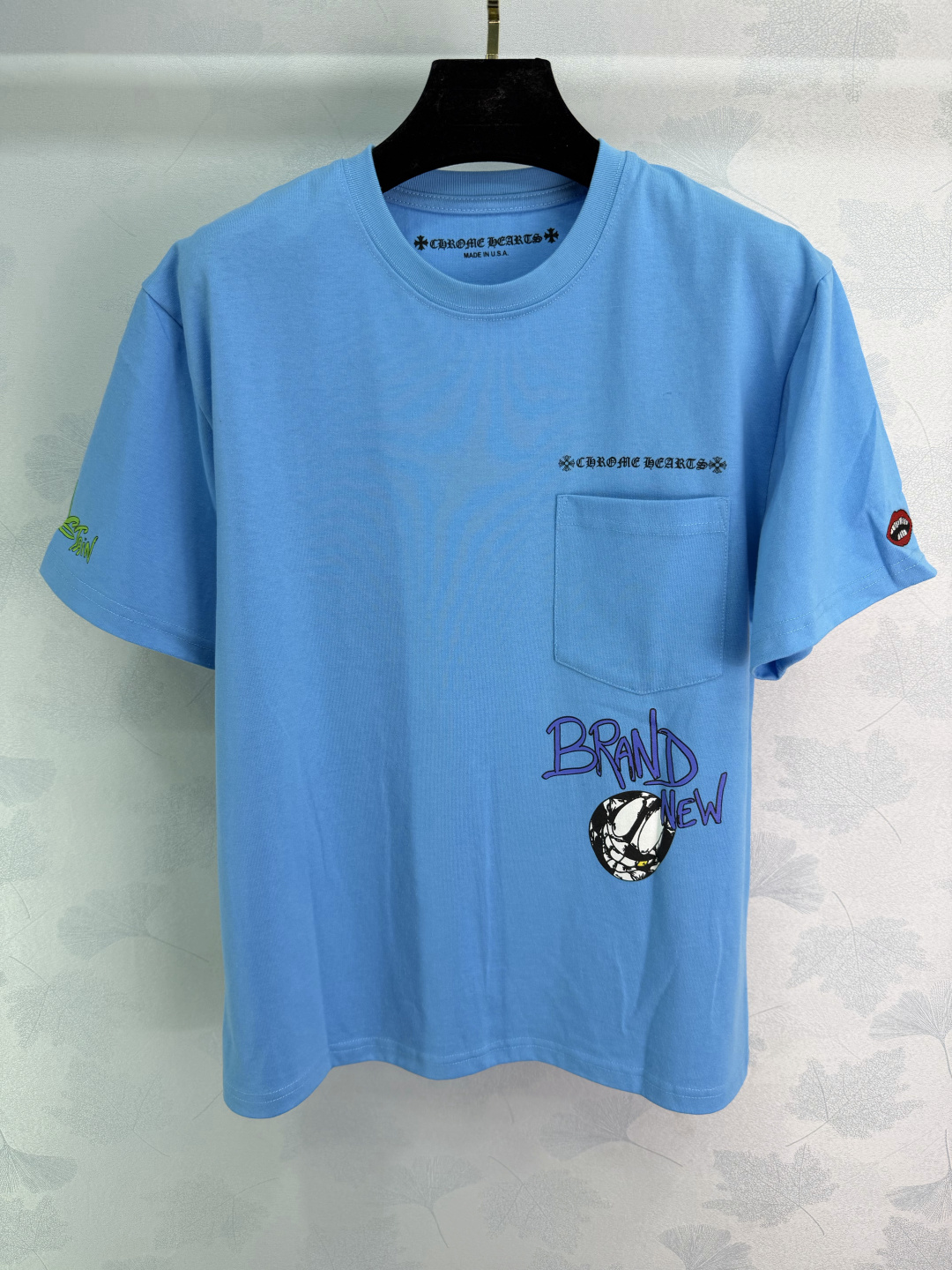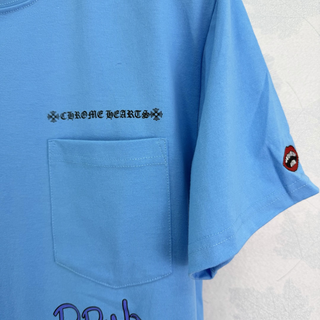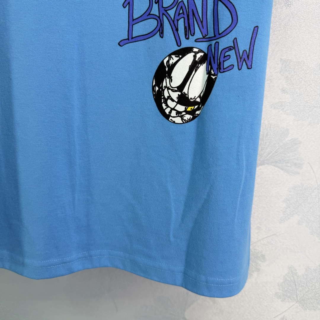 Details: Early spring blue graffiti short - sleeved top, thick cotton fabric, street - style, available in two colors. High - end customization, fine workmanship